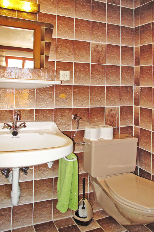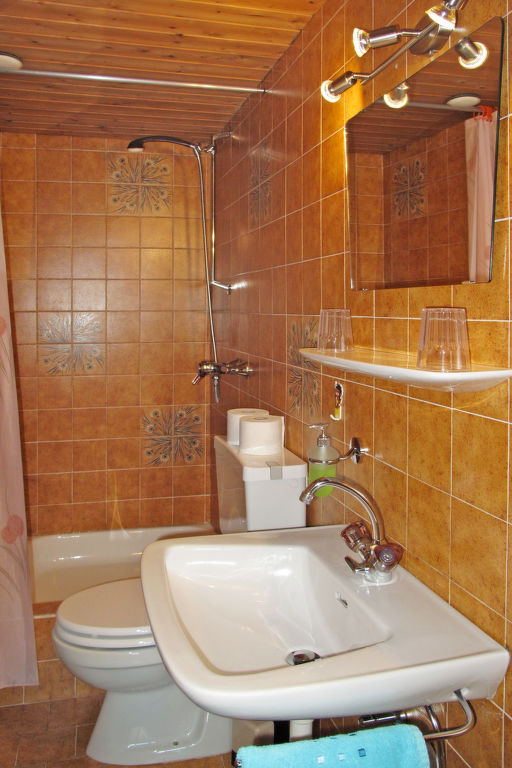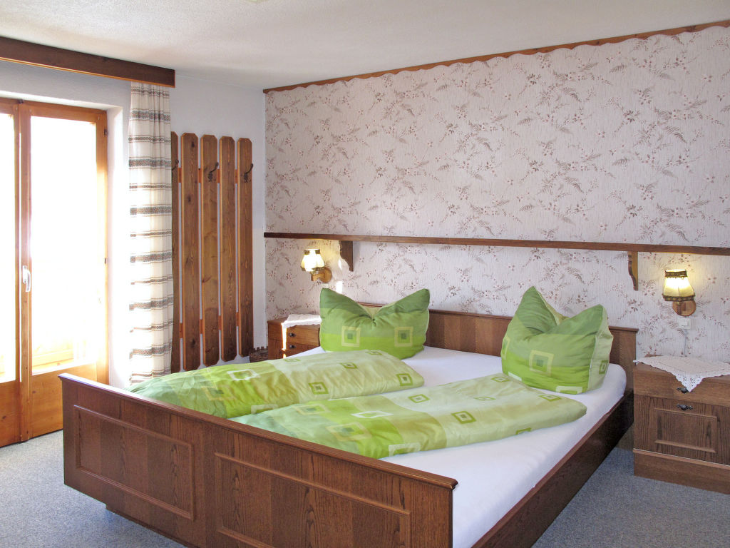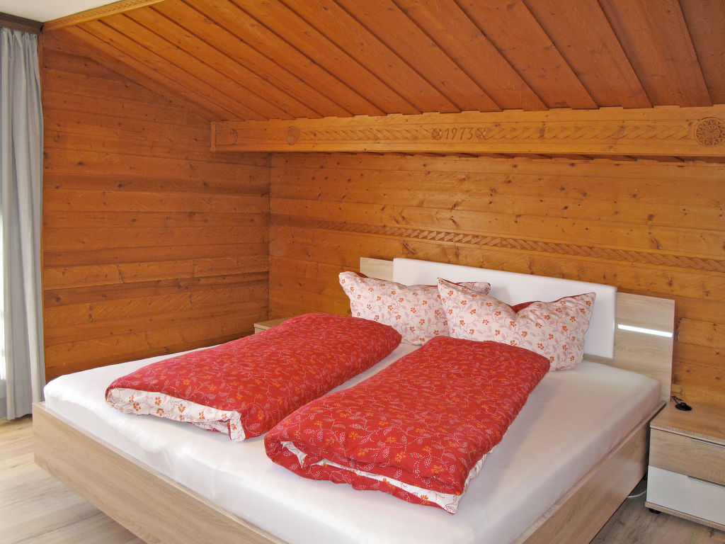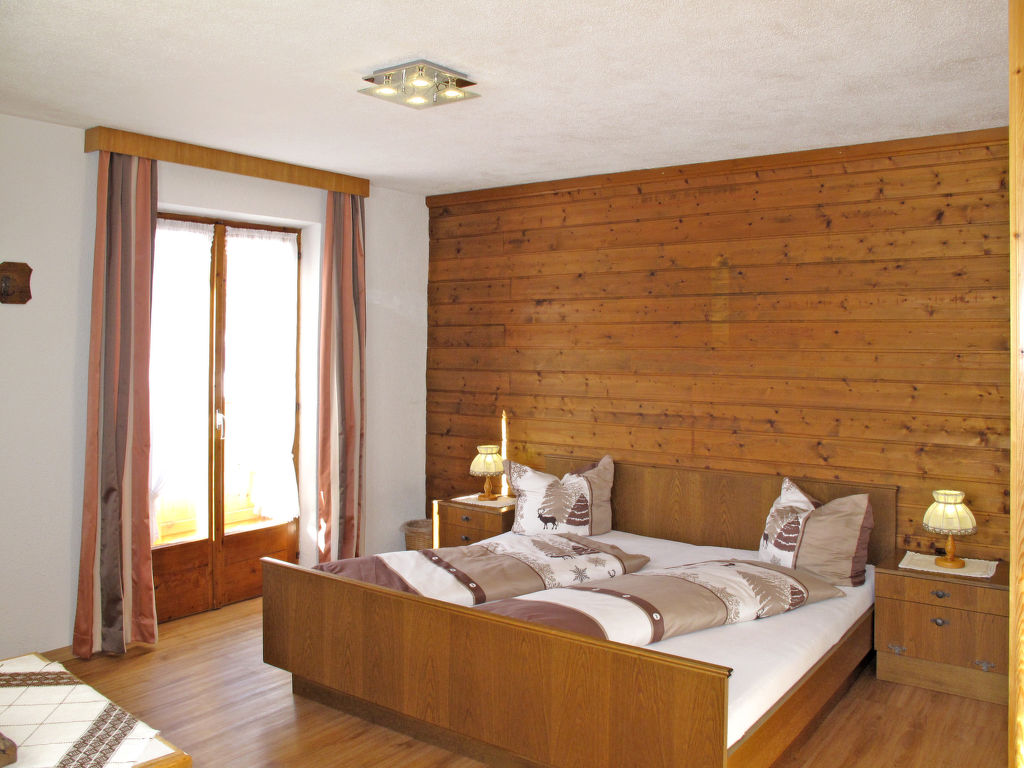 "Pult (NDR150)", 6-Zimmer-Haus 160 m2 auf 3 Stockwerken, im erhöhten Erdgeschoss, Westlage. Teilweise renoviert, rustikal und gemütlich eingerichtet: Obergeschoss: (Aussentreppe) Wohn-/Esszimmer mit Esstisch, Sat-TV und Kachelofen. Küche (Backofen, Geschirrspüler, 4 Glaskeramikherd Platten, Toaster, Wasserkocher, Mikrowelle, Tiefkühler, elektrische Kaffeemaschine) mit kleinem Esstisch. 2. Obergeschoss: 1 Doppelzimmer mit 1 Doppelbett, Waschbecken und Dusche/WC. Ausgang zum Balkon. 2 Doppelzimmer, jedes Zimmer mit 1 Doppelbett und Dusche/WC. 3. Obergeschoss: 2 abgeschrägte Doppelzimmer, jedes Zimmer mit 1 Doppelbett. Ausgang zum Balkon. Dusche/WC. Ölheizung. 2 Balkone. Balkonmöbel, Abstellkammer. Schöne Sicht auf die Berge. Zur Verfügung: Waschmaschine, Wäschetrockner, Bügeleisen, Kinderhochstuhl, Babybett, Holz (extra). Internet (Wireless LAN, gratis). Bei Belegung mit weniger Personen als der maximalen Personenzahl stehen nicht alle Wohneinheiten zur Verfügung.