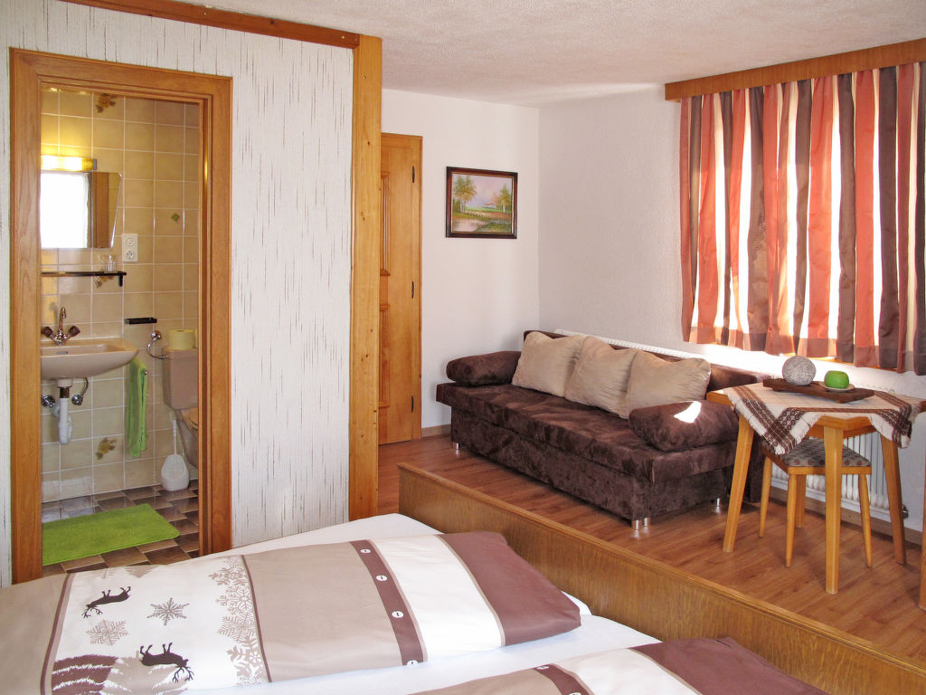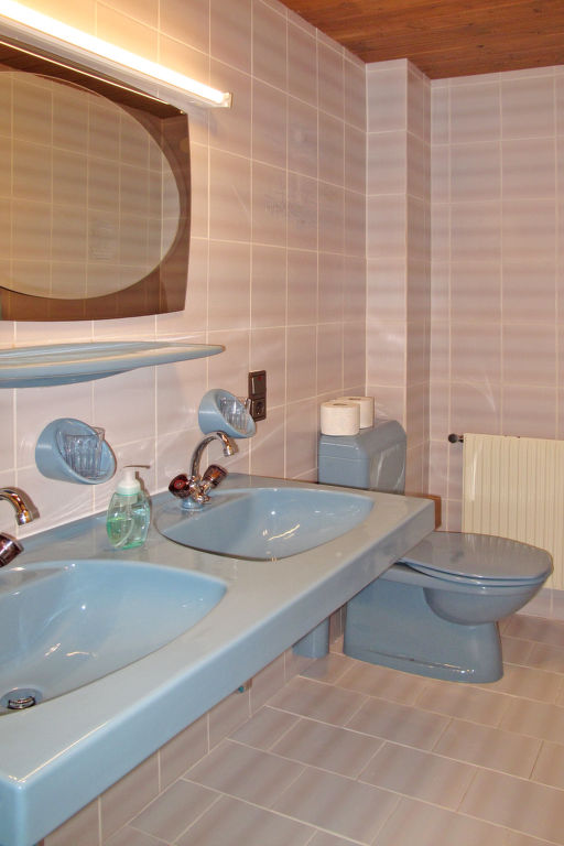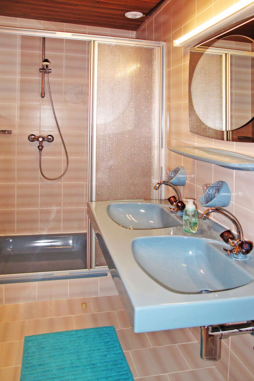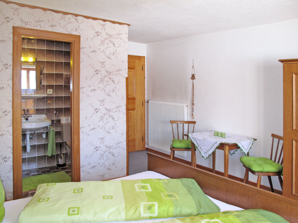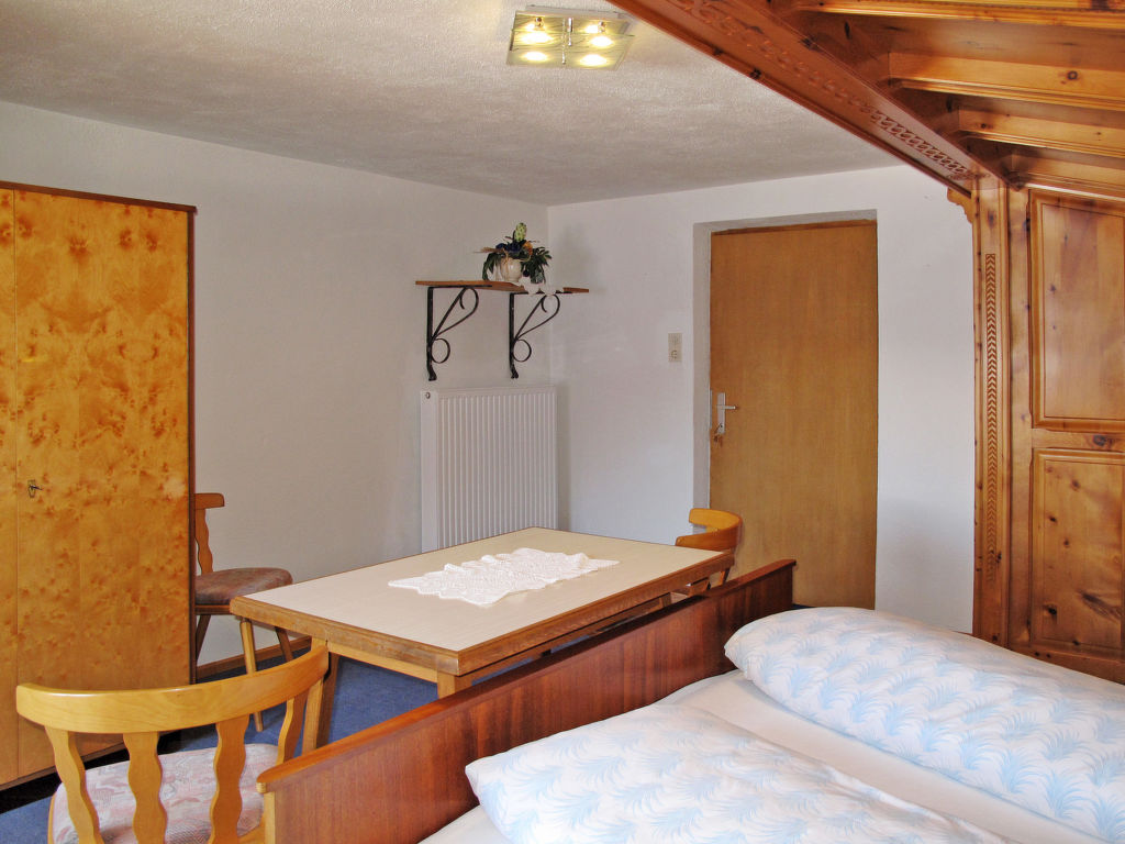 "Pult (NDR150)", 6-Zimmer-Haus 160 m2 auf 3 Stockwerken, im erhöhten Erdgeschoss, Westlage. Teilweise renoviert, rustikal und gemütlich eingerichtet: Obergeschoss: (Aussentreppe) Wohn-/Esszimmer mit Esstisch, Sat-TV und Kachelofen. Küche (Backofen, Geschirrspüler, 4 Glaskeramikherd Platten, Toaster, Wasserkocher, Mikrowelle, Tiefkühler, elektrische Kaffeemaschine) mit kleinem Esstisch. 2. Obergeschoss: 1 Doppelzimmer mit 1 Doppelbett, Waschbecken und Dusche/WC. Ausgang zum Balkon. 2 Doppelzimmer, jedes Zimmer mit 1 Doppelbett und Dusche/WC. 3. Obergeschoss: 2 abgeschrägte Doppelzimmer, jedes Zimmer mit 1 Doppelbett. Ausgang zum Balkon. Dusche/WC. Ölheizung. 2 Balkone. Balkonmöbel, Abstellkammer. Schöne Sicht auf die Berge. Zur Verfügung: Waschmaschine, Wäschetrockner, Bügeleisen, Kinderhochstuhl, Babybett, Holz (extra). Internet (Wireless LAN, gratis). Bei Belegung mit weniger Personen als der maximalen Personenzahl stehen nicht alle Wohneinheiten zur Verfügung.