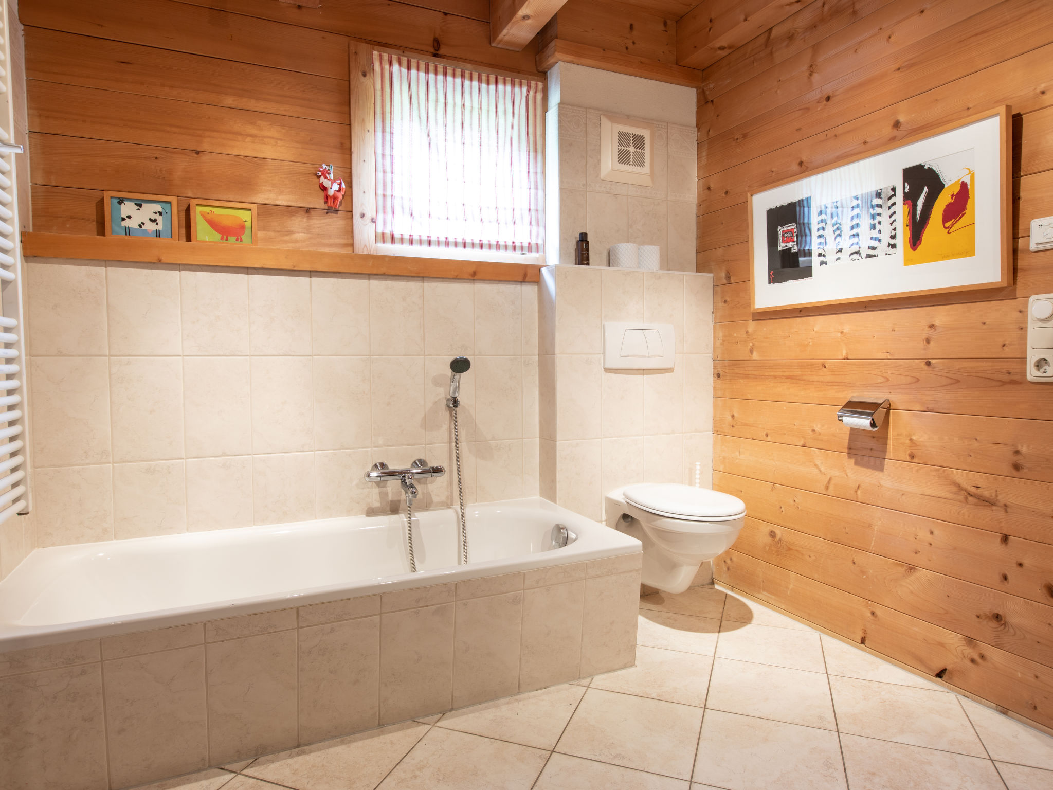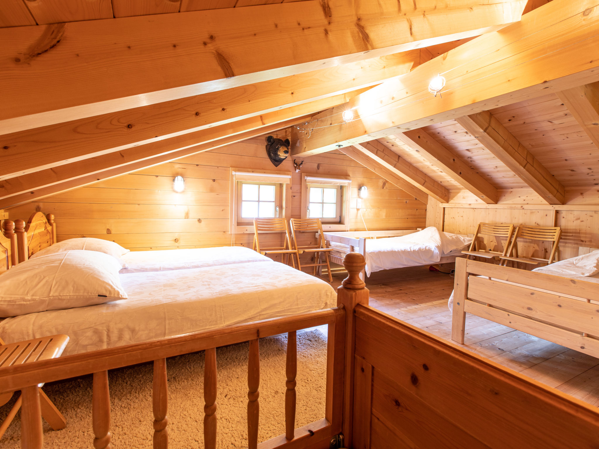 6-Zimmer-Haus 126 m2 auf 3 Stockwerken. Luxuriös und geschmackvoll eingerichtet: 2 Doppelzimmer. 1 Zimmer mit 1 x 1 Etagenbetten, 1 Doppelbett. Grosses Wohnzimmer mit Kabel-TV (Flachbildschirm), Radio und CD. Ausgang zum Garten. Dusche/WC. Obergeschoss: 1 Doppelzimmer. Grosses Wohn-/Esszimmer mit Schwedenofen, Radio und CD. Ausgang zur Terrasse. Offene Küche (Backofen, Geschirrspüler, 4 Glaskeramikherd Platten, Mikrowelle). Bad/Dusche/WC. Dachgeschoss: 1 abgeschrägtes Zimmer mit 4 Betten und TV (Flachbildschirm). Grosser Balkon, Terrasse. Terrassenmöbel. Schöne Sicht auf die Berge. Zur Verfügung: Waschmaschine, Kinderhochstuhl, Babybett. Internet (Wireless LAN, gratis). Parkplatz (überdacht). Bitte beachten: Nichtraucher-Unterkunft.