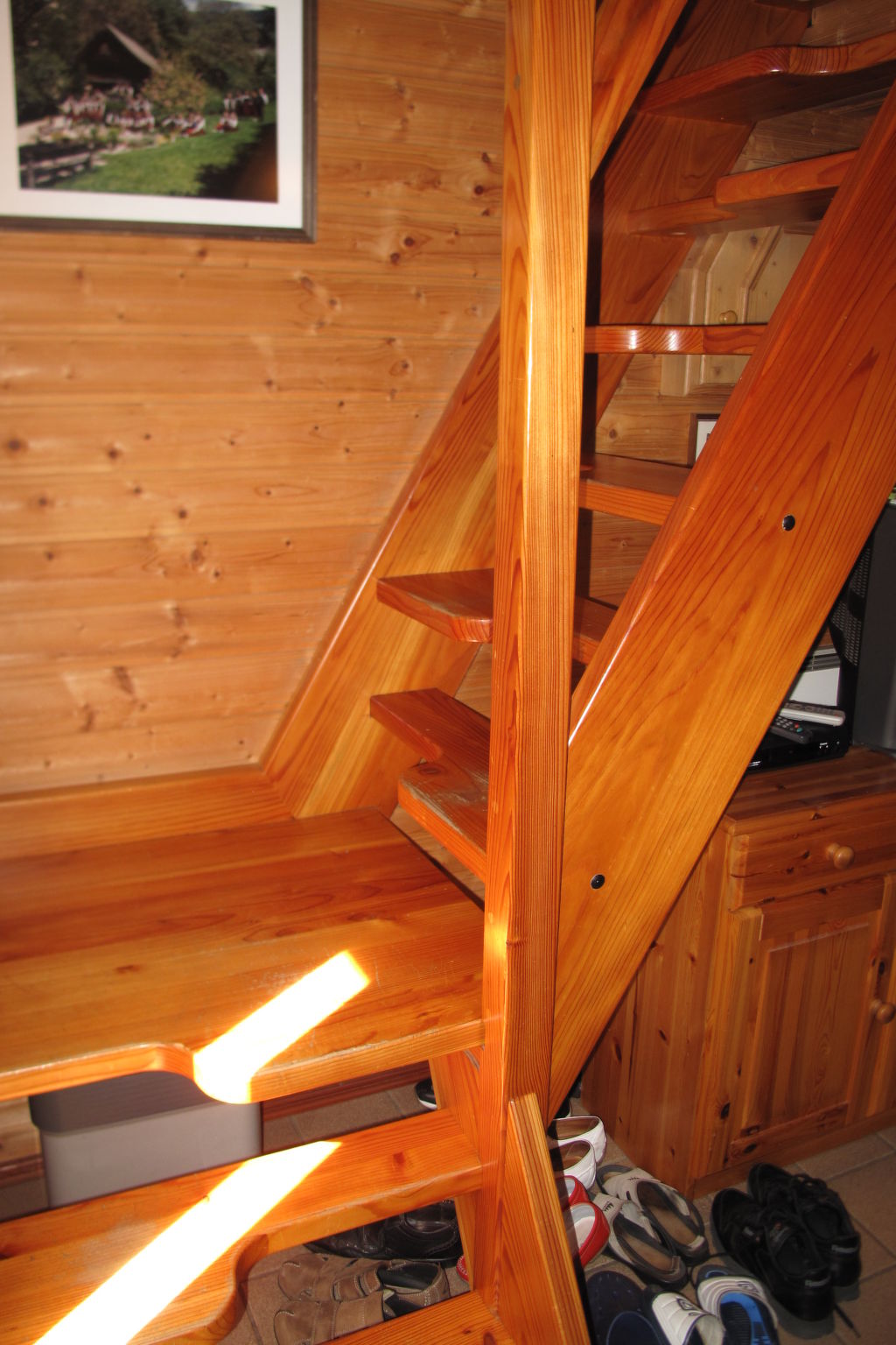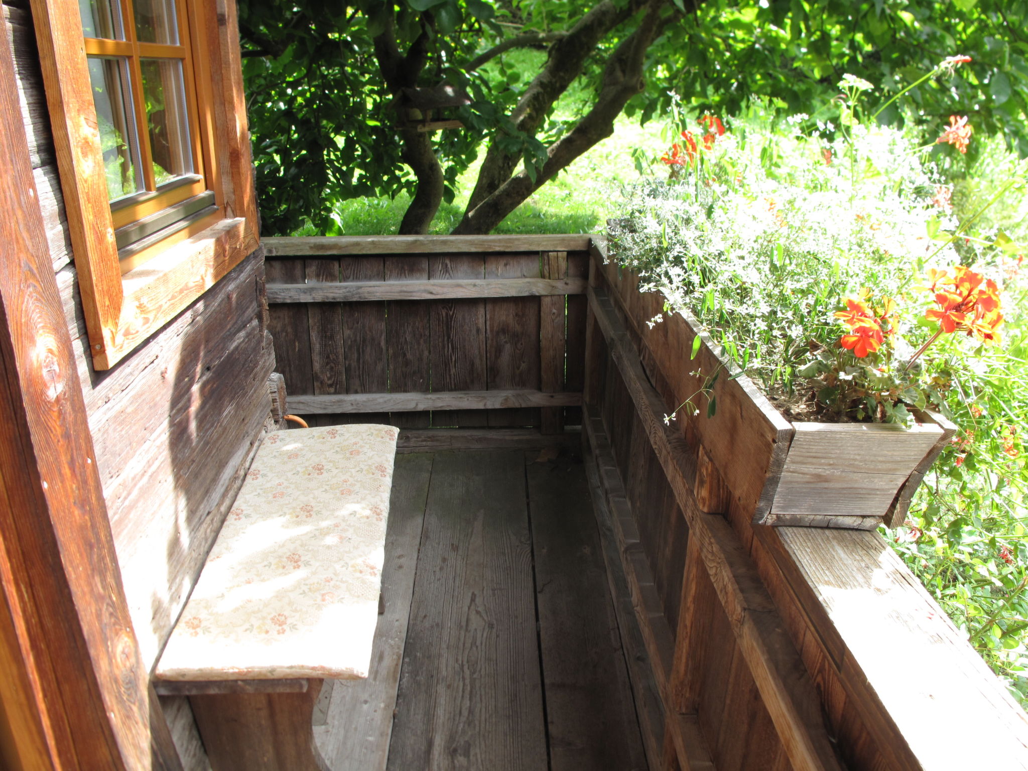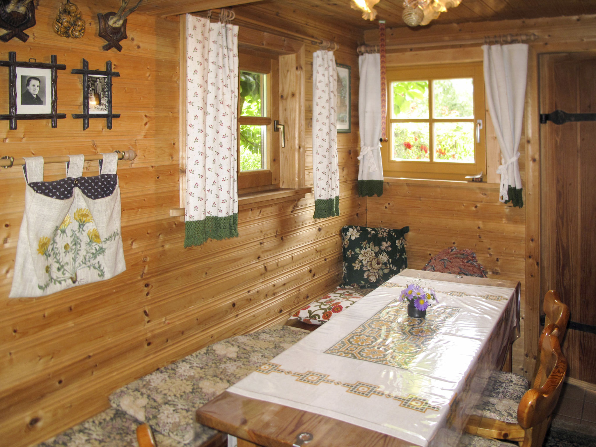 2-Zimmer-Haus 'Troadkastn', 2 Etagen, ca. 64 m². Wohnraum mit Sessel, Essplatz, Küchenzeile (3 Platten, Backofen, Kühlschrank, Kaffeemaschine, Wasserkocher). Dusche/WC. Vom Wohnraum steile Holztreppe in die 1. Etage zu Flur mit Doppelbett in Schlafnische, von hier Zugang zu Doppelzimmer.