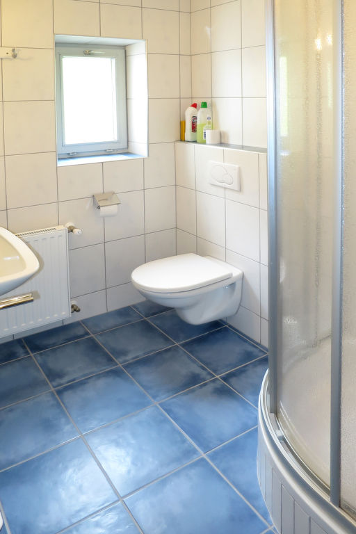 8-Zimmer-Haus, 2 Etagen (keine interne Verbindung), ca. 170 m². Zugang über Außentreppe und Terrasse in die 1. Etage: Flur mit Garderobe. Wohnküche (4 Ceranfelder, Backofen, Geschirrspüler, Kühlschrank, Kaffeemaschine, Wasserkocher) mit Essplatz (Eckbank) für 6-8 Personen und Sitzcouch. Doppelzimmer. Kleines Doppelzimmer. Schlafzimmer mit Doppelbett und Einzelbett. 2x Dusche/WC. Kleiner Abstellraum. Über Treppenhaus in die 2. Etage: Flur mit Garderobe. Wohnküche (4 Ceranfelder, Backofen, Geschirrspüler, Kühlschrank, Kaffeemaschine, Wasserkocher) mit Essplatz (Eckbank) für 6-8 Personen. Doppelzimmer. Kleines Doppelzimmer. Schlafzimmer mit Doppelbett, Etagenbett und Balkonausgang. Badezimmer mit 2 Duschkabinen und WC. Sep.WC.Hinweis: Bei Buchung zum Preis für 6 Personen bleibt die 1. Etage verschlossen. Bei Buchung zum Preis für 6 Personen nicht verfügbar: 1. Etage. Bei Belegung mit weniger Personen als der maximalen Personenzahl stehen nicht alle Wohneinheiten zur Verfügung.