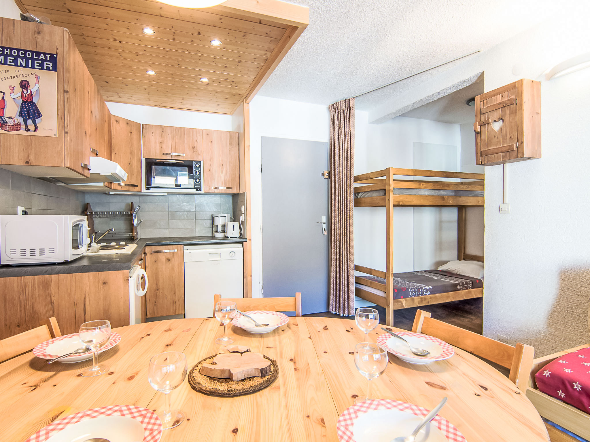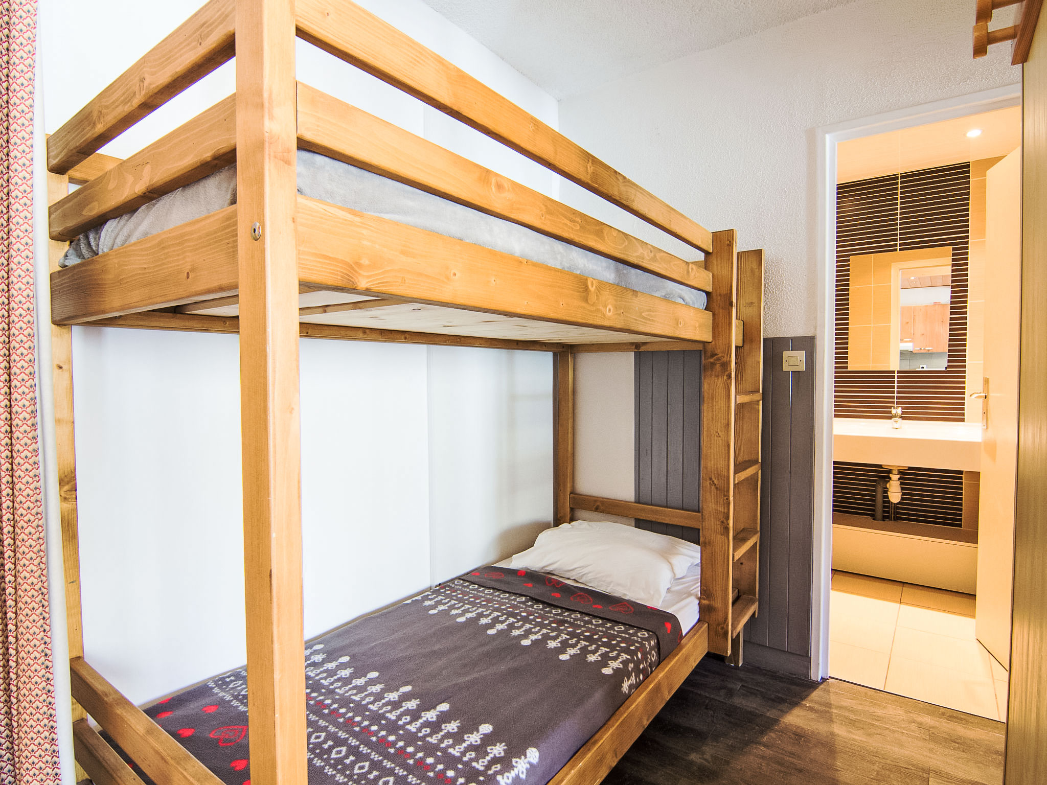 2-Zimmer-Wohnung 42 m2 im 4. Stock. Geräumig und hell, sehr zweckmässig und schön eingerichtet: Wohn-/Esszimmer mit 1 Ausziehbett (2 Pers. 2 x 80 cm, Länge 190 cm), TV (Flachbildschirm). Ausgang zum Balkon. Eingang mit 1 x 2 Etagenbetten (80 cm, Länge 190 cm). 1 Zimmer mit 1 franz. Bett (140 cm). Ausgang zum Balkon. Offene Küche (4 Kochplatten, Mini-Backofen, Geschirrspüler, Mikrowelle). Bad, sep. WC. Balkon, Südlage. Sehr schöne Panoramasicht auf die Berge und die Skipiste. Zur Verfügung: Internet (Wireless LAN, extra). Bitte beachten: Nichtraucher-Unterkunft. Rauchmelder. Nichtraucher-Wohnung. Inserat einer Privatperson nach Artikel 155, IV, CGI.