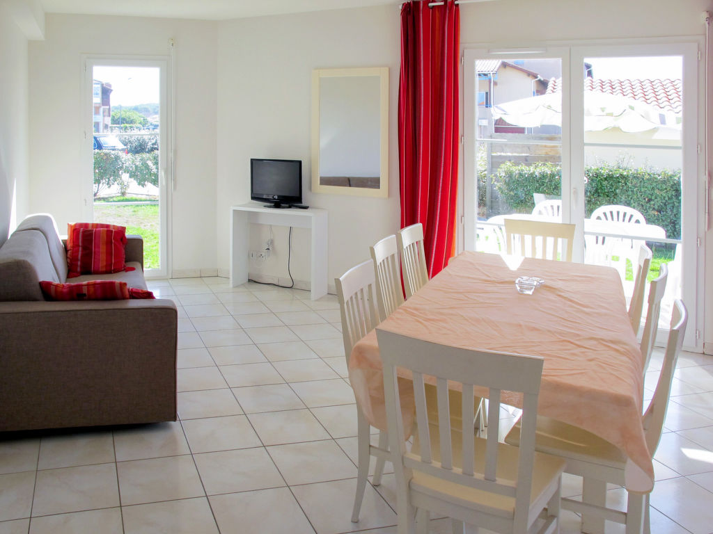 "Résidence Indigo II (BPL326)", 5-Zimmer-Haus 90 m2 auf 2 Stockwerken. Hell, zweckmässig und gemütlich eingerichtet: Wohn-/Esszimmer mit Esstisch und Sat-TV (Flachbildschirm). Ausgang zur Terrasse. 1 Zimmer mit 1 franz. Bett (140 cm, Länge 190 cm). Ausgang zum Garten. Kochnische (Geschirrspüler, 4 Glaskeramikherd Platten, Toaster, Wasserkocher, Mikrowelle, Tiefkühler, elektrische Kaffeemaschine). Dusche/WC. Obergeschoss: 1 Zimmer mit 1 franz. Bett (140 cm, Länge 190 cm). 1 Zimmer mit 2 Betten (90 cm, Länge 190 cm). Ausgang zum Balkon. 1 Zimmer mit 2 Betten (90 cm, Länge 190 cm). Bad, sep. WC. E-Heizung. Balkon, Terrasse teilweise überdacht. Terrassenmöbel. Zur Verfügung: Waschmaschine, Bügeleisen, Kinderhochstuhl, Babybett (extra). Internet (Wireless LAN, gratis). Bitte beachten: Maximal 1 Haustier/Hund erlaubt. Rauchmelder.