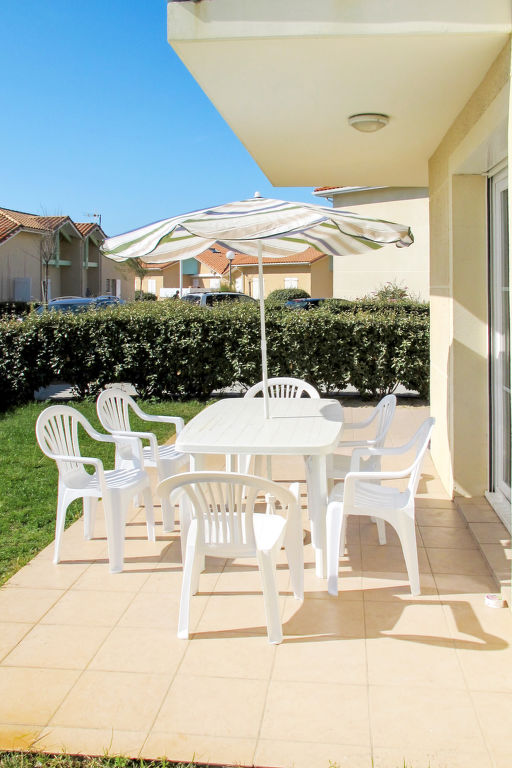 Gemütliche Ferienanlage "Résidence Indigo II". 15 Wohnungen in der Residenz. 500 m vom Zentrum von Biscarrosse-Plage, 10 km vom Zentrum von Biscarrosse, 30 km vom Zentrum von Arcachon, 300 m vom Meer, 300 m vom Strand, direkter Zugang zum Strand. Zur Mitbenutzung: Schwimmbad eingezäunt (11 x 5 m, 150 cm tief, saisonale Verfügbarkeit: 01.Mai.-30.Sep.). In der Anlage: Empfang, Frühstücksraum, Wireless LAN, Waschmaschine (extra), Wäschetrockner (extra). Brötchenservice, Getränkeservice und Frühstück (extra). Parkplatz (beschränkte Anzahl). Einkaufsgeschäft 500 m, Supermarkt 10 km, Sandstrand "Biscarrosse-Plage" 300 m, Badesee "Etang de Cazaux et de Sanguinet" 6 km. Golfplatz (27 Loch) 7 km. Bitte beachten: Das Foto ist nur ein Hausbeispiel.