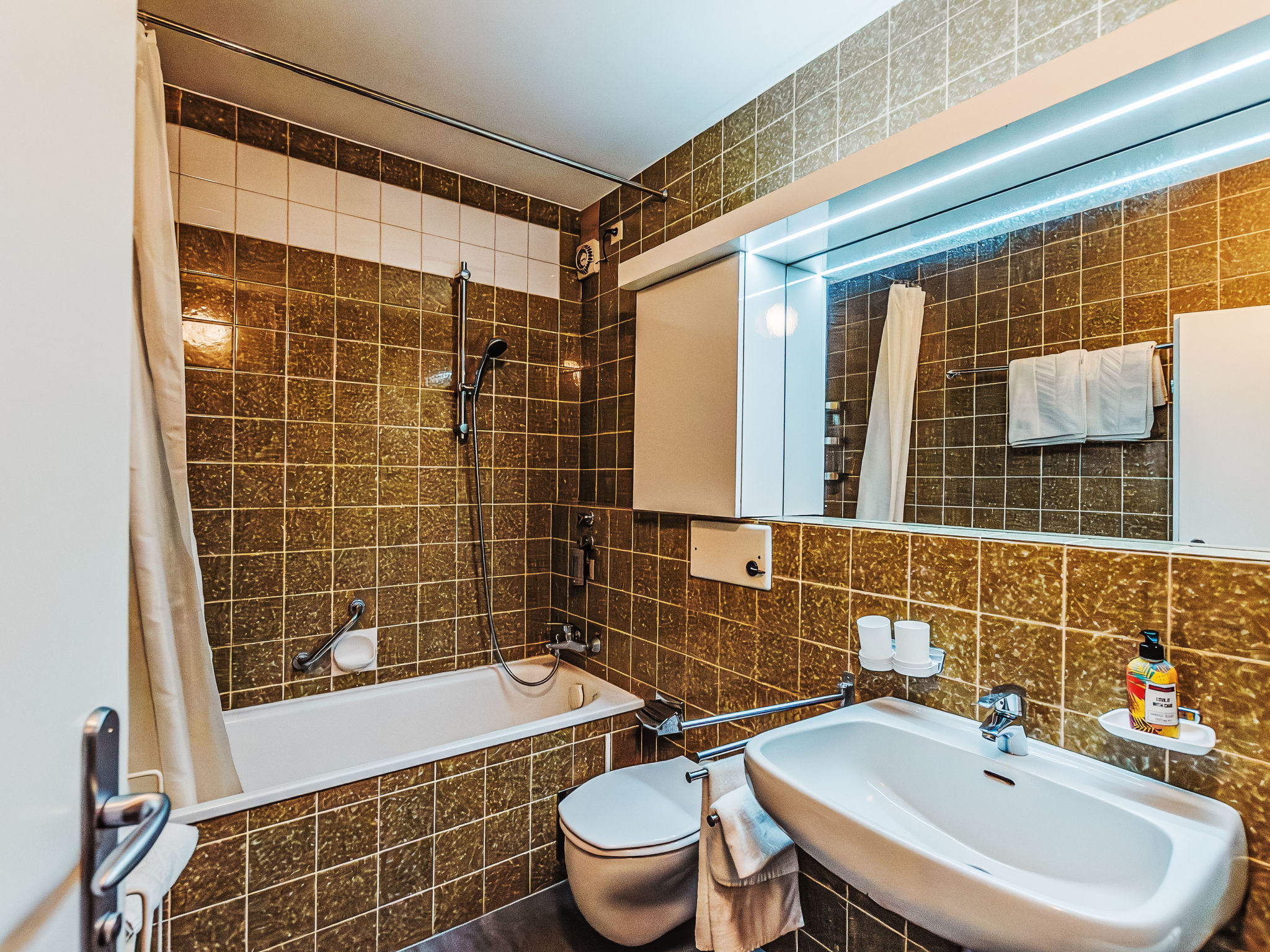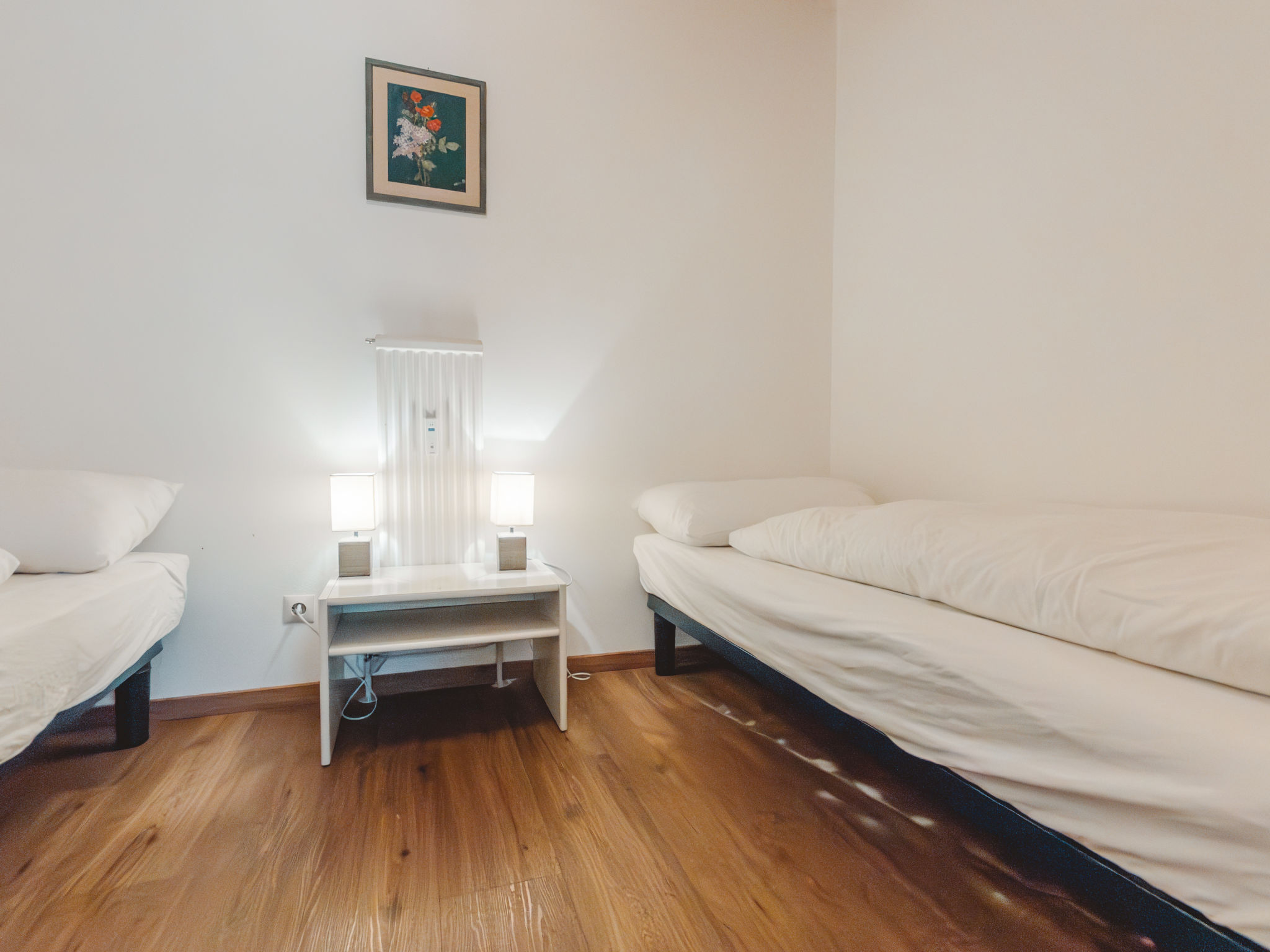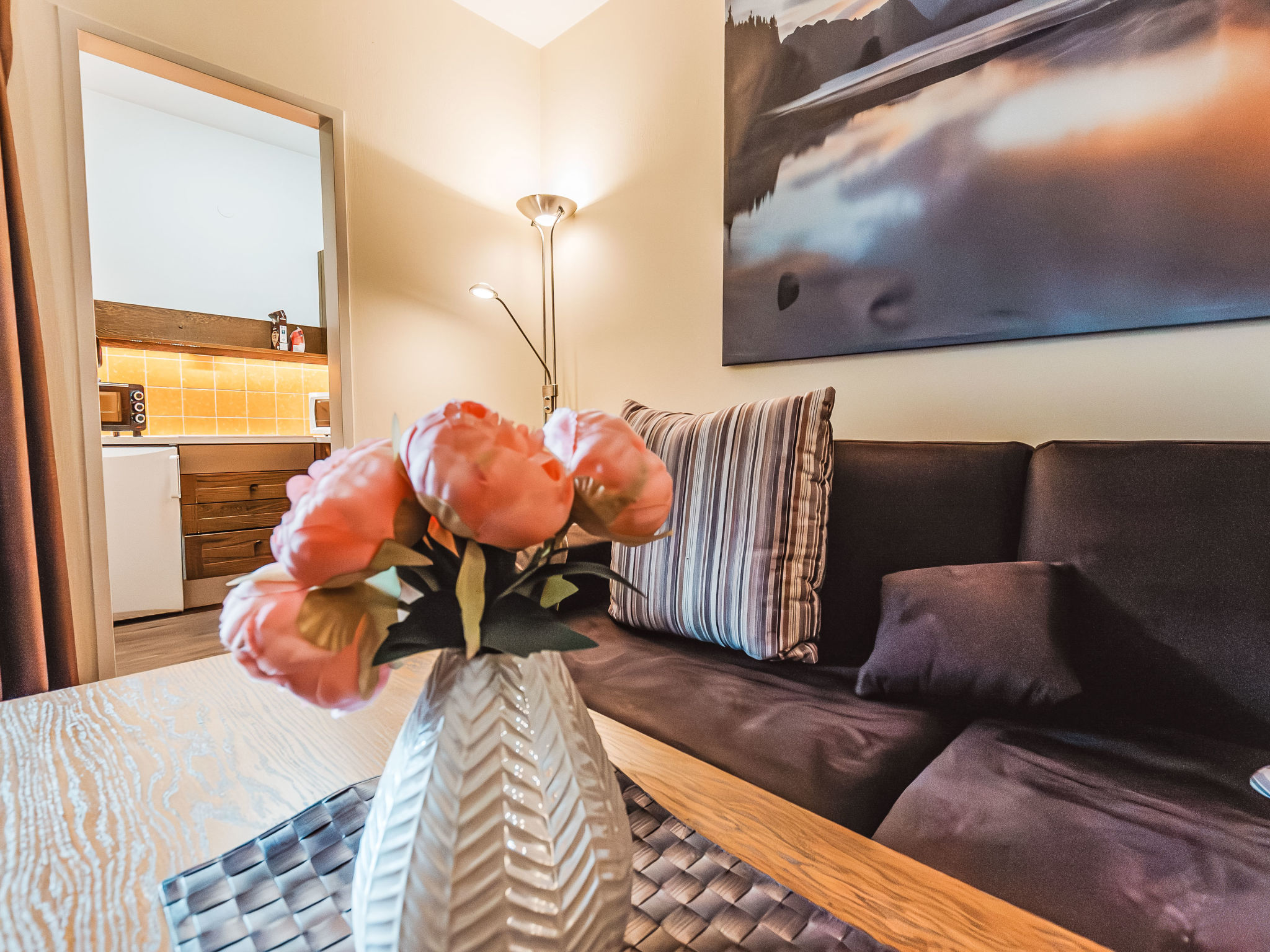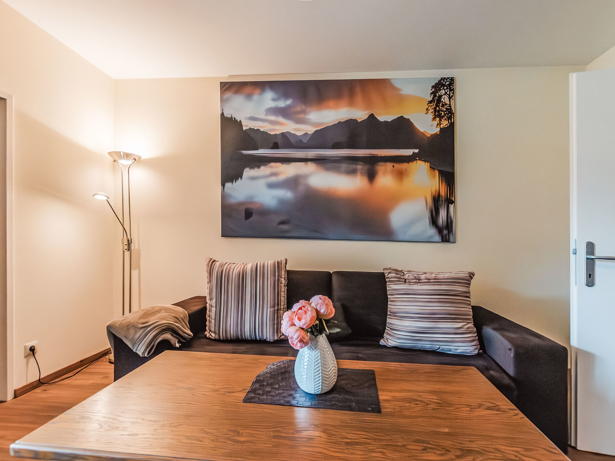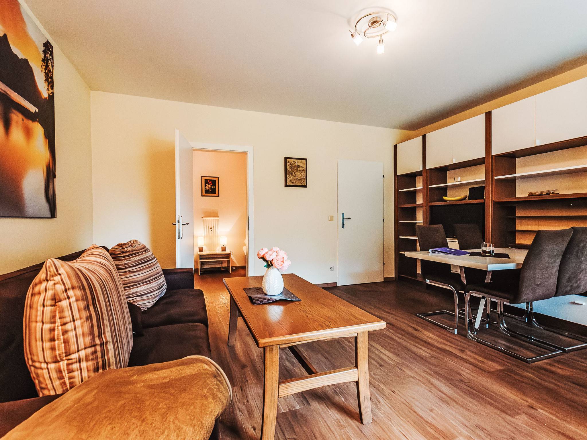 "Bräuer", 2-Zimmer-Wohnung 42 m2, im erhöhten Erdgeschoss. Renoviert im Jahre 2015, modern eingerichtet: Eingang. Wohn-/Esszimmer mit 1 Doppeldiwanbett (160 cm, Länge 200 cm), Sat-TV (Flachbildschirm). Ausgang zum Balkon. 1 kleines Zimmer mit Schiebetür, ohne Fenster mit 2 Betten. Küche (4 Glaskeramikherd Platten, Toaster, Wasserkocher, Mikrowelle). Bad/WC. Kleiner Balkon 7 m2. Balkonmöbel. Sicht auf die Berge. Zur Verfügung: Internet (Wireless LAN, gratis). Garage Nr. Haus 18/Top 14 beim Haus. Bitte beachten: Nichtraucher-Unterkunft. 1 Haustier/Hund erlaubt. 50402-000687-2020