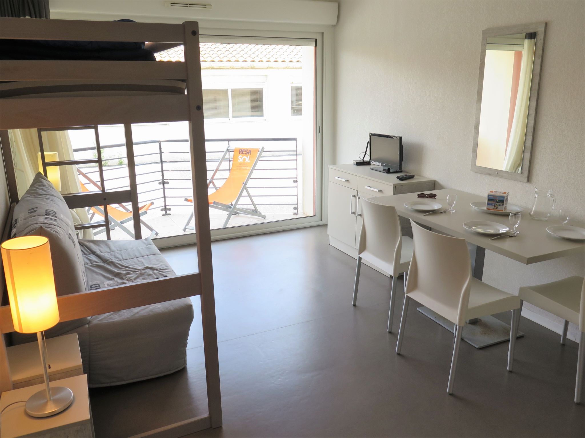 "Résidence Plage Centrale (HOS204)", 2-Zimmer-Wohnung 34 m2. Objekt geeignet für 2 Erwachsene + 1 Kind. Hell, zweckmässig eingerichtet: Wohn-/Schlafzimmer mit 1 Doppeldiwanbett und 1 x 1 Etagenbetten (80 cm), Esstisch und TV. Ausgang zum Balkon. 1 Zimmer mit 1 franz. Bett (160 cm). Offene Küche (2 Glaskeramikherd Platten, Toaster, Wasserkocher, Tiefkühler, elektrische Kaffeemaschine, Kombinationsmikrowelle). Dusche/WC. E-Heizung. Kleiner Balkon. Liegestühle (2). Zur Verfügung: Waschmaschine, Bügeleisen, Kinderhochstuhl, Babybett (extra). Internet (Wireless LAN, gratis). Parkplatz (1 Auto). Bitte beachten: Nichtraucher-Unterkunft. Rauchmelder.