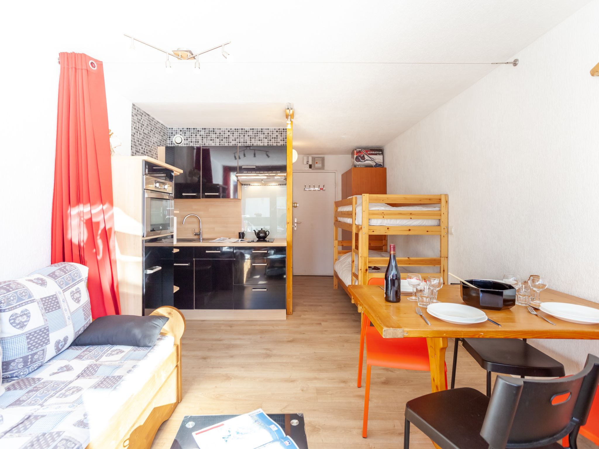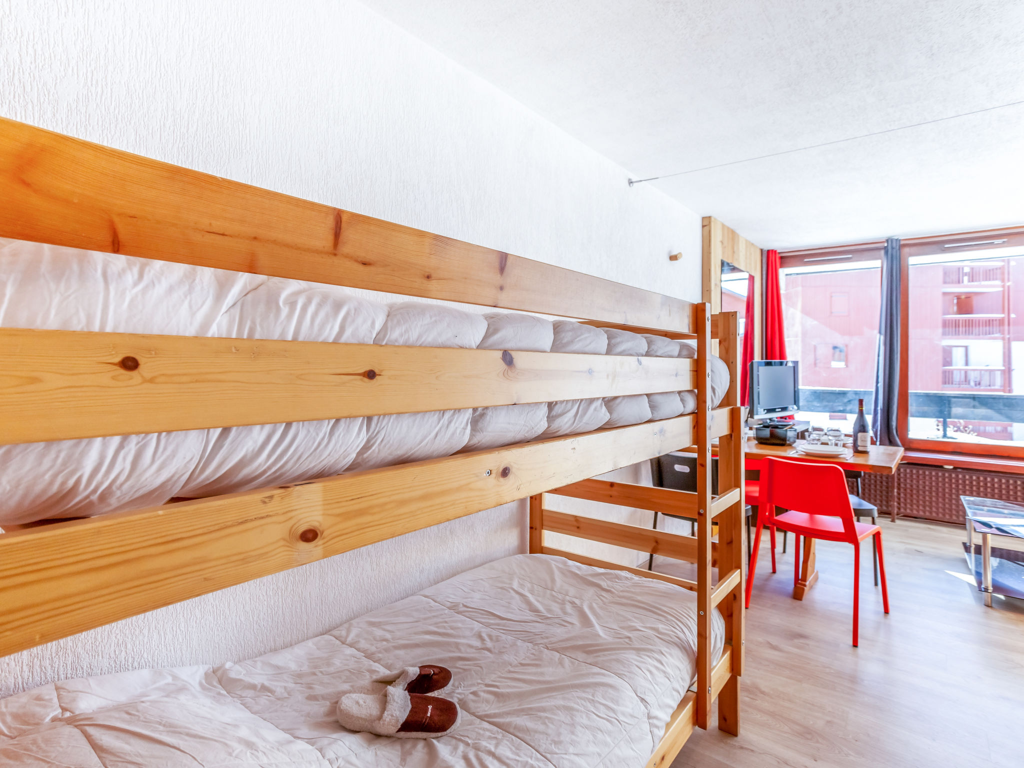 "Grande Platières II", 1-Zimmer-Studio 25 m2, im Erdgeschoss. Wohn-/Esszimmer mit 1 Ausziehbett (2 Pers. 2 x 80 cm, Länge 190 cm), TV (Flachbildschirm). Ausgang zum Balkon. Eingang mit 1 x 2 Etagenbetten (80 cm, Länge 190 cm). Offene Küche (Backofen, Geschirrspüler, 2 Glaskeramikherd Platten, Mikrowelle). Bad/WC. Südlage. Zur Verfügung: Waschmaschine. Bitte beachten: Nichtraucher-Unterkunft. Rauchmelder. Inserat einer Privatperson nach Artikel 155, IV, CGI.