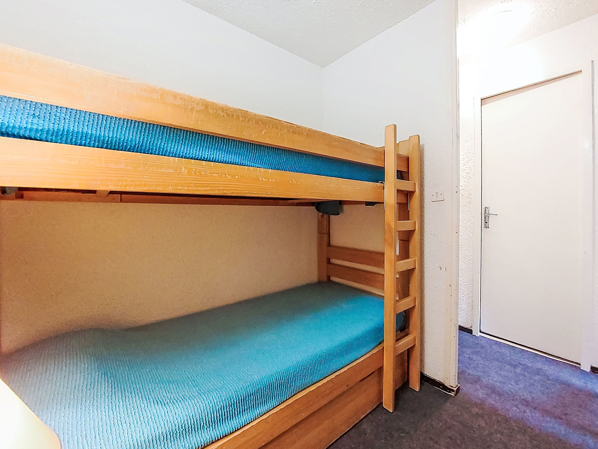 1-Zimmer-Studio 28 m2 im 12. Stock. Einfach eingerichtet: Wohn-/Esszimmer mit 1 Bett (80 cm, Länge 190 cm), 1 Schlafmöglichkeit (80 cm, Länge 190 cm), TV. Ausgang zum Balkon. Schlafnische mit 1 x 2 Etagenbetten (80 cm, Länge 190 cm). Kochnische (2 Kochplatten, Backofen, Mikrowelle, elektrische Kaffeemaschine). Bad, sep. WC. Teppichboden. Balkon, Südlage. Sicht auf die Skipiste. Zur Verfügung: Internet (Wireless LAN, extra). Bitte beachten: Maximal 1 Haustier/Hund erlaubt. Rauchmelder. Inserat einer Privatperson nach Artikel 155, IV, CGI.