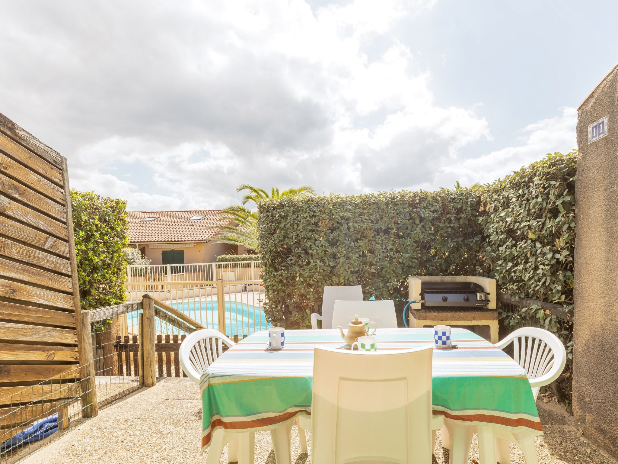 Capbreton 2 km von Hossegor: Die Residenz "Plage Sud" mit 25 Reihenhäusern, befindet sich 100 m vom Strand entfernt (Düne überqueren) Reihenhaus "Plage sud". 100 m vom Meer, 6 km vom See. Zur Mitbenutzung: Schwimmbad (10 x 8 m, 90 - 200 cm tief, saisonale Verfügbarkeit: 15.Jun.-15.Sep.). Parkplatz. Lebensmittelgeschäft, Restaurant 800 m, Sandstrand "La Savane" 100 m. Golfplatz (18 Loch) 5 km.