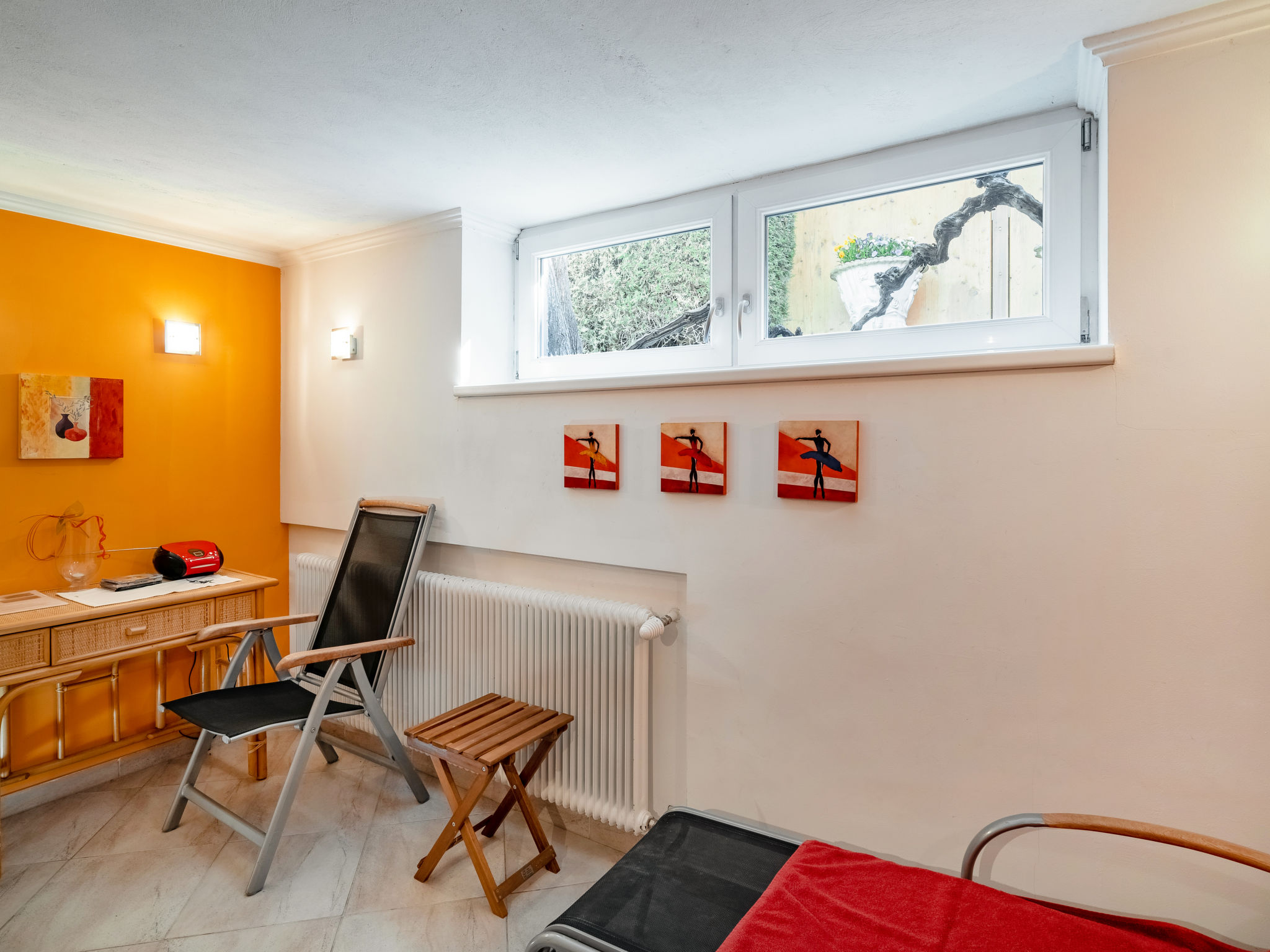 1-Zimmer-Studio 36 m2, im ebenerdigen Untergeschoss. Komfortabel und modern eingerichtet: Wohn-/Esszimmer mit 1 Diwanbett (80 cm, Länge 200 cm), 1 Doppelbett (160 cm, Länge 200 cm), Esstisch und Kabel-TV (Flachbildschirm). Ausgang zur Terrasse. Offene Küche (Backofen, Geschirrspüler, 4 Glaskeramikherd Platten). Dusche/WC. Terrassenmöbel. Sicht auf den Garten. Zur Verfügung: Babybett bis 2 Jahre. Internet (Wireless LAN, gratis). Bitte beachten: Nichtraucher-Unterkunft. 1 Haustier/Hund erlaubt. 50611-002132-2020