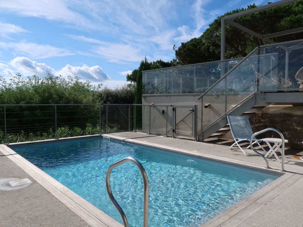 Moderne, schöne Villa "Farfalla". 1.5 km vom Zentrum von Sainte Maxime, 13 km vom Zentrum von Saint Tropez, 25 km vom Zentrum von Saint Raphael, im Villenviertel, 200 m vom Meer, 200 m vom Strand. Zur Alleinbenutzung: gepflegter Terrassengarten, 1'500 m2 (eingezäunt) mit Pflanzen, Schwimmbad eingezäunt (6 x 3 m, 80 - 150 cm tief, 01.03.-31.10.) mit Salzelektrolyse-Reinigungssystem. Aussendusche, Boccia. Treppenweg (15 Stufen) bis zum Haus. Parkplatz (für 2 Autos) auf dem Grundstück. Einkaufsgeschäft 1.4 km, Sandstrand 200 m. Jacht-Hafen 2.3 km. Der Besitzer akzeptiert keine Gruppen.