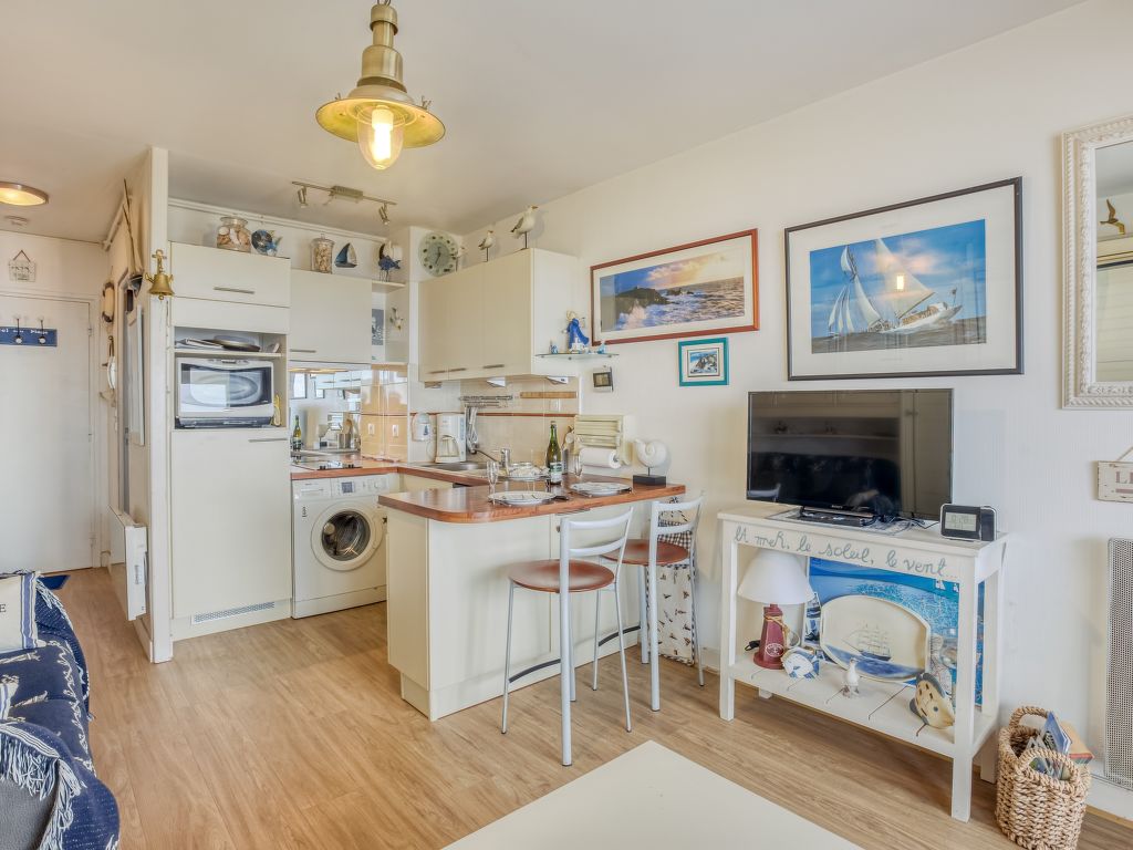 "Penduick", 1-Zimmer-Studio 20 m2 im 2. Stock. Komfortabel eingerichtet: Wohn-/Esszimmer mit 1 franz. Wandschrankbett (1 x 140 cm, Länge 190 cm), TV (Flachbildschirm). Ausgang zum Balkon. Küche (2 Kochplatten, Backofen, Geschirrspüler, Toaster, elektrische Kaffeemaschine, Kombinationsmikrowelle). Dusche/WC. E-Heizung. Balkon 6 m2. Schöne Sicht auf das Meer. Parkplatz Nr. 18. Inserat einer Privatperson nach Artikel 155, IV, CGI.