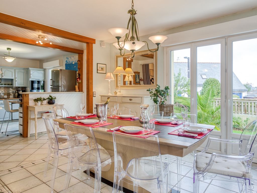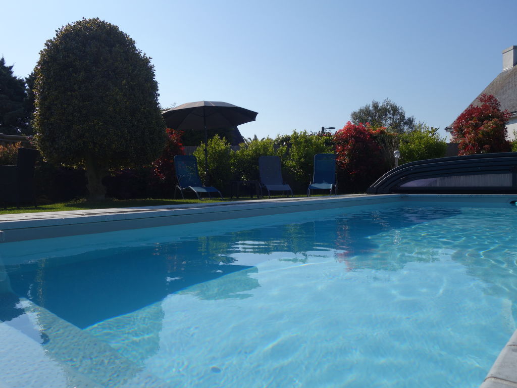 Saint Philibert 8 km von Carnac: Grosses Einfamilienhaus "Phil'blue". Im Ortszentrum von Saint Philibert, 400 m vom Meer, 1 km vom Strand. Zur Alleinbenutzung: gepflegter Garten 1'000 m2 (eingezäunt), Hallenbad eckig, beheizt, geschützt (8 x 4 m, 140 - 160 cm tief, 01.04.-19.09.). Aussendusche. Im Hause: Einstellraum für Fahrräder. Lebensmittelgeschäft 400 m, Supermarkt 2 km, Restaurant, Bäckerei 400 m, Sandstrand "Men er Belleg ou Kernevest" 1.6 km, Thermalbad "Thalasothérapie Thalazur" 8 km. Golfplatz (18 Loch) 12 km, Segelschule 1.6 km, Reitstall 4 km. Nahe gelegene Sehenswürdigkeiten: La Trinité Sur Mer 4 km, Carnac et ses alignements 8 km, Presqu'île de Quiberon 15 km, Vannes 35 km, Plage de Locmariaquer par voie cyclable 7 km, Belle ile en Mer, Houat, Hoedic. Wandergebiete: Le Golfe du Morbihan.