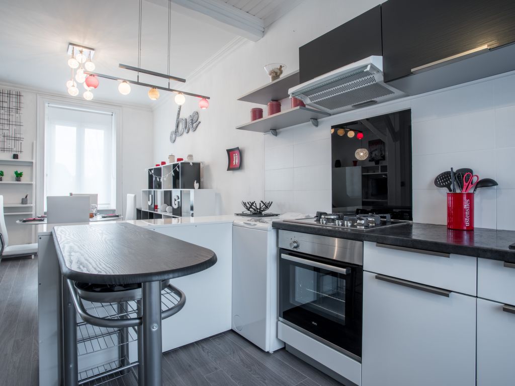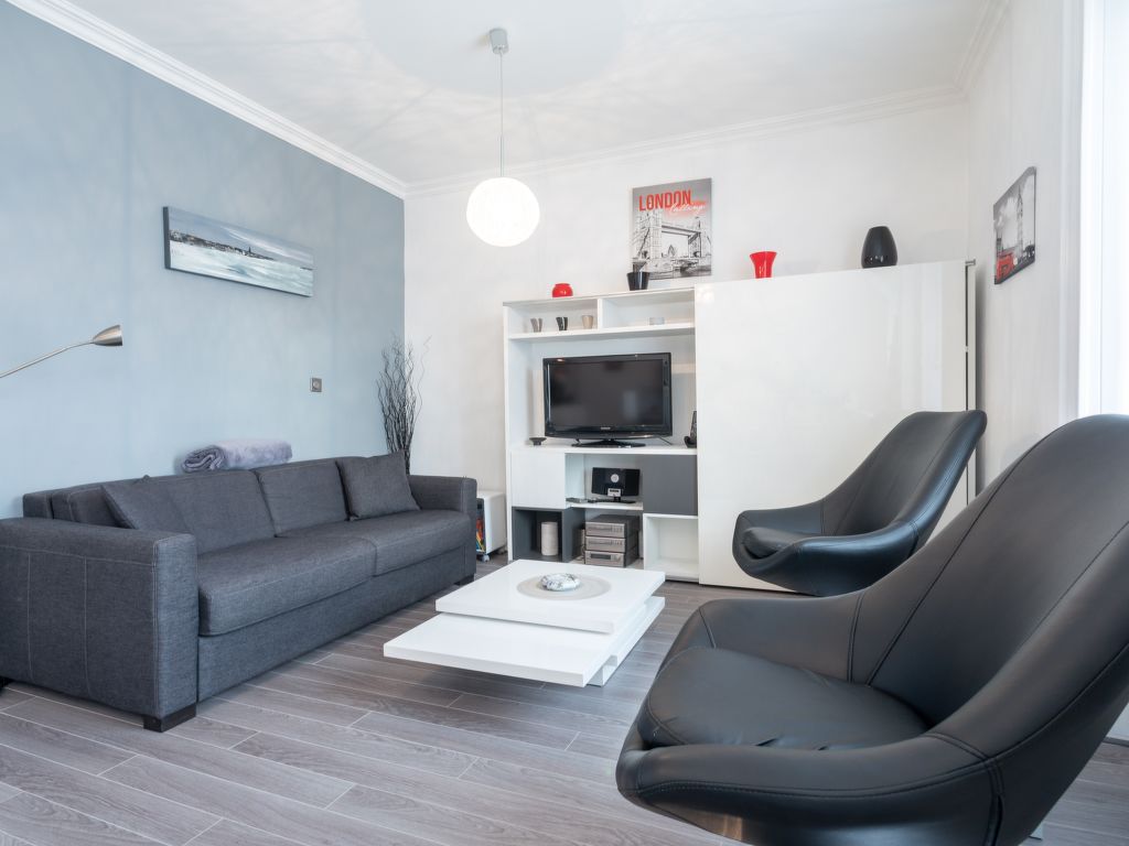 "London", 3-Zimmer-Maisonette-Wohnung 50 m2 im 2. Stock. Hell, zweckmässig und schön eingerichtet: Wohn-/Esszimmer mit 1 Doppeldiwanbett (140 cm, Länge 190 cm), TV (Flachbildschirm), E-Heizung. Offene Küche (3 Kochplatten, Backofen, Toaster, Wasserkocher, Mikrowelle, elektrische Kaffeemaschine). Sep. WC. Obergeschoss: 2 abgeschrägte Zimmer, jedes Zimmer mit 1 franz. Bett (140 cm, Länge 190 cm). Dusche/WC. Zur Verfügung: Waschmaschine, Bügeleisen, Kinderhochstuhl, Babybett bis 2 Jahre, Haartrockner. Internet (Wireless LAN, gratis). Bitte beachten: Nichtraucher-Unterkunft, kein Parkplatz. Rauchmelder, kein Fahrstuhl. Inserat einer Privatperson nach Artikel 155, IV, CGI.