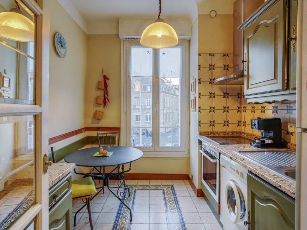 Appartementhaus "Pavillon des Roches", auf 4 Stockwerken. Im Ortsteil Port-Vieux, im Herzen der Stadt, 20 m vom Meer, 20 m vom Strand, Strasse zu überqueren. Im Hause: Fahrstuhl. Einkaufsgeschäft, Lebensmittelgeschäft 100 m, Supermarkt 500 m, Restaurant 20 m, Bäckerei 200 m, Bahnstation 3.3 km, Sandstrand "Port-Vieux" 20 m. Golfplatz (18 Loch) 3 km, Surfschule 750 m. Nahe gelegene Sehenswürdigkeiten: Aquarium de Biarritz 250 m, Rocher de la Vierge 300 m, Port des Pêcheurs 400 m, Marché des Halles 500 m, Bayonne 8 km, Saint-Jean-de-Luz 17 km. Wandergebiete: La Rhune 26 km.