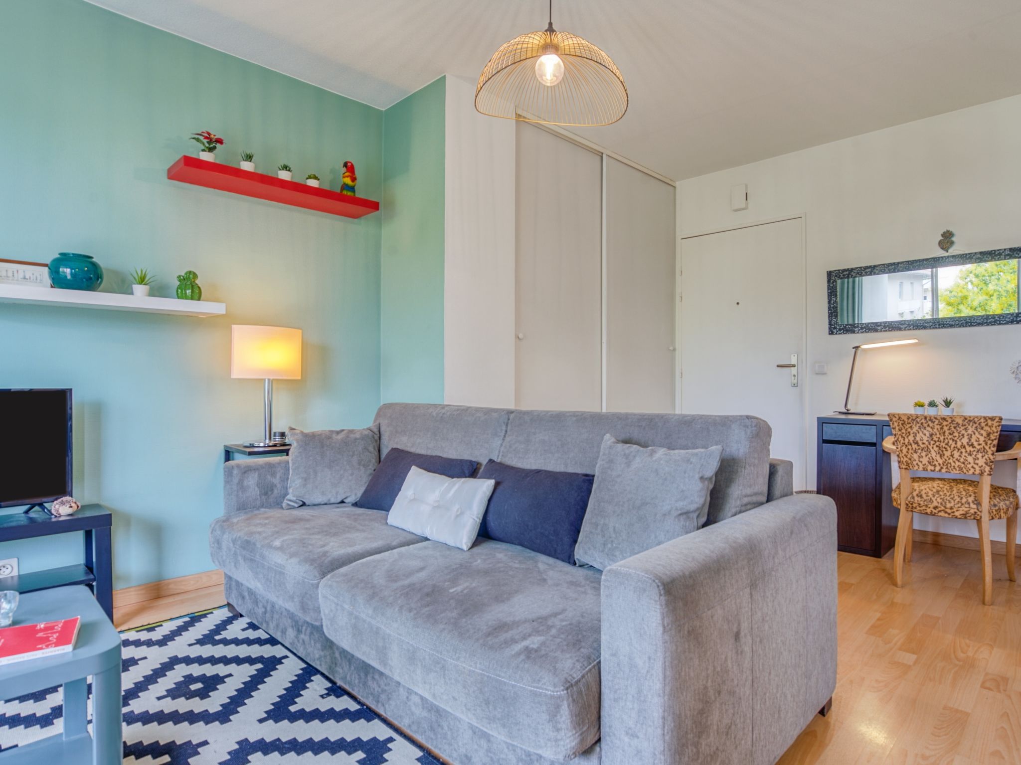 1-Zimmer-Studio 30 m2 im 2. Stock. Komfortabel und modern eingerichtet: Wohn-/Esszimmer mit 1 Doppeldiwanbett (160 cm, Länge 190 cm), TV (Flachbildschirm). Ausgang zur Terrasse. Kochnische (2 Induktionskochplatten, Toaster, Wasserkocher, elektrische Kaffeemaschine, Kapseln für die Kaffeemaschine (Nespresso) extra, Kombinationsmikrowelle). Bad/Dusche/WC. Terrasse 10 m2, Ostlage. Balkonmöbel. Zur Verfügung: Waschmaschine, Bügeleisen, Haartrockner. Internet (Wireless LAN, gratis). Bitte beachten: Rauchmelder. Inserat einer Privatperson nach Artikel 155, IV, CGI. 640240014174B