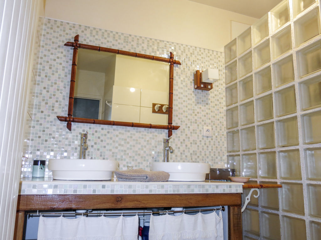 3-Zimmer-Haus 80 m2 auf 2 Stockwerken, im erhöhten Erdgeschoss. Wohn-/Esszimmer mit TV, CD und Stereoanlage. Offene Küche (Backofen, Geschirrspüler, 4 Flammen, Toaster, Mikrowelle, elektrische Kaffeemaschine) mit Essecke. Ausgang zur Terrasse. Dusche, sep. WC, Doppelwaschbecken. Obergeschoss: 1 Zimmer mit 1 franz. Bett (160 cm, Länge 200 cm). 1 Zimmer mit 2 Betten (90 cm, Länge 190 cm), G-Heizung. Parkettböden, Natursteinböden. Terrasse, Südlage. Terrassenmöbel, Gartengrill (mobil). Zur Verfügung: Waschmaschine, Kinderhochstuhl, Babybett. Internet (Wireless LAN, gratis). Bitte beachten: Nichtraucher-Haus. Inserat einer Privatperson nach Artikel 155, IV, CGI.