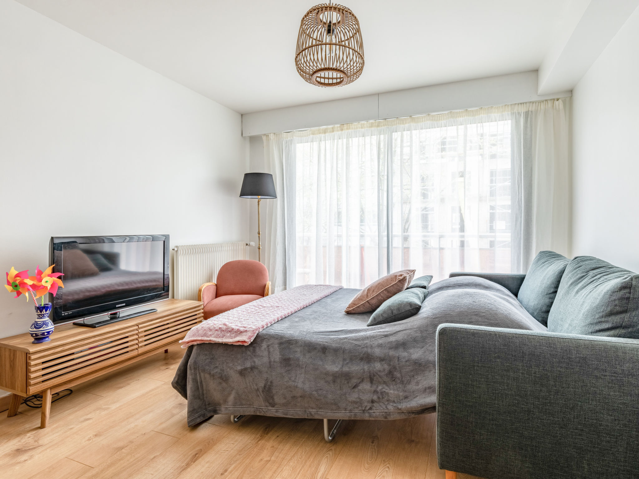 3-Zimmer-Wohnung 64 m2 im 2. Stock. Komfortabel und schön eingerichtet: Wohn-/Esszimmer mit 1 Doppeldiwanbett (1 x 140 cm, Länge 190 cm), TV (Flachbildschirm), Stereoanlage. Ausgang zum Balkon. 1 Zimmer mit 1 franz. Bett (1 x 160 cm, Länge 190 cm). Ausgang zum Balkon. 1 Zimmer mit 1 franz. Bett (1 x 140 cm, Länge 190 cm). Ausgang zum Balkon. Offene Küche (4 Kochplatten, Backofen, Geschirrspüler, Toaster, Wasserkocher, Mikrowelle, Tiefkühler, elektrische Kaffeemaschine, Kapseln für die Kaffeemaschine (Nespresso) extra) mit Bar. Dusche, sep. WC. G-Heizung. Balkon 4 m2, Ostlage, Balkon 6 m2, Westlage. Balkonmöbel, Liegestühle (1). Schöne Sicht auf das Städtchen. Zur Verfügung: Waschmaschine, Bügeleisen, Babybett, Haartrockner. Internet (Wireless LAN, gratis). Bitte beachten: Maximal 1 Haustier/Hund erlaubt. Rauchmelder.