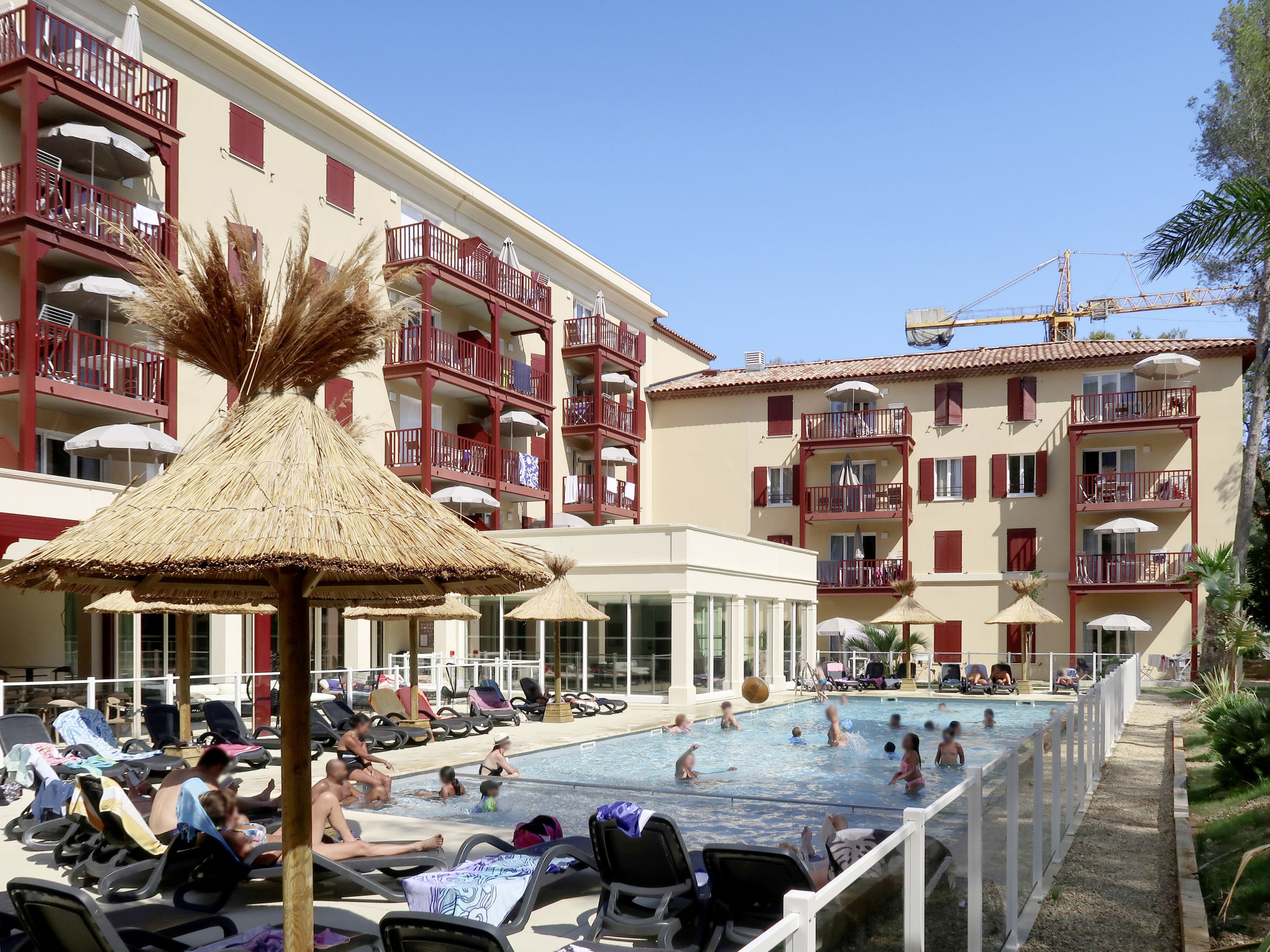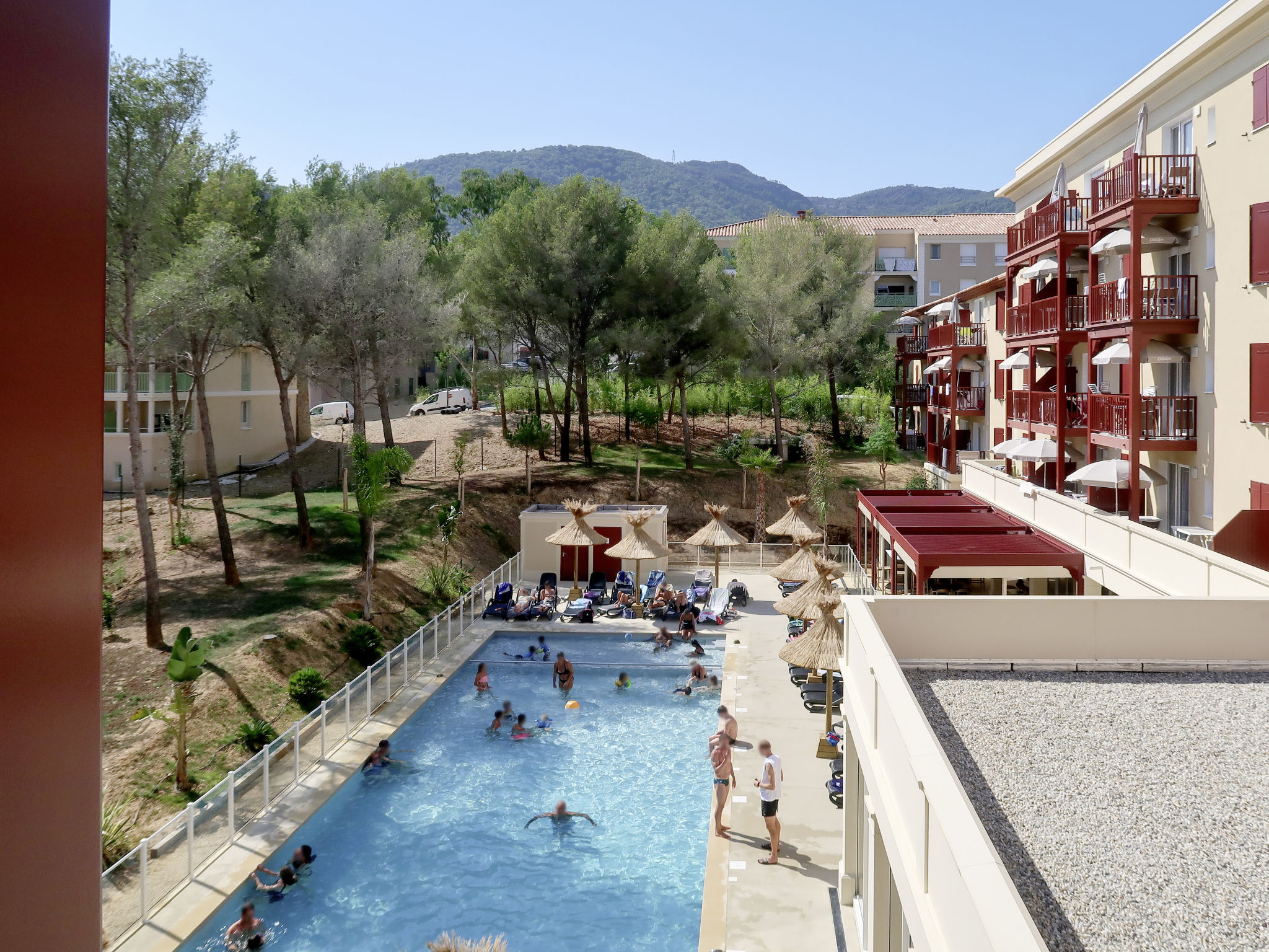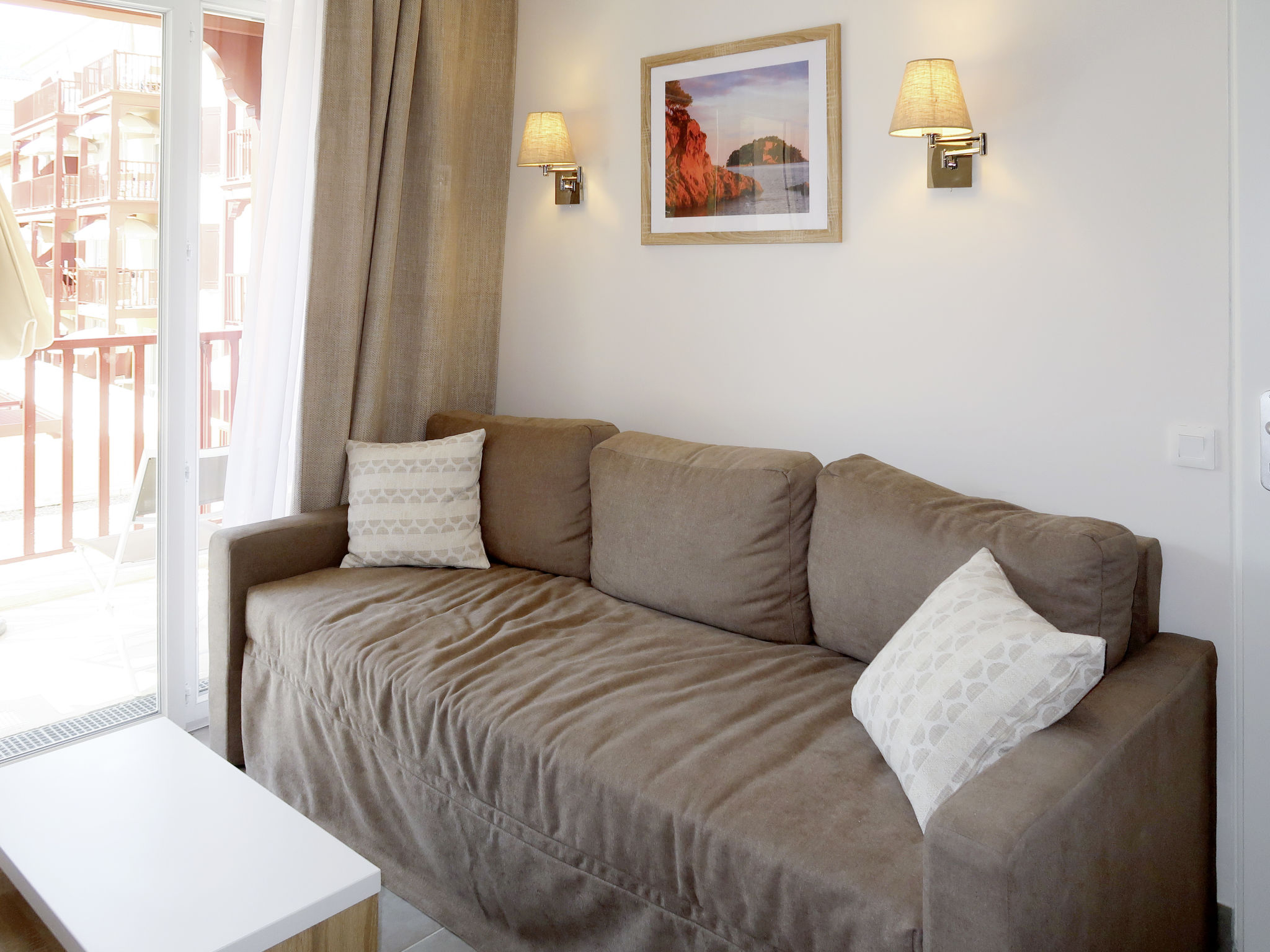 Ferienanlage "Les Canissons", Baujahr 2019. 95 Wohnungen in der Residenz. 800 m vom Zentrum von Cavalaire, 20 km vom Zentrum von St. Tropez, 59 km vom Zentrum von Toulon, 700 m vom Meer. Zur Mitbenutzung: Grundstück (eingezäunt), Schwimmbad beheizt (15 x 6 m, 140 cm tief, saisonale Verfügbarkeit: 04.Apr.-26.Sep.). Kinderbecken, Aussendusche, Boccia. In der Anlage: Empfang, Frühstücksraum, Sauna, Fitnessraum, Massage (extra). Dampfbad, Waschmaschine, Wäschetrockner (zur Mitbenutzung, extra). Frühstück (extra). Parkplatz (beschränkte Anzahl), Gemeinschaftsgarage. Einkaufsgeschäft, Restaurant 300 m, Sandstrand "Bonporteau" 700 m. Die Residenz wird durch elektrische Tore geschlossen. Das Foto ist nur ein Wohnungsbeispiel. Die Mietobjekte können sich in Wohnfläche, Raumaufteilung, Ausstattung und Einrichtung unterscheiden.