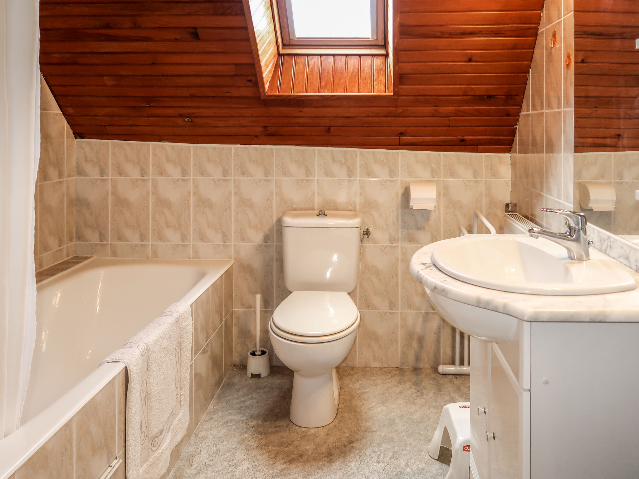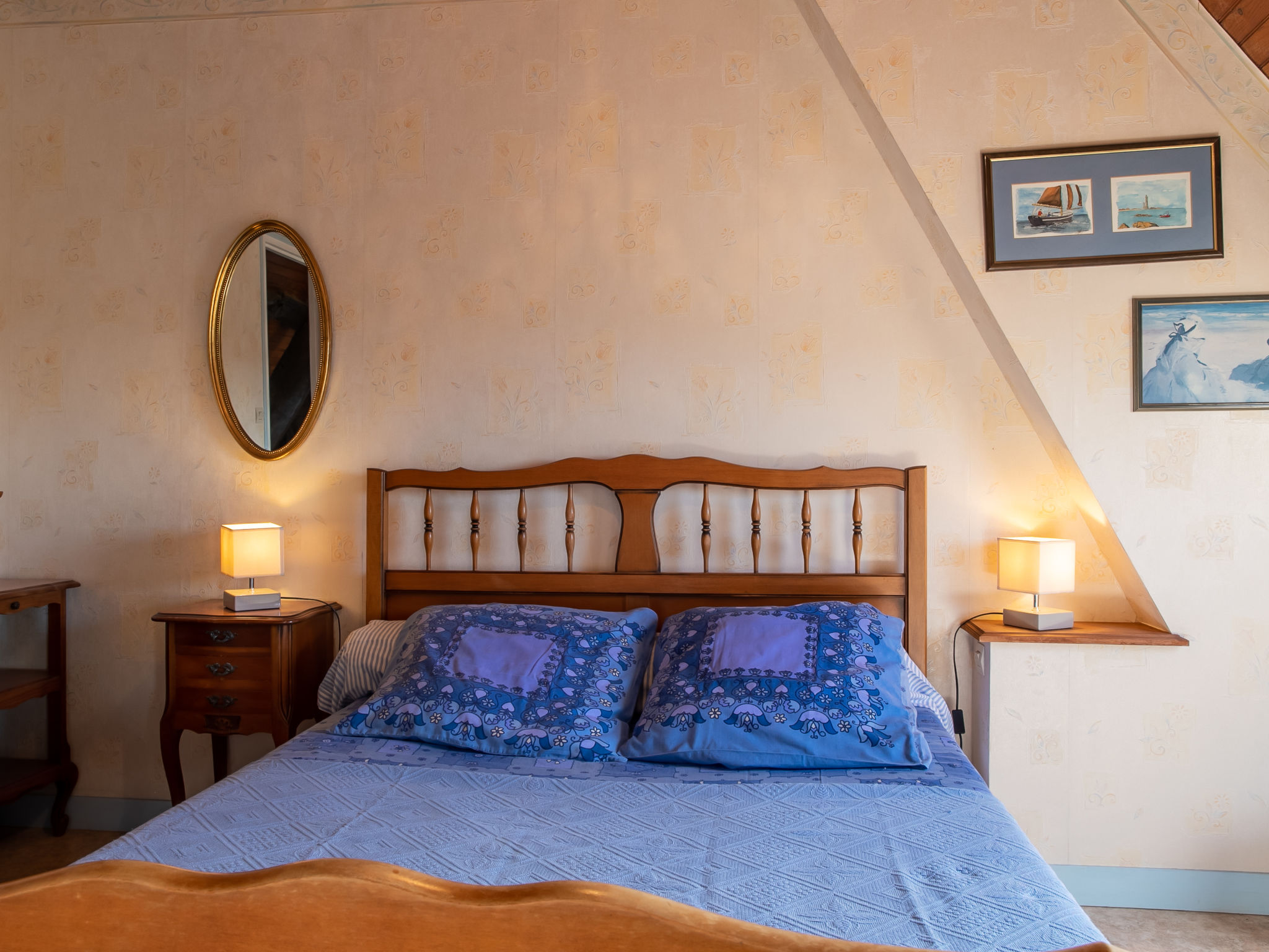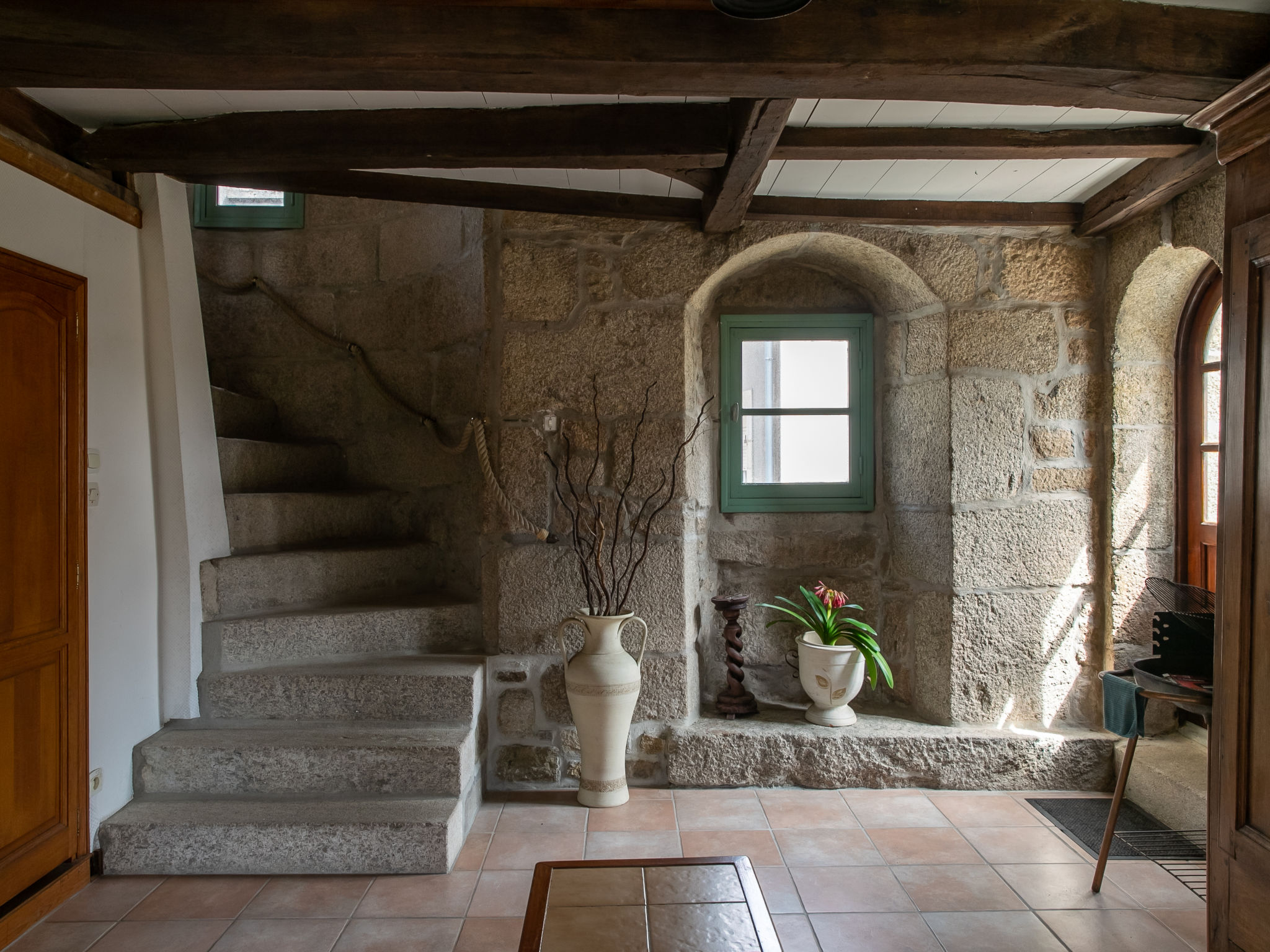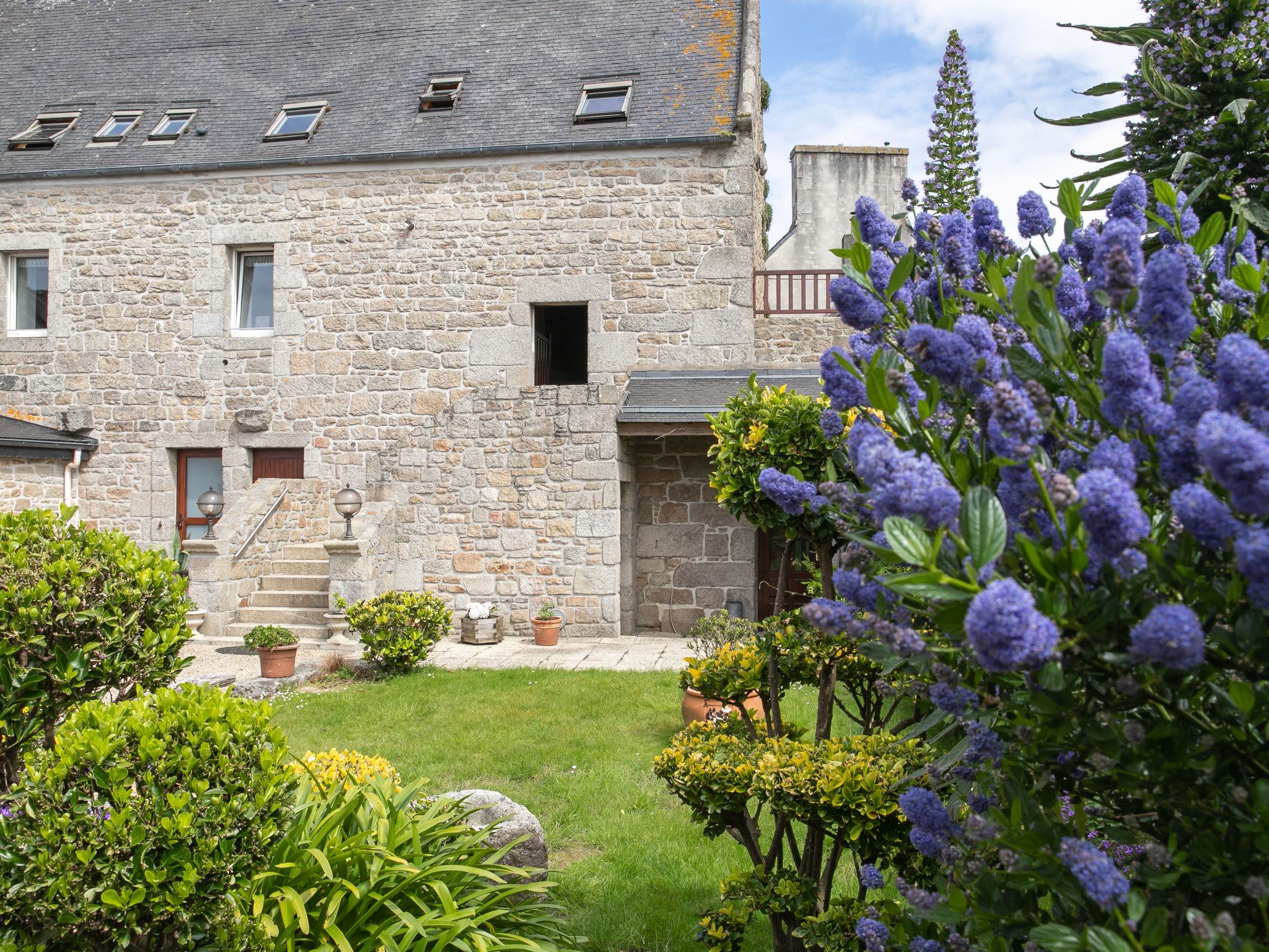 Grosses Herrenhaus "Manoir des Halles". Im Ortszentrum von Plouescat, 30 m vom Zentrum von Plouescat, 15 km vom Zentrum von St. Pol-de-Léon, 34 km vom Zentrum von Morlaix, 2 km vom Meer, 3 km vom Strand. Zur Mitbenutzung: Grundstück 150 m2 (eingezäunt), Hof. Zur Alleinbenutzung: Grundstück 200 m2, Garten mit Pflanzen. Pergola. Im Hause: Einstellraum für Fahrräder. Parkplatz (für 2 Autos) auf dem Grundstück. Einkaufsgeschäft, Lebensmittelgeschäft 30 m, Supermarkt 1.6 km, Restaurant, Bäckerei, Café 50 m, Sandstrand "Porsmeur" 3.5 km, Hallenbad 15 km, Thermalbad "Thalasso Roscoff" 20 km. Golfplatz (9 Loch) 2 km, Surfschule 3.7 km, Segelschule 3.7 km, Minigolf 2 km. Nahe gelegene Sehenswürdigkeiten: Réserve ornithologique Keremma 9 km, Château de Kerjean 10 km, Meneham, Kerlouan 18.5 km, Lesneven 17 km, Roscoff, Jardin exotique, Île de Batz 22 km, Océanopolis Brest 33 km. Bitte beachten: Der Besitzer wohnt auf dem gleichen Grundstück.