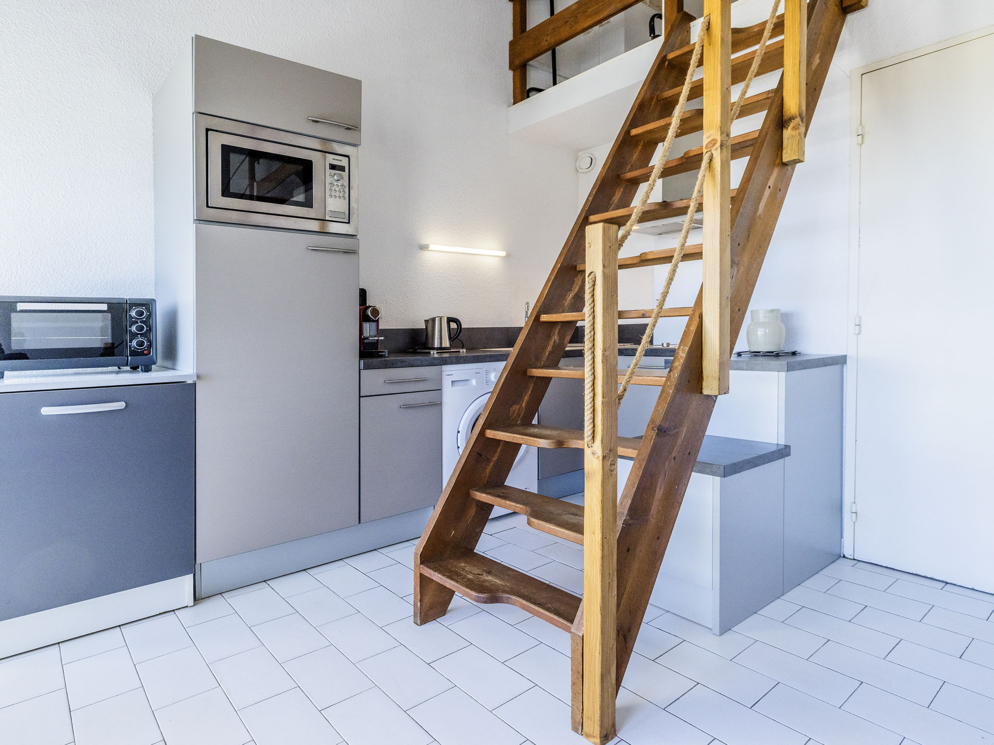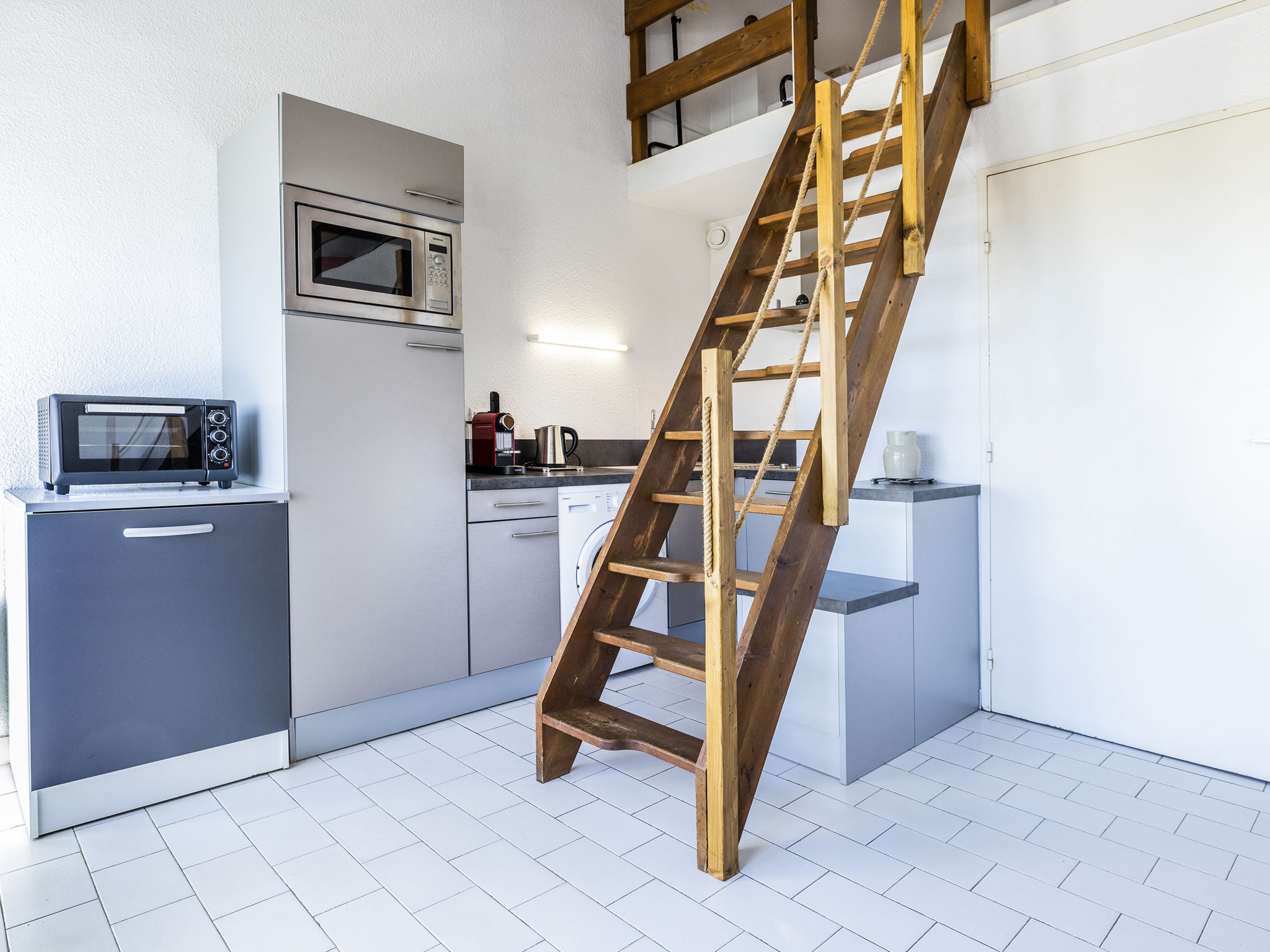 1-Zimmer-Wohnung 38 m2 auf 2 Stockwerken im 4. Stock. Wohn-/Esszimmer mit 1 Diwanbett (140 cm, Länge 190 cm), TV (Flachbildschirm). Ausgang zum Balkon. Kochnische (Mini-Backofen, Geschirrspüler, 2 Glaskeramikherd Platten, Mikrowelle, Tiefkühler, elektrische Kaffeemaschine). Dusche/WC. Obergeschoss: (steile Treppe) abgeschrägte Galerie, Deckenhöhe 165 - 240 cm mit 1 franz. Bett (140 cm, Länge 190 cm). Kleiner Balkon 4 m2, Südwestlage. Balkonmöbel. Schöne Sicht auf die Berge. Zur Verfügung: Waschmaschine. Parkplatz (eingezäunt). Bitte beachten: Rauchmelder, kein Fahrstuhl. Inserat einer Privatperson nach Artikel 155, IV, CGI.
