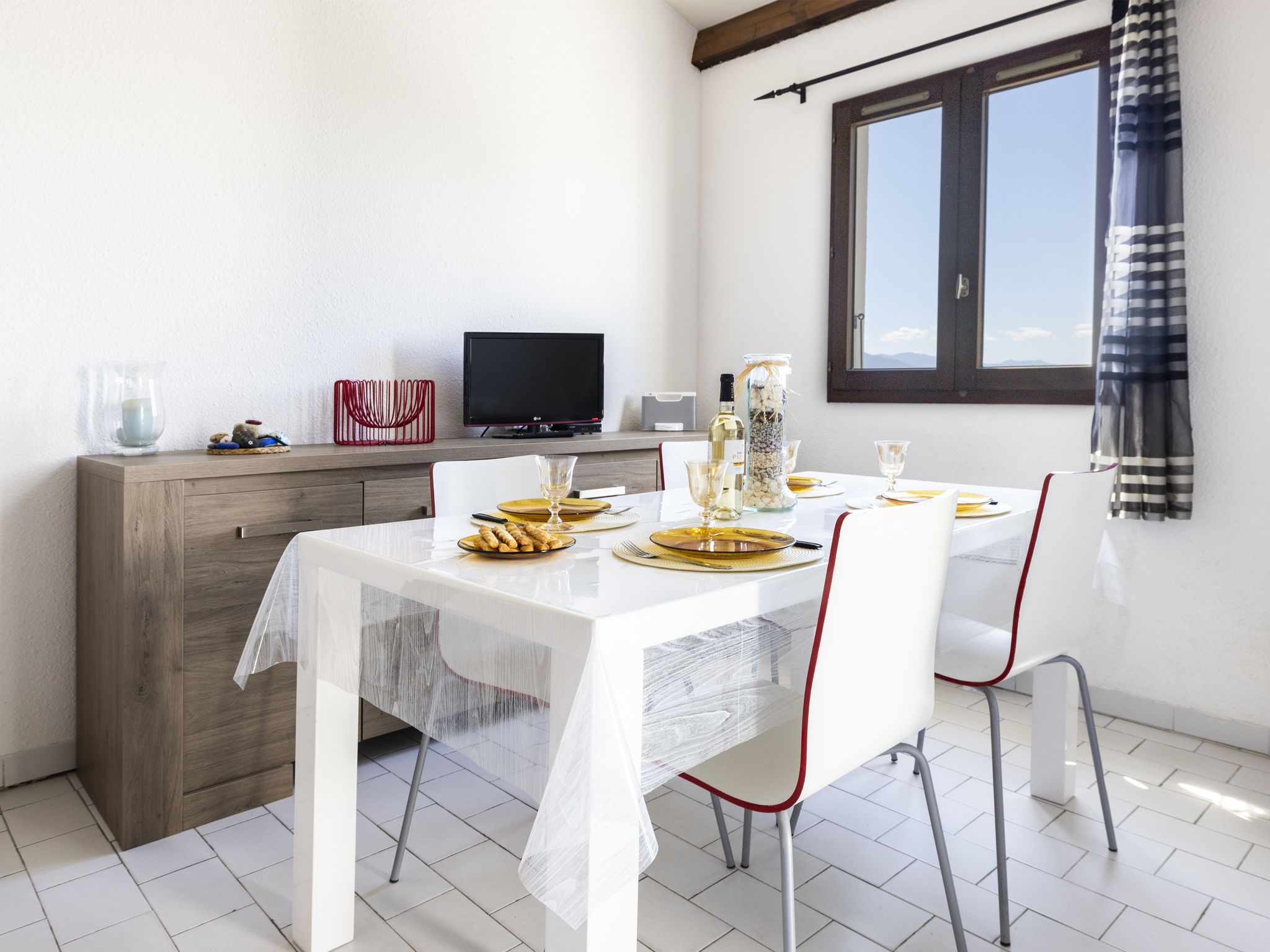 Residenz "Les Frégates", auf 4 Stockwerken. Im Ort, 3.7 km vom Zentrum von Saint Cyprien Port, 150 m vom Meer, 100 m vom Strand, direkter Zugang zum Strand. Zur Mitbenutzung: Schwimmbad (saisonale Verfügbarkeit: 21.Jun.-30.Sep.). Öffentliche Parkplätze auf der Strasse. Einkaufsgeschäft 1.8 km, Lebensmittelgeschäft 50 m, Supermarkt 3 km, Restaurant 700 m, Bahnstation "Elne" 8 km, Kieselstrand "Plage Sud" 100 m. Sporthafen 3.7 km, Golfplatz (27 Loch) 7 km, Segelschule 3.3 km, Minigolf 5.5 km, Reitstall 3.3 km, Sportzentrum 2 km. Nahe gelegene Sehenswürdigkeiten: Aqualand 1.6 km. Bitte beachten: In diesem Haus sind weitere Ferienwohnungen mietbar.