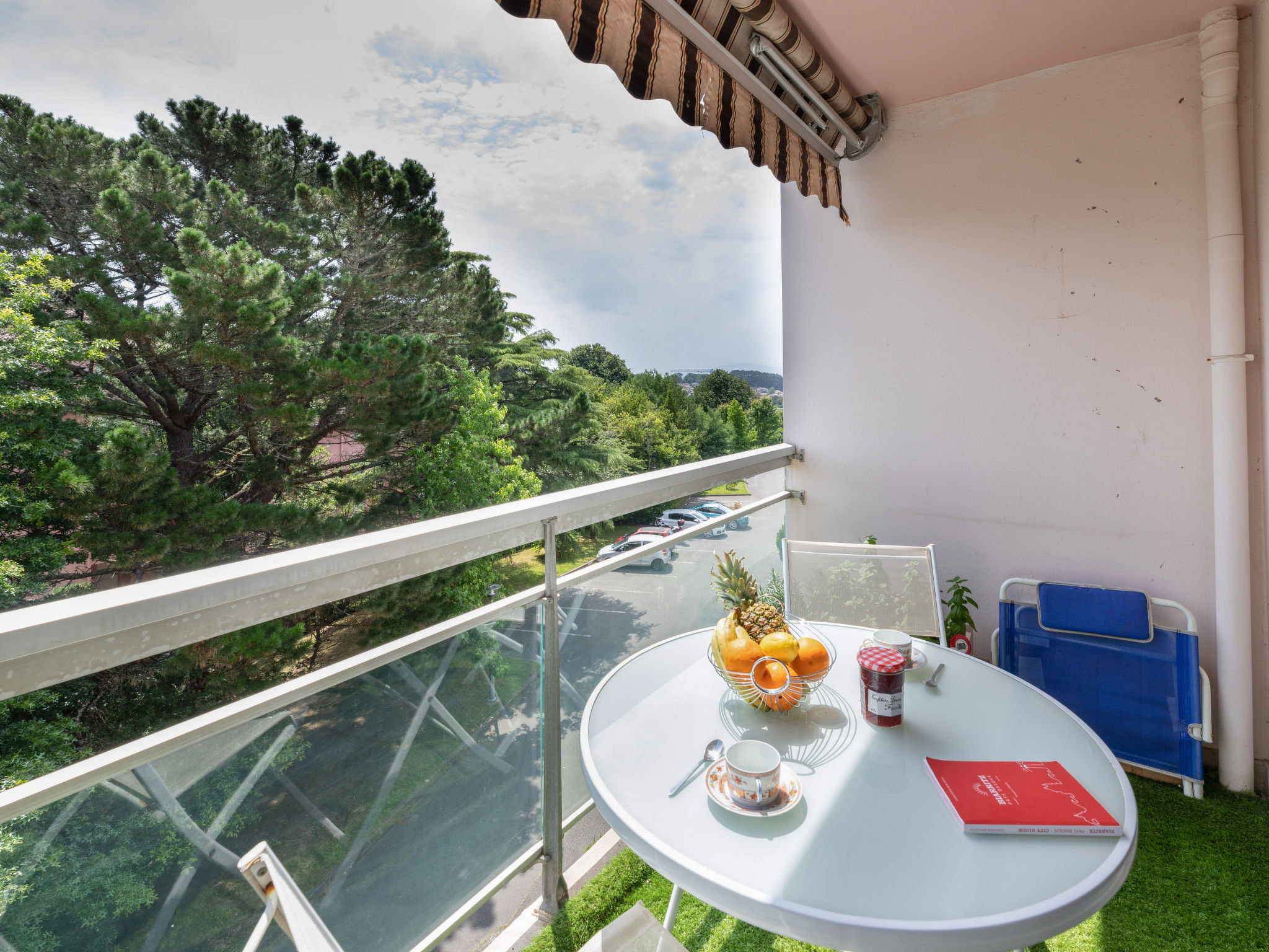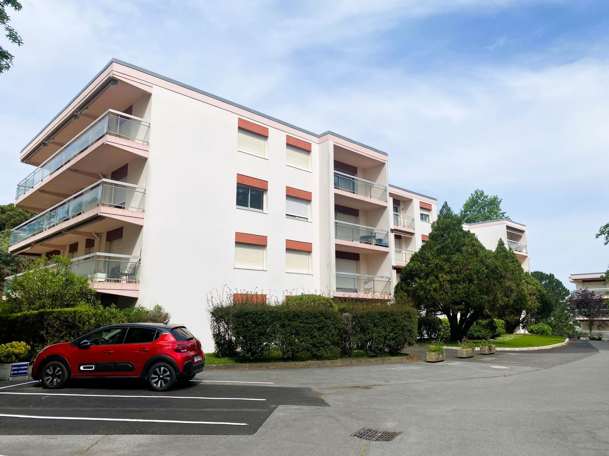 Schöne Residenz "Arverna", auf 3 Stockwerken. Im Ortsteil Médiathèque, im Ort, 800 m vom Zentrum von Biarritz, ruhige Lage, 1.5 km vom Meer, 1.5 km vom Strand. Zur Mitbenutzung: Park 1 ha (eingezäunt) mit Rasen und Bäumen. In der Anlage: Fahrstuhl, Einstellraum für Fahrräder. Einkaufsgeschäft 900 m, Lebensmittelgeschäft 300 m, Supermarkt 3.6 km, Restaurant 450 m, Bushaltestelle "Navette gratuite centre Biarritz" 50 m, Bahnstation "La Negresse" 3.4 km, Sandstrand "La Grande Plage" 1.5 km. Golfplatz (18 Loch) 1.7 km, Surfschule 1.5 km, Tennishalle 1.9 km. Nahe gelegene Sehenswürdigkeiten: Marché des Halles 1.2 km, Port des Pecheurs 1.5 km, Aquarium 1.8 km, Phare de Biarritz 2 km, Bayonne 7 km, Saint-Jean-de-Luz 16 km. Wandergebiete: La Rhune 35 km.