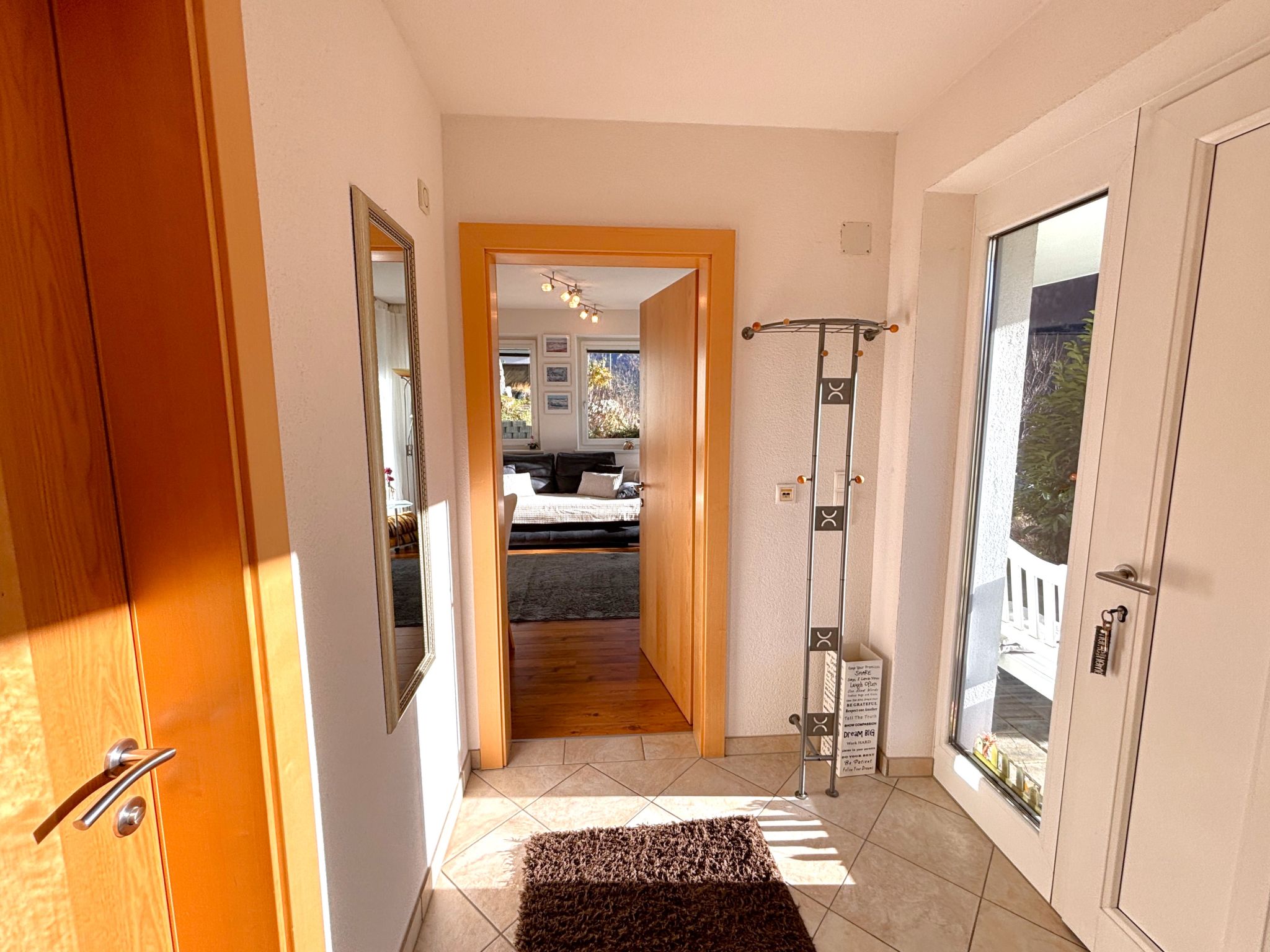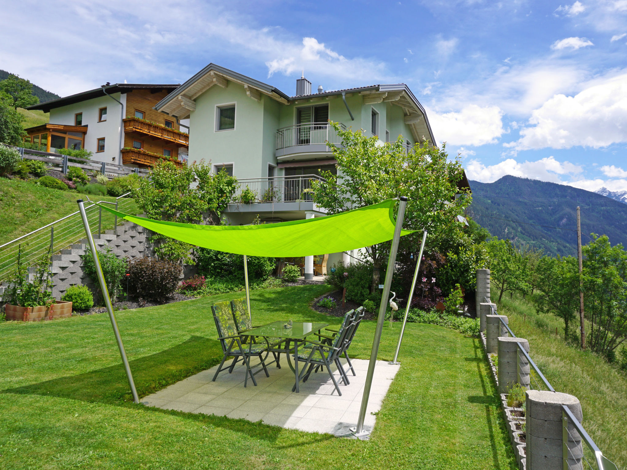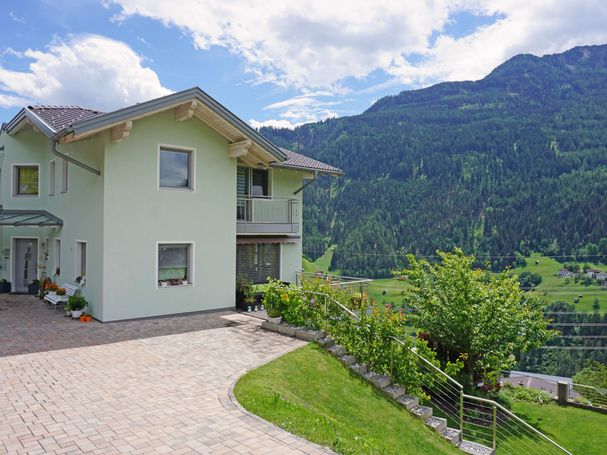 Fliess 8 km von Landeck: Komfortables Mehrfamilienhaus "Muehlbach". Ruhige, sonnige Lage am Hang, im Grünen. Zur Mitbenutzung: Garten mit Rasen und Blumen, Liegewiese. Aussendusche, Terrasse, Gartenmöbel, Grill. Im Hause: Einstellraum für Fahrräder, Zentralheizung. Treppenweg bis zum Haus. Parkplatz (überdacht) beim Haus. Einkaufsgeschäft, Lebensmittelgeschäft 500 m, Supermarkt 7 km, Restaurant, Bushaltestelle 500 m, Freibad 1.7 km. Tennis 1.7 km, Sportzentrum 500 m, Sessellift 3.5 km, Gondelbahn 10 km, Skibushaltestelle 10 m, Skischule 3.5 km, Langlaufloipe 6 km, Kinderspielplatz 1.7 km. Nahe gelegene Sehenswürdigkeiten: Naturpark-Haus Kaunergrat 6 km. Bekannte Skigebiete sind gut erreichbar: Venet 3 km, Fiss-Serfaus 17 km, Kaunertaler Gletscher 40 km. Wandergebiete: Naturpark Kaunergrat. Bitte beachten: Gratis Skibus. Der gratis Skibus fährt zum Skigebiet Venet.