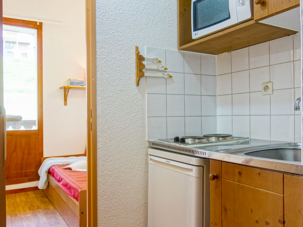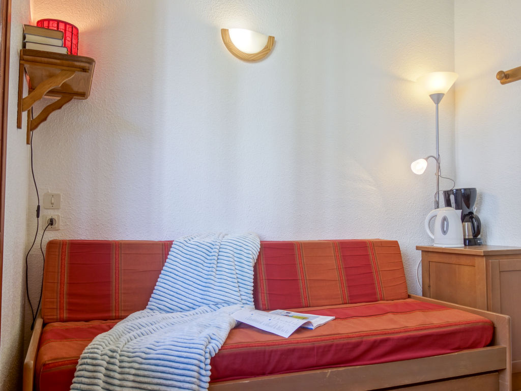 1-Zimmer-Studio 15 m2 im 3. Stock. Einfach und zweckmässig eingerichtet: Wohn-/Esszimmer mit 1 Ausziehbett (2 Pers. 2 x 80 cm, Länge 190 cm), TV (Flachbildschirm), E-Heizofen. Ausgang zum Balkon, Richtung Osten. Kochnische (2 Kochplatten, Toaster, Wasserkocher, Mikrowelle, elektrische Kaffeemaschine). Dusche/WC. Bitte beachten: Nichtraucher-Unterkunft. Rauchmelder. Inserat einer Privatperson nach Artikel 155, IV, CGI.