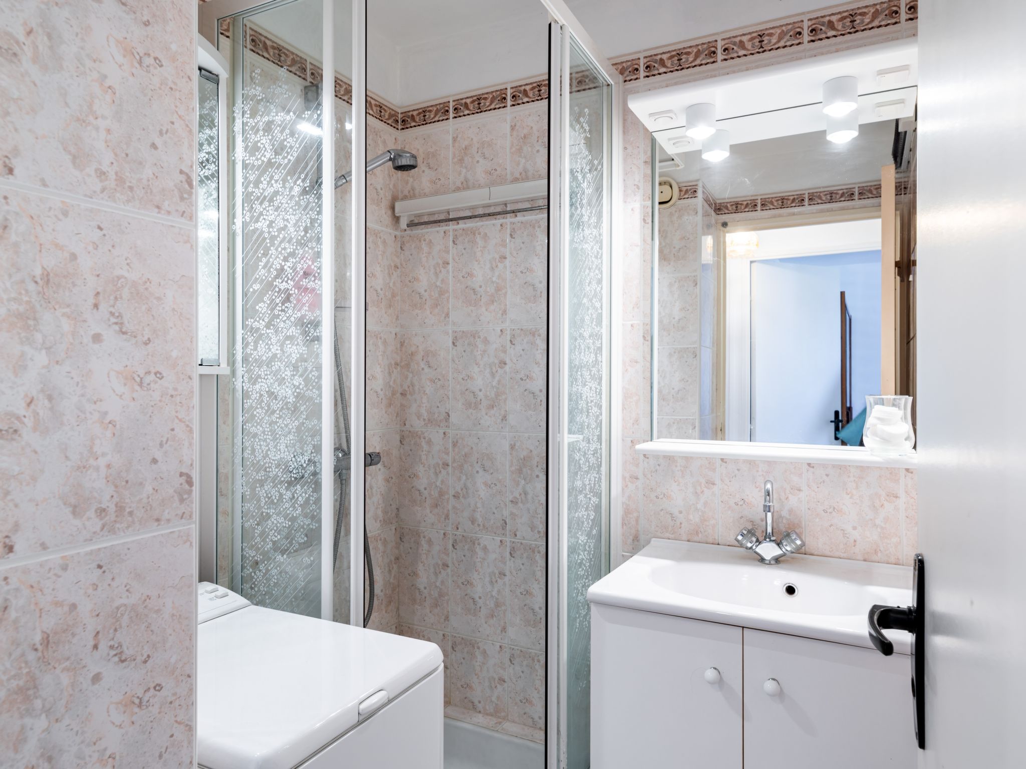 Merville Franceville 4 km von Cabourg: Residenz "La Côte Fleurie", auf 2 Stockwerken. Im Ort, 1 km vom Zentrum von Merville Franceville Plage, 200 m vom Meer, 200 m vom Strand, direkter Zugang zum Strand. Einkaufsgeschäft 1 km, Lebensmittelgeschäft 1 km, Supermarkt 1 km, Einkaufszentrum 5 km, Restaurant 200 m, Bäckerei 1.5 km, Sandstrand 500 m, Thermalbad "Thalassothérapie" 5.1 km. Sporthafen 7.5 km, Golfplatz (18 Loch) 3 km, Segelschule 8 km, Tennis 1.1 km, Minigolf 1.5 km. Bitte beachten: Fahrzeug empfohlen, kein Fahrstuhl vorhanden. Die Schlüsselübergabe findet bei der Agentur Interhome in Cabourg statt, 8 km.