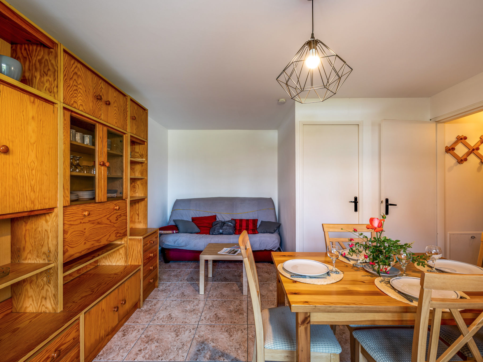 3-Zimmer-Wohnung 38 m2, im Erdgeschoss, Westlage. Wohn-/Esszimmer mit TV (Flachbildschirm), DVD. Ausgang zum Garten. 1 Zimmer mit 1 franz. Bett (140 cm, Länge 190 cm). 1 Zimmer mit 2 Ausziehbetten (2 Pers. 2 x 90 cm, Länge 190 cm). Kochnische (Mini-Backofen, Geschirrspüler, 4 Induktionskochplatten, Toaster, Wasserkocher, Mikrowelle, Tiefkühler, elektrische Kaffeemaschine). Dusche, sep. WC. E-Heizung. Garten 13 m2. Terrassenmöbel. Zur Verfügung: Waschmaschine, Bügeleisen. Internet (Wireless LAN, extra). Parkplatz Nr. 29. Bitte beachten: Rauchmelder. Inserat einer Privatperson nach Artikel 155, IV, CGI.