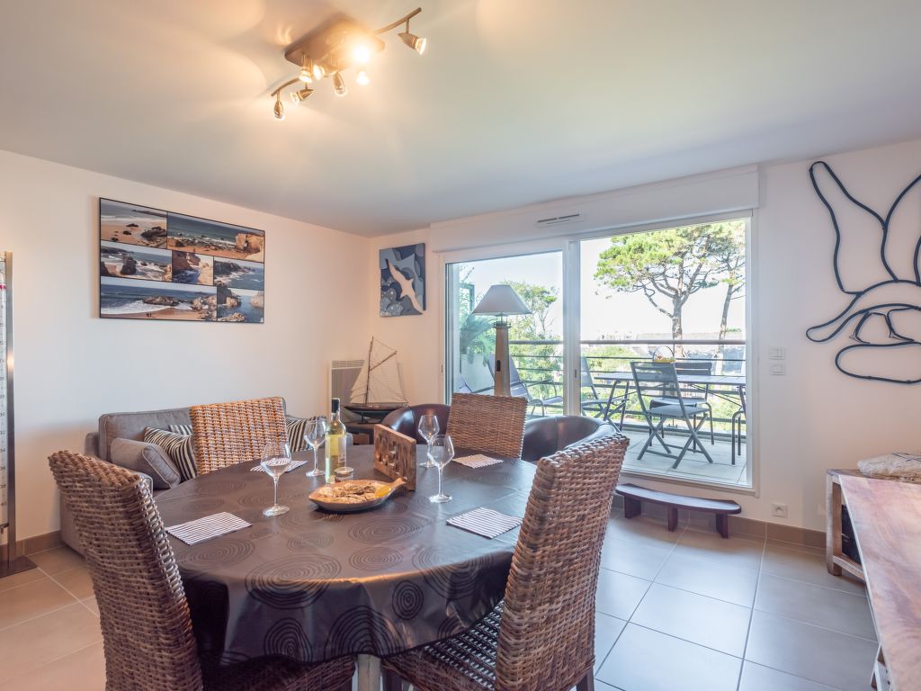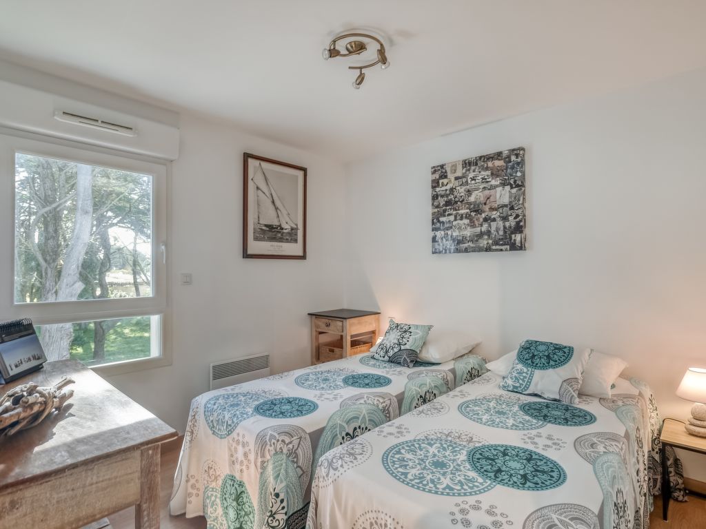 Quiberon: Schöne Residenz "Parc Saint-Clément", auf 2 Stockwerken. Am Ortsrand, 1 km vom Zentrum von Quiberon, 400 m vom Meer, 400 m vom Strand. Zur Mitbenutzung: gepflegter Garten Rasen. Im Hause: Fahrstuhl, Einstellraum für Fahrräder. Einkaufsgeschäft 1.2 km, Supermarkt 1 km, Hallenbad 150 m, Thermalbad "Thalassothérapie de Quiberon" 900 m. Golfplatz (9 Loch) 3 km, Surfschule 5 km, Segelschule 5 km. Nahe gelegene Sehenswürdigkeiten: Quiberon 1 km, Carnac et la Trinité sur Mer 20 km, Vannes 45 km, Lorient 65 km, Belle ile en Mer, Houat et Hoedic.