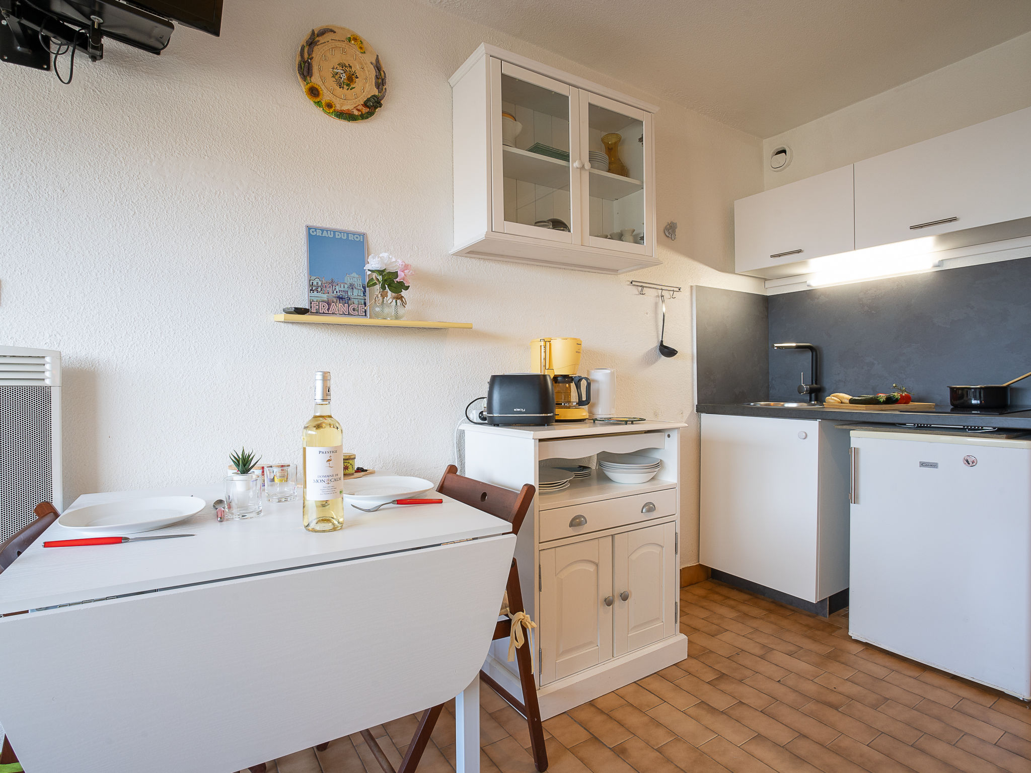 Residenz "Le Marlin", auf 3 Stockwerken. Im Ortsteil le Palais de la Mer, 800 m vom Meer, 800 m vom Strand. Zur Mitbenutzung: Tennis, Boccia, Parkplatz (beschränkte Anzahl). Einkaufsgeschäft 200 m, Lebensmittelgeschäft 50 m, Supermarkt 150 m, Einkaufszentrum 350 m, Restaurant, Bar, Café 50 m, Sandstrand "Plage Nord", Freibad 2.2 km, Thermalbad "Thalazur Port Camargue" 4.6 km. Sporthafen 2.3 km, Minigolf 700 m, Reitstall 2 km, Kinderspielplatz 700 m. Nahe gelegene Sehenswürdigkeiten: Casino Flamingo 350 m, Seaquarium 1.4 km, Arènes du Grau du roi 3.2 km. Wandergebiete: P13. Bitte beachten: Die Schlüsselübergabe findet bei der Agentur Interhome in Port Camargue statt, 2 km. Flugplatz 24 km vom Haus.