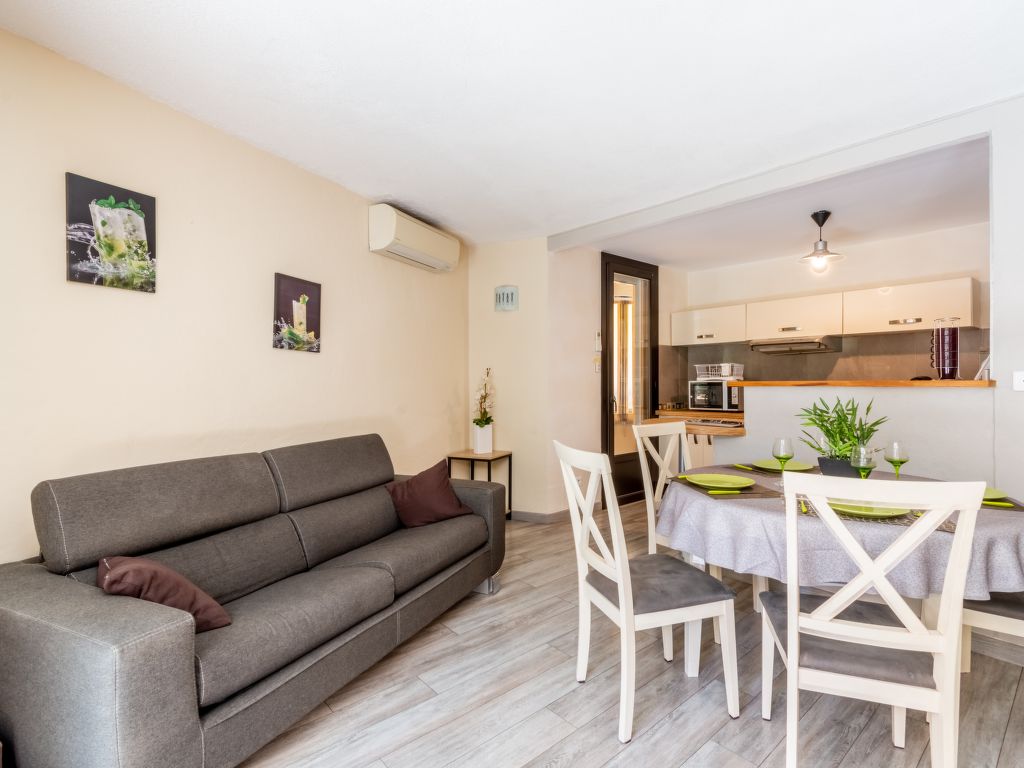 3-Zimmer-Wohnung 53 m2 im 1. Stock. Wohn-/Esszimmer mit 1 Doppeldiwanbett (1 x 140 cm, Länge 190 cm), Esstisch und TV (Flachbildschirm), Klimaanlage. Ausgang zur Terrasse. 2 Zimmer, jedes Zimmer mit 1 franz. Bett (1 x 140 cm, Länge 190 cm), Klimaanlage. Offene Küche (4 Kochplatten, Geschirrspüler, Toaster, Wasserkocher, Tiefkühler, elektrische Kaffeemaschine, Kapseln für die Kaffeemaschine (SENSEO) extra, Kombinationsmikrowelle). Dusche, sep. WC. Terrasse. Terrassenmöbel. Zur Verfügung: Waschmaschine, Bügeleisen. Internet (Wireless LAN, extra). Bitte beachten: Nichtraucher-Unterkunft. TV nur FR. Rauchmelder. Inserat einer Privatperson nach Artikel 155, IV, CGI.