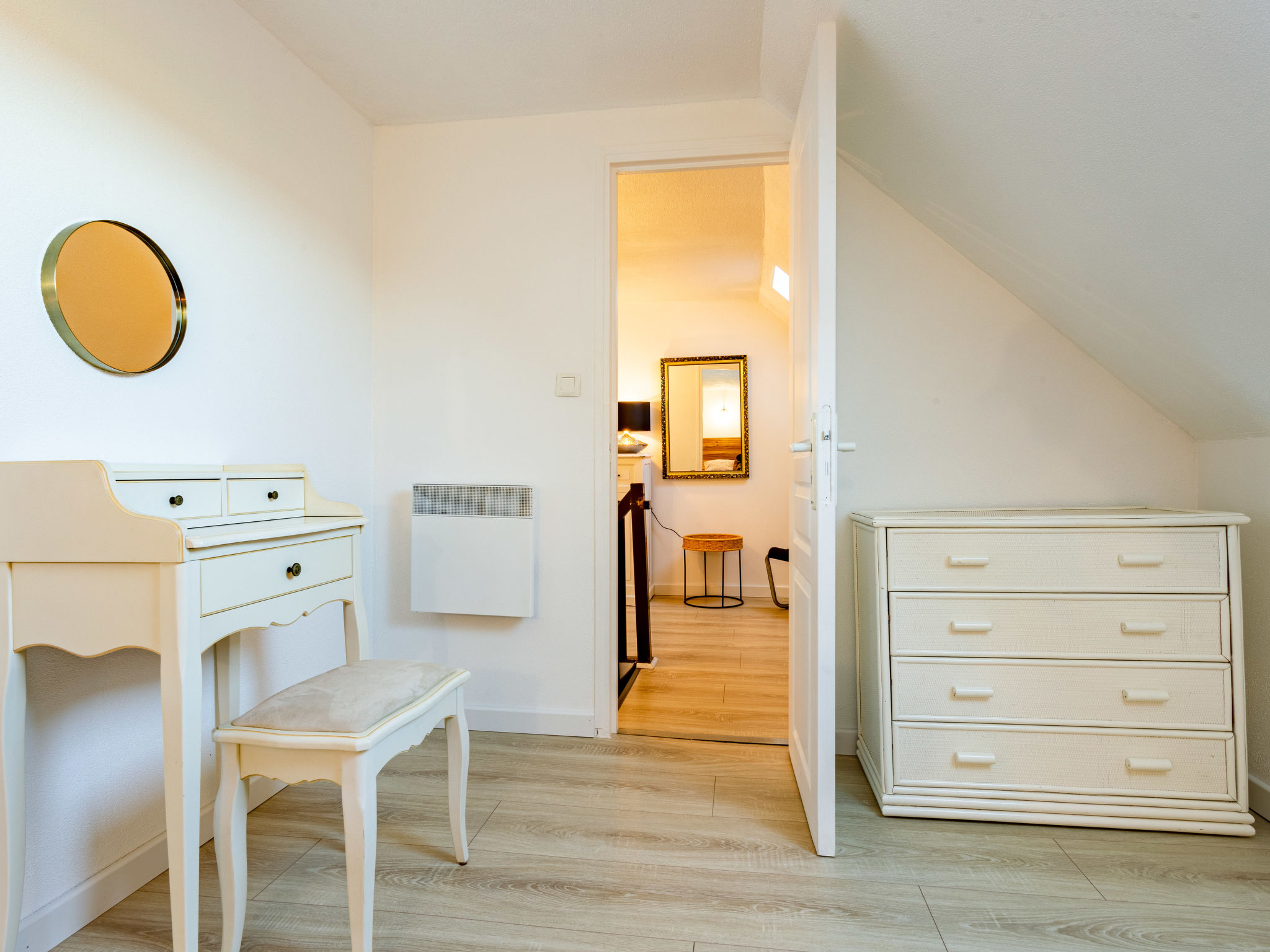 "La salicorne", 3-Zimmer-Reihenhaus 66 m2 auf 2 Stockwerken. Komfortabel und geschmackvoll eingerichtet: Wohnzimmer mit TV. Kochnische (Backofen, 4 Flammen, Toaster, Wasserkocher, Mikrowelle, elektrische Kaffeemaschine) mit E-Heizung. Dusche, sep. WC. Obergeschoss: 1 Zimmer mit 1 franz. Bett (1 x 140 cm, Länge 190 cm). 1 Zimmer mit 1 Bett (90 cm, Länge 190 cm), 1 franz. Bett (1 x 140 cm, Länge 190 cm). Parkettböden. Gartengrill, Liegestühle. Zur Verfügung: Bügeleisen. Parkplatz (2 Autos) beim Haus. Bitte beachten: 1 kleines Haustier/Hund erlaubt. Rauchmelder. Inserat einer Privatperson nach Artikel 155, IV, CGI.