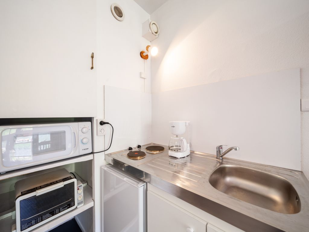 1-Zimmer-Studio 23 m2 im 4. Stock, Südlage. Einfach und zweckmässig eingerichtet: Wohn-/Schlafzimmer mit 1 Doppeldiwanbett (130 cm, Länge 190 cm), 1 x 2 Etagenbetten (80 cm, Länge 190 cm), TV (Flachbildschirm). Ausgang zum Balkon. Kleine Kochnische (2 Kochplatten, Mini-Backofen, Mikrowelle, elektrische Kaffeemaschine, Racletteofen, Fondue Set (Käse)). Bad/WC. E-Heizung. Parkettböden. Balkon 6 m2. Balkonmöbel. Schöne Sicht auf die Berge. Zur Verfügung: Bügeleisen, Haartrockner. Internet (Wireless LAN, extra). Bitte beachten: Nichtraucher-Unterkunft. Rauchmelder. Inserat einer Privatperson nach Artikel 155, IV, CGI.