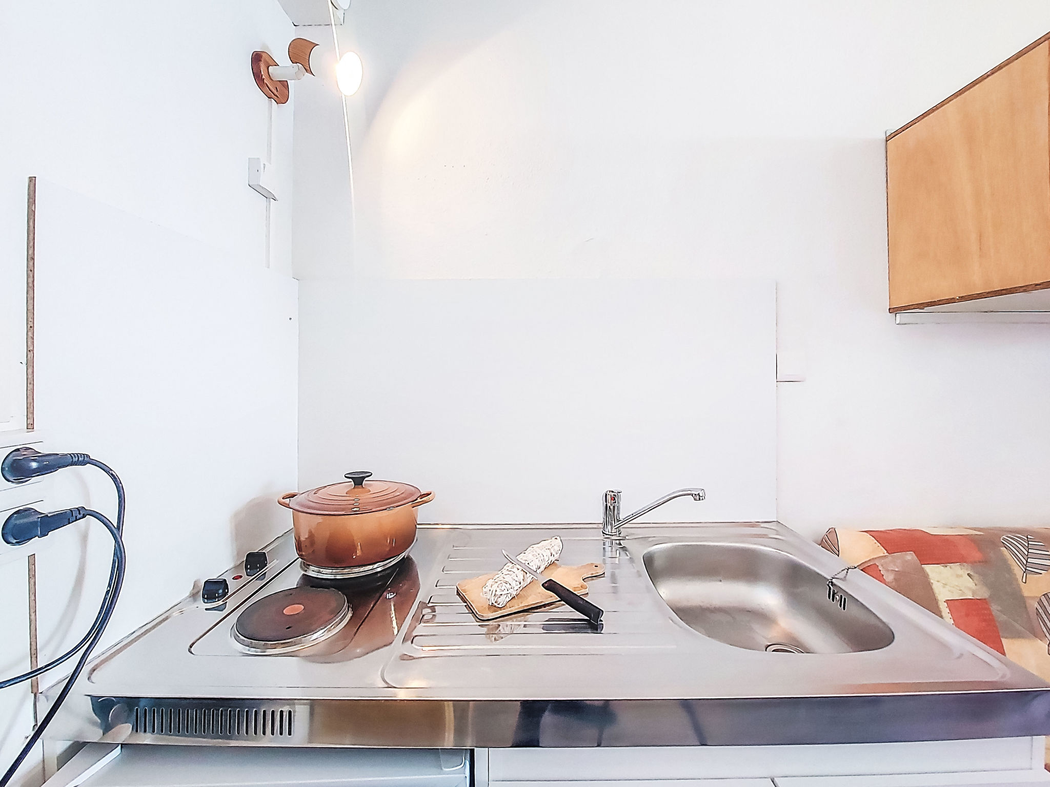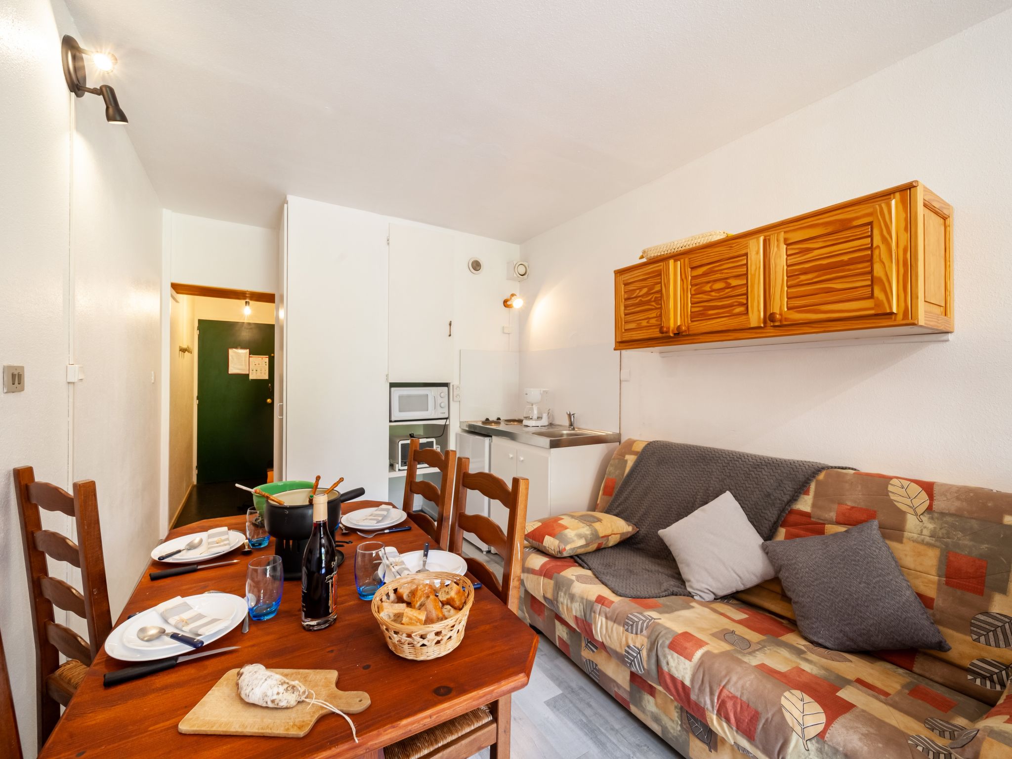 1-Zimmer-Studio 23 m2 im 4. Stock, Südlage. Einfach und zweckmässig eingerichtet: Wohn-/Schlafzimmer mit 1 Doppeldiwanbett (130 cm, Länge 190 cm), 1 x 2 Etagenbetten (80 cm, Länge 190 cm), TV (Flachbildschirm). Ausgang zum Balkon. Kleine Kochnische (2 Kochplatten, Mini-Backofen, Mikrowelle, elektrische Kaffeemaschine, Racletteofen, Fondue Set (Käse)). Bad/WC. E-Heizung. Parkettböden. Balkon 6 m2. Balkonmöbel. Schöne Sicht auf die Berge. Zur Verfügung: Bügeleisen, Haartrockner. Internet (Wireless LAN, extra). Bitte beachten: Nichtraucher-Unterkunft. Rauchmelder. Inserat einer Privatperson nach Artikel 155, IV, CGI.