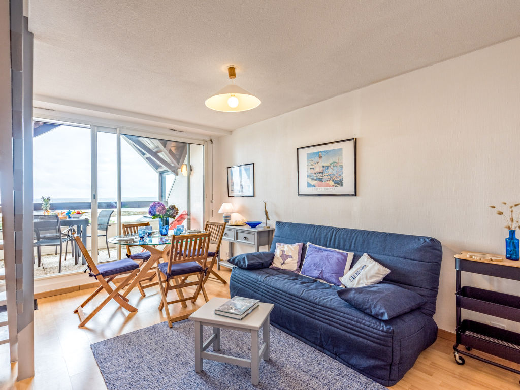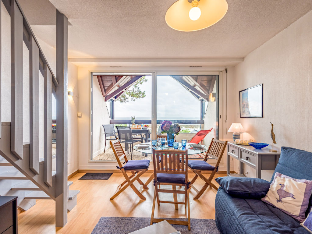 3-Zimmer-Maisonette-Wohnung 37 m2 im 2. Stock. Komfortabel und schön eingerichtet: Wohn-/Esszimmer mit TV (Flachbildschirm). Ausgang zum Balkon. Kochnische (4 Kochplatten, Backofen, Geschirrspüler, Toaster, Wasserkocher, elektrische Kaffeemaschine). Sep. WC. Obergeschoss: 1 Zimmer mit 1 franz. Bett (1 x 140 cm, Länge 190 cm). 1 Zimmer mit 1 x 2 Etagenbetten (80 cm, Länge 190 cm). Bad. E-Heizung. Balkon 8 m2, Südlage. Balkonmöbel, Liegestühle (2). Panoramasicht auf das Meer. Zur Verfügung: Babybett bis 2 Jahre. Internet (Wireless LAN, gratis). Garage Nr. 22 (1 Auto). Bitte beachten: Nichtraucher-Unterkunft. 1 kleines Haustier/Hund erlaubt. Rauchmelder. Inserat einer Privatperson nach Artikel 155, IV, CGI.