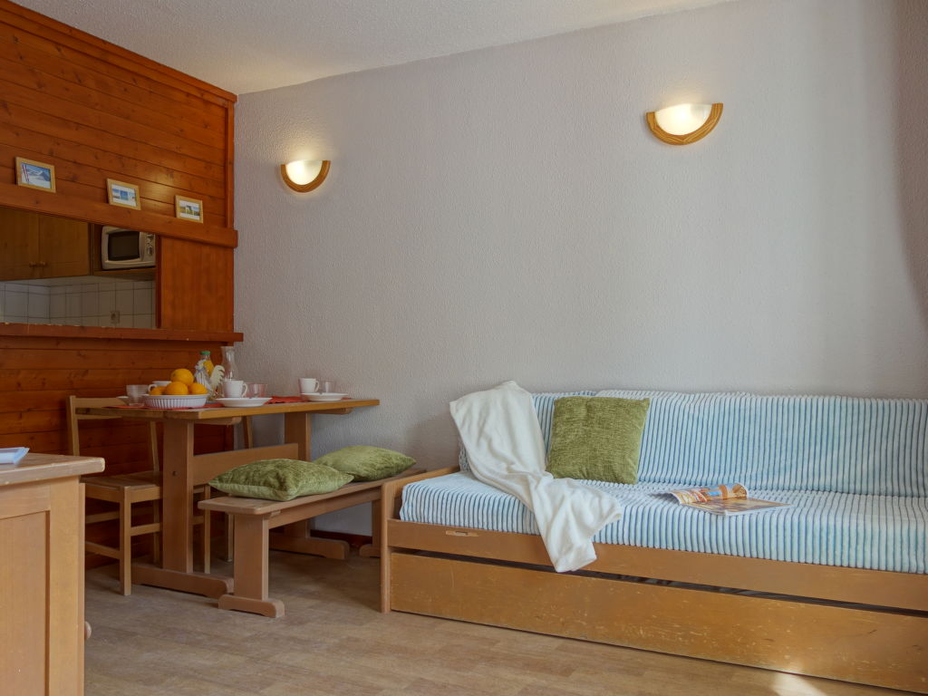 1-Zimmer-Studio 25 m2 im 1. Stock. Einfach und zweckmässig eingerichtet: Wohn-/Esszimmer mit 1 Diwanbett (140 cm, Länge 190 cm), TV (Flachbildschirm). Kabine 7 m2 mit 1 x 2 Etagenbetten (80 cm, Länge 190 cm). Ausgang zum Balkon. Kochnische (Geschirrspüler, 4 Glaskeramikherd Platten, Toaster, Wasserkocher, Mikrowelle, elektrische Kaffeemaschine). Bad, sep. WC. E-Heizung. 2 Balkone, Westlage. Sicht auf die Berge und die Landschaft. Zur Verfügung: Internet (Wireless LAN, extra). Bitte beachten: Nichtraucher-Unterkunft. Rauchmelder. Inserat einer Privatperson nach Artikel 155, IV, CGI.