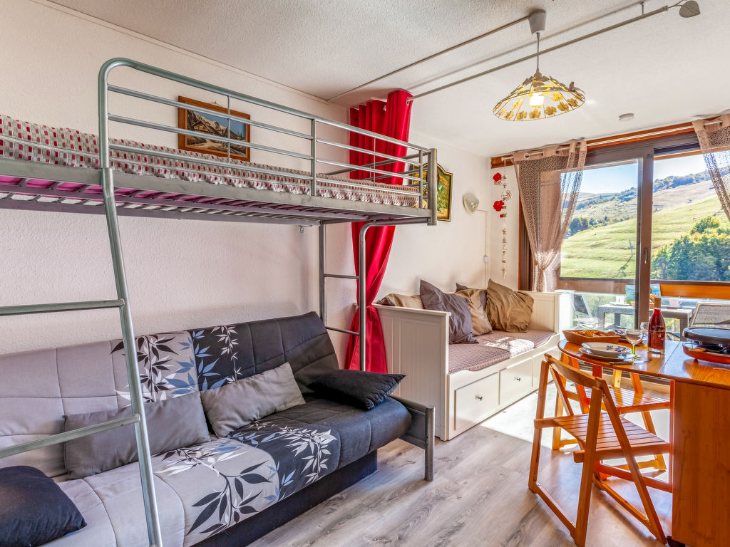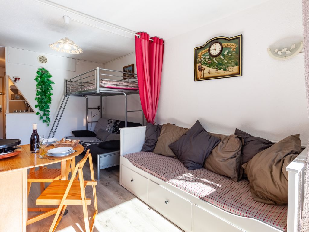 1-Zimmer-Studio 22 m2 im 18. Stock. Zweckmässig und schön eingerichtet: Wohn-/Schlafzimmer mit 1 Diwanbett (120 cm, Länge 190 cm), 1 Doppeldiwanbett (2 x 80 cm, Länge 200 cm), TV (Flachbildschirm), DVD und elektrischem Rollladen. Ausgang zum Balkon. Kleine Kochnische im Eingang (Backofen, 2 Glaskeramikherd Platten, Toaster, Wasserkocher, Mikrowelle, elektrische Kaffeemaschine). Bad/WC. E-Heizung. Parkettböden. Balkon 4 m2, Südlage. Balkonmöbel. Schöne Sicht auf die Skipiste. Zur Verfügung: Kinderhochstuhl, Babybett bis 2 Jahre. Bitte beachten: Nichtraucher-Unterkunft. Rauchmelder. Inserat einer Privatperson nach Artikel 155, IV, CGI.