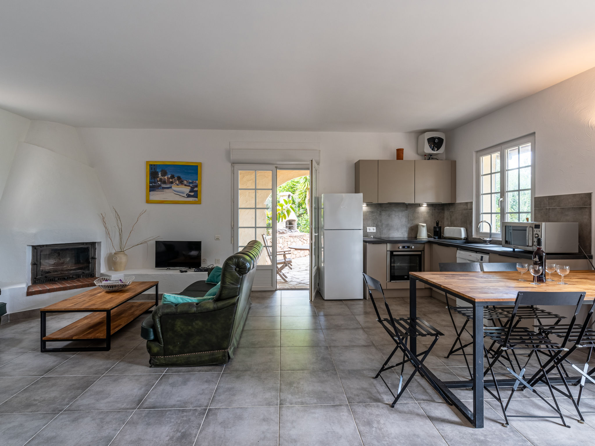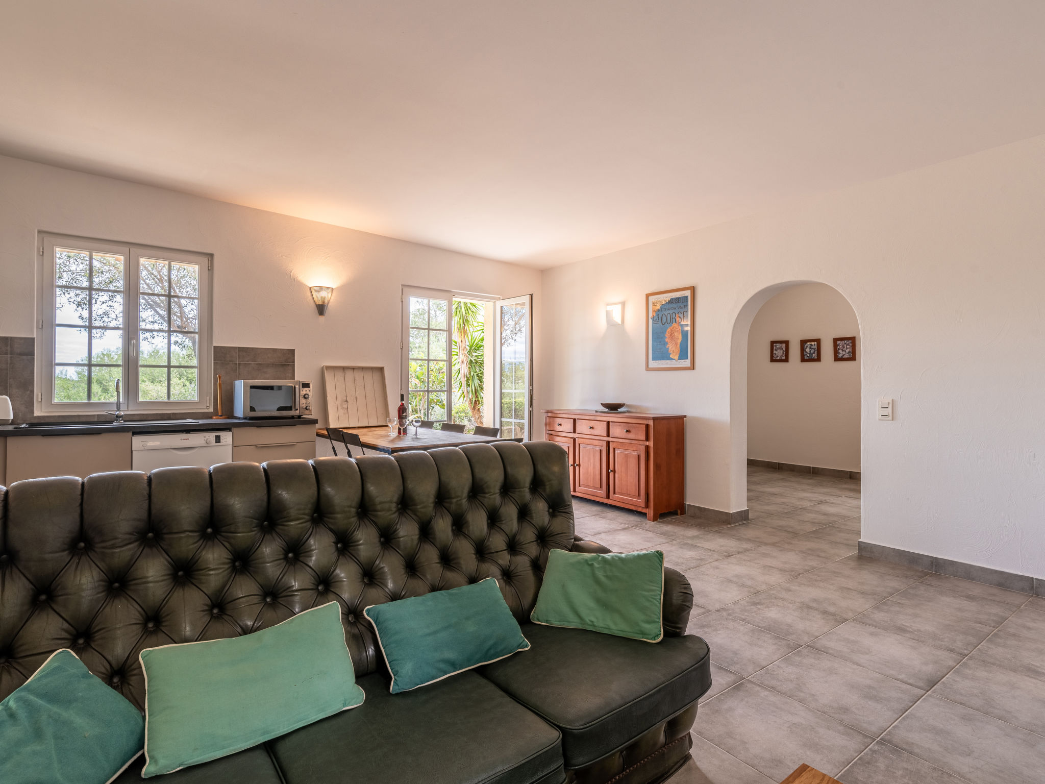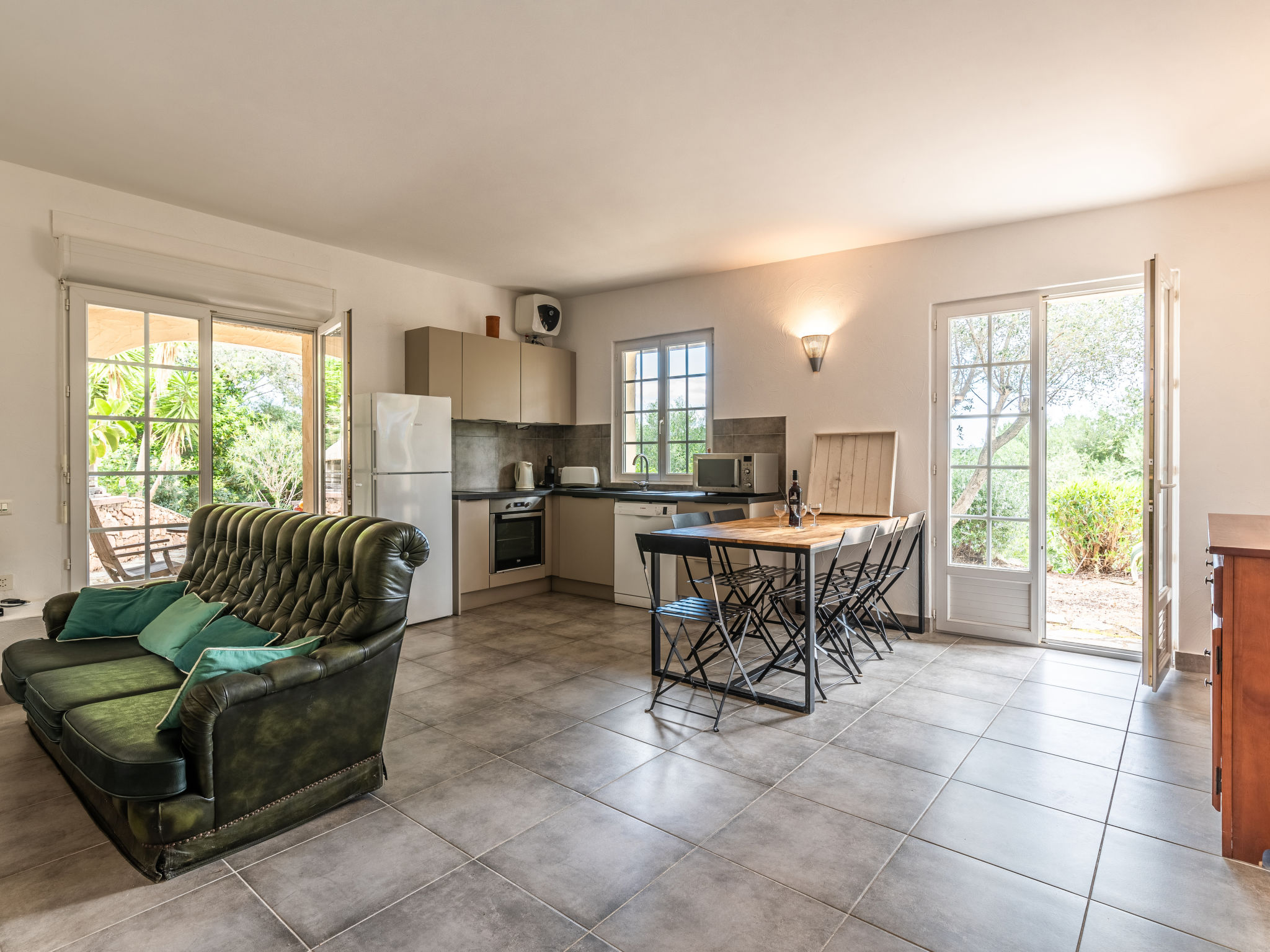 3-Zimmer-Villa 100 m2 auf 2 Stockwerken. Sehr schön eingerichtet: Eingang. Wohn-/Esszimmer mit offenem Kamin und TV (Flachbildschirm), Stereoanlage. Ausgang zur Terrasse. Offene Küche (3 Kochplatten, Backofen, Geschirrspüler, Toaster, Wasserkocher, Mikrowelle, Tiefkühler, elektrische Kaffeemaschine, Kapseln für die Kaffeemaschine (Senseo) extra). Ausgang zur Terrasse. Sep. WC. Obergeschoss: 1 Zimmer mit 1 franz. Bett (160 cm, Länge 200 cm), Dusche und Ventilator. 1 Zimmer mit 2 Betten (90 cm, Länge 190 cm), 1 Diwanbett (120 cm, Länge 190 cm), Dusche und Ventilator. Sep. WC. Terrasse Terrasse, grosser Garten. Gartengrill, Liegestühle (4). Schöne Sicht auf das Meer. Zur Verfügung: Waschmaschine, Kinderhochstuhl, Babybett, Haartrockner. Internet (Wireless LAN, extra). Parkplatz (3 Autos). Bitte beachten: geeignet für Familien. Rauchmelder. Inserat einer Privatperson nach Artikel 155, IV, CGI.