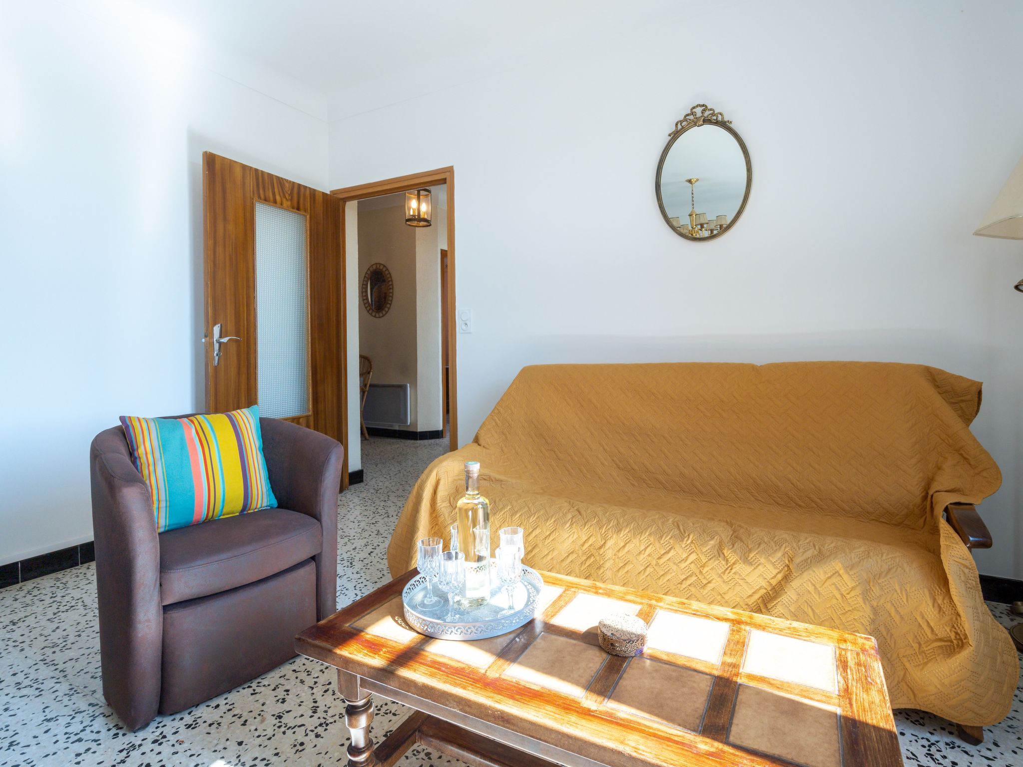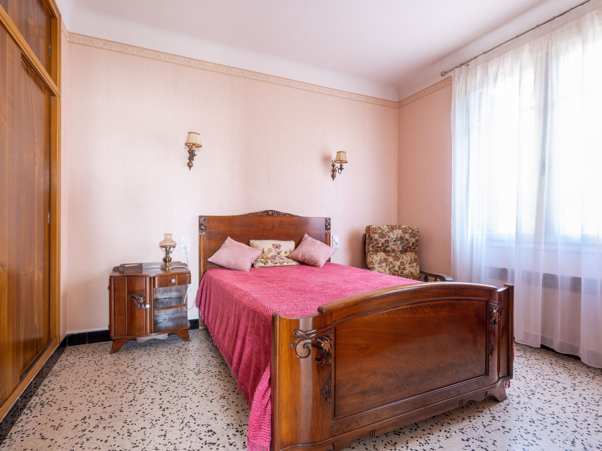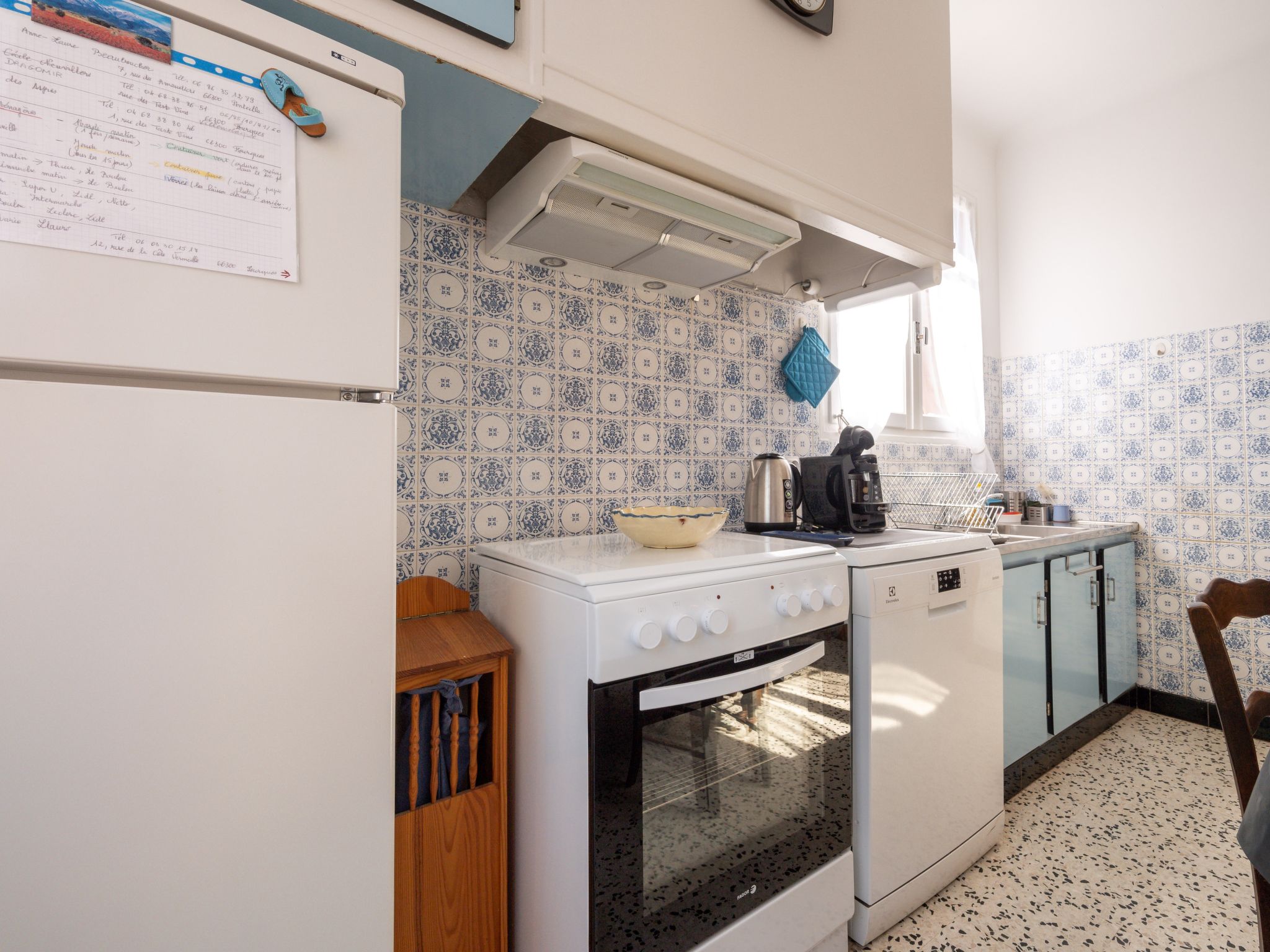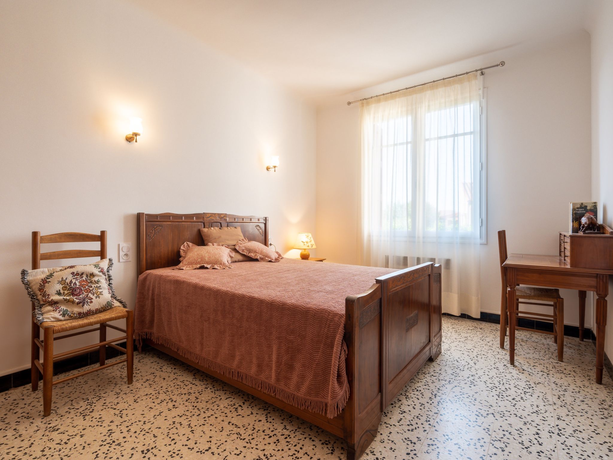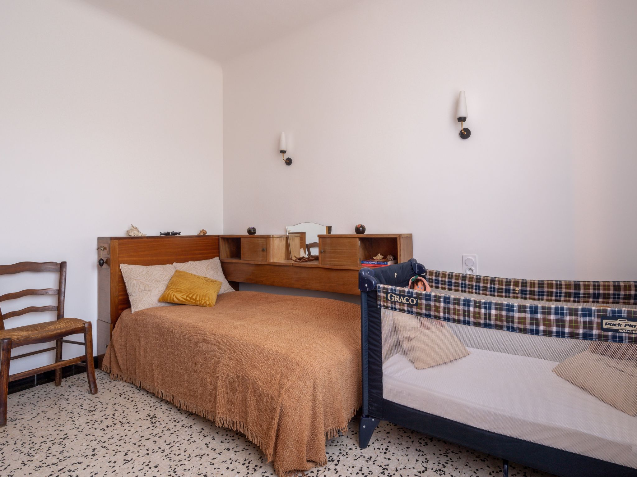 5-Zimmer-Haus 120 m2. Zweckmässig und rustikal eingerichtet: Wohn-/Esszimmer mit Esstisch und TV. 3 Zimmer, jedes Zimmer mit 1 franz. Bett (1 x 140 cm, Länge 190 cm). 1 Zimmer mit 1 Bett (90 cm, Länge 190 cm). Küche (4 Kochplatten, Backofen, Geschirrspüler, 3 Flammen, Wasserkocher, Mikrowelle, Tiefkühler, elektrische Kaffeemaschine). Dusche, sep. WC. Heizung. Terrasse 20 m2. Terrassenmöbel, Gartengrill (mobil). Zur Verfügung: Waschmaschine, Bügeleisen. Parkplatz (eingezäunt, 2 Autos). Bitte beachten: geeignet für Familien. Rauchmelder. Inserat einer Privatperson nach Artikel 155, IV, CGI.