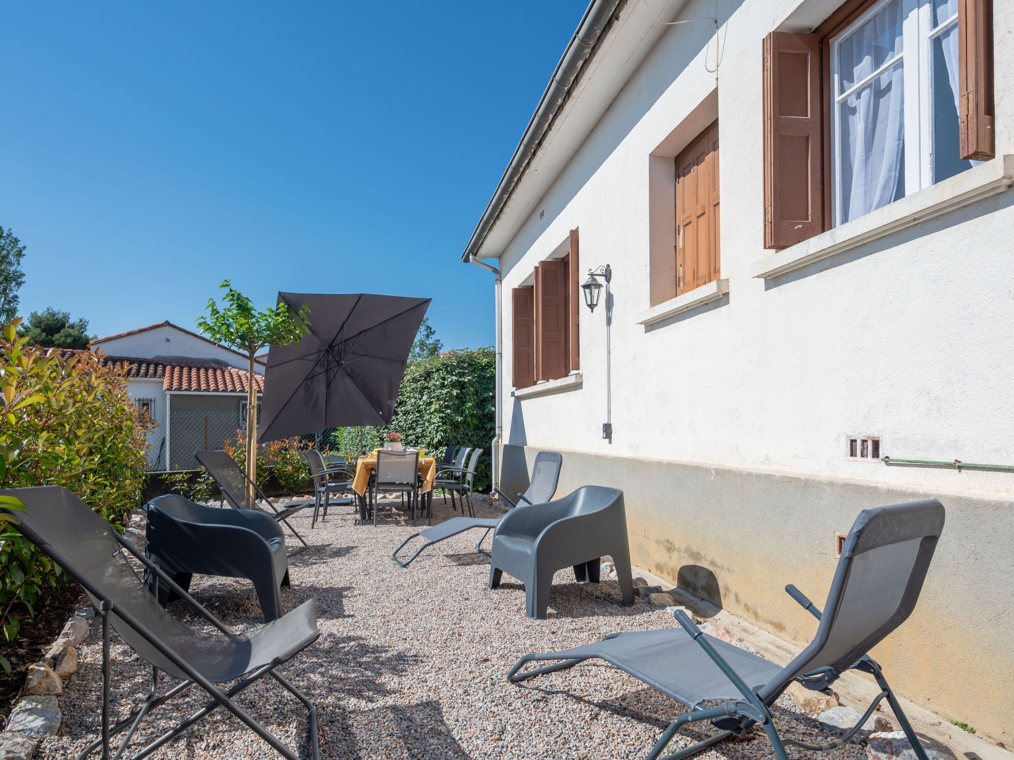 Einfamilienhaus "La vigneronne". 23 km vom Strand, in einer Sackgasse. Zur Mitbenutzung: naturbelassenes Grundstück (eingezäunt), Parkplatz (für 2 Autos). Sandstrand "Saint Cyprien" 23 km. Bitte beachten: Der Besitzer wohnt auf dem gleichen Grundstück.
