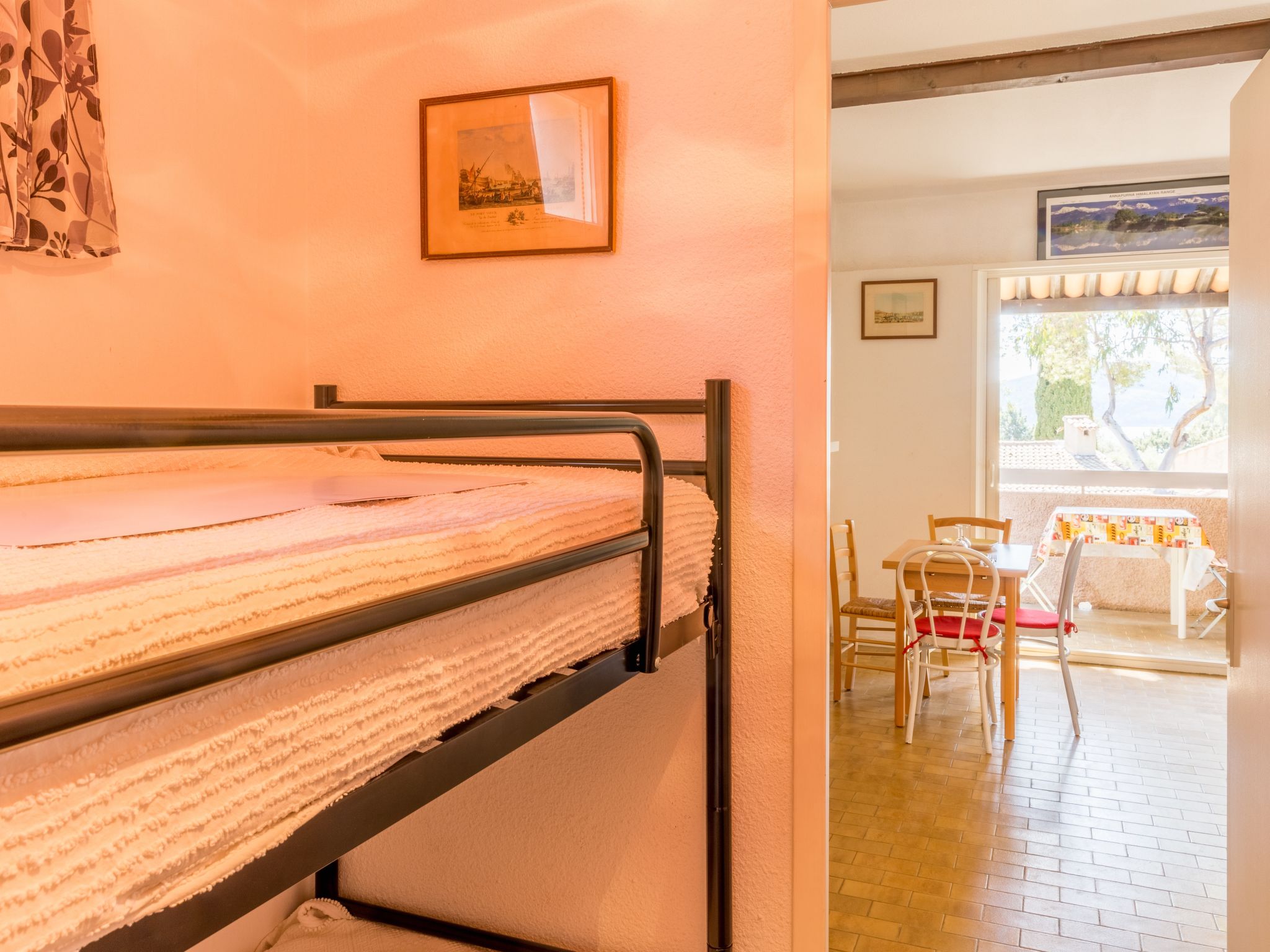 1-Zimmer-Studio 22 m2 im 1. Stock. Eingang mit 1 x 2 Etagenbetten (80 cm, Länge 190 cm). Wohn-/Esszimmer mit 1 Doppeldiwanbett (140 cm, Länge 200 cm), TV. Ausgang zur Terrasse. Kochnische (2 Glaskeramikherd Platten, Mikrowelle, elektrische Kaffeemaschine). Dusche/WC. E-Heizung. Terrasse 8 m2, überdacht, Südostlage. Terrassenmöbel. Eingeschränkte Sicht auf das Meer. Zur Verfügung: Waschmaschine. Internet (Wireless LAN, extra). Parkplatz Nr. 106. Bitte beachten: Rauchmelder. Inserat einer Privatperson nach Artikel 155, IV, CGI. 83112000449FI