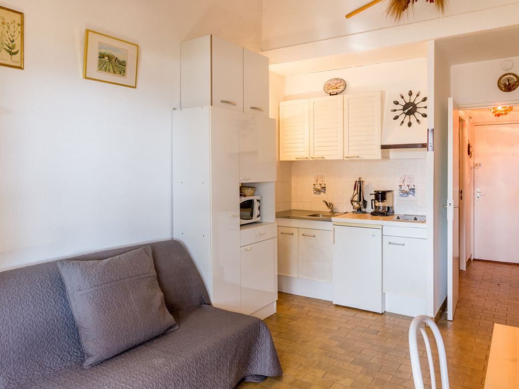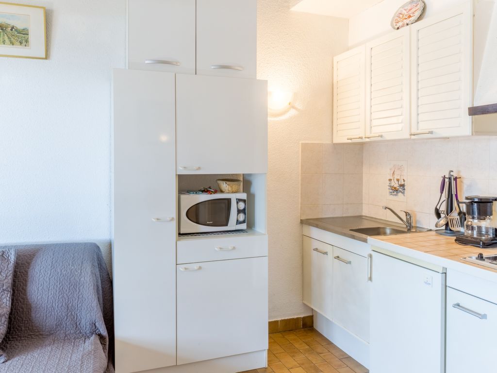 1-Zimmer-Studio 22 m2 im 1. Stock. Eingang mit 1 x 2 Etagenbetten (80 cm, Länge 190 cm). Wohn-/Esszimmer mit 1 Doppeldiwanbett (140 cm, Länge 200 cm), TV. Ausgang zur Terrasse. Kochnische (2 Glaskeramikherd Platten, Mikrowelle, elektrische Kaffeemaschine). Dusche/WC. E-Heizung. Terrasse 8 m2, überdacht, Südostlage. Terrassenmöbel. Eingeschränkte Sicht auf das Meer. Zur Verfügung: Waschmaschine. Internet (Wireless LAN, extra). Parkplatz Nr. 106. Bitte beachten: Rauchmelder. Inserat einer Privatperson nach Artikel 155, IV, CGI. 83112000449FI