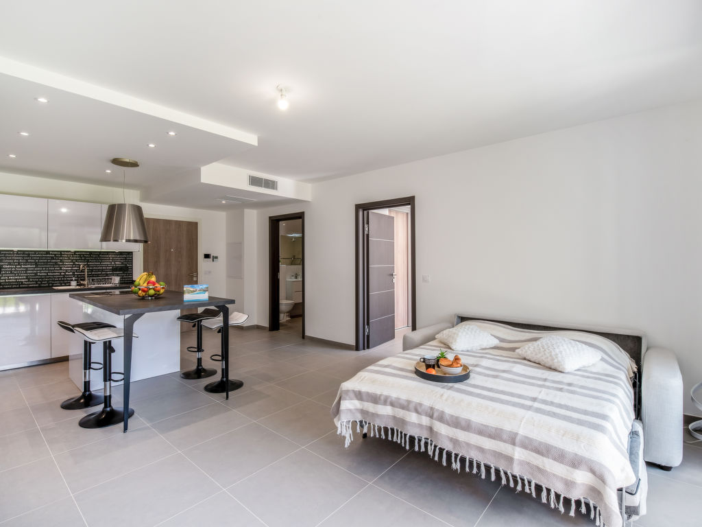 2-Zimmer-Wohnung 55 m2, im Erdgeschoss. Sehr schön und modern eingerichtet: Wohn-/Esszimmer mit 1 Doppeldiwanbett (1 x 140 cm, Länge 200 cm), TV (Flachbildschirm). Ausgang zur Terrasse. 1 Zimmer mit 2 Betten (90 cm, Länge 190 cm). Offene Küche (Backofen, Geschirrspüler, 3 Induktionskochplatten, Toaster, Wasserkocher, Mikrowelle, Tiefkühler, elektrische Kaffeemaschine). Ausgang zur Terrasse. Dusche/WC. Klimaanlage. Terrasse 20 m2, Garten 50 m2. Terrassenmöbel. Zur Verfügung: Waschmaschine. Internet (Wireless LAN, extra). Parkplatz Nr. 701 beim Haus. Bitte beachten: geeignet für Familien. Nichtraucher-Unterkunft. Rauchmelder. Inserat einer Privatperson nach Artikel 155, IV, CGI.