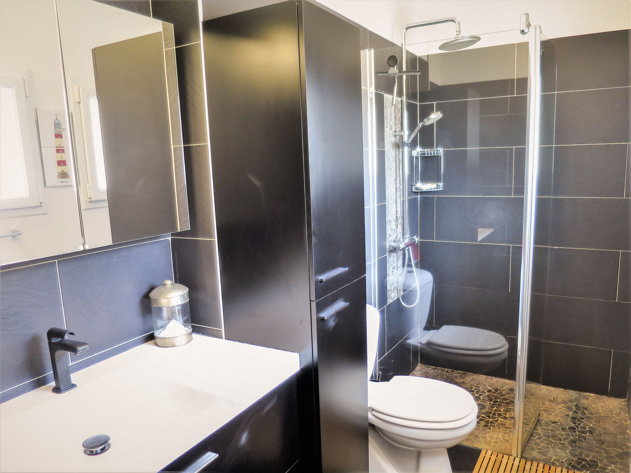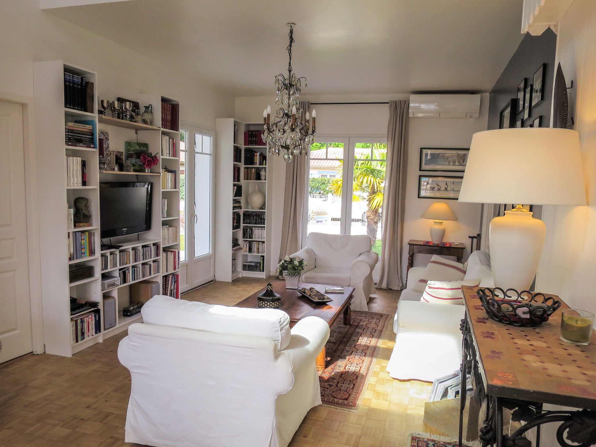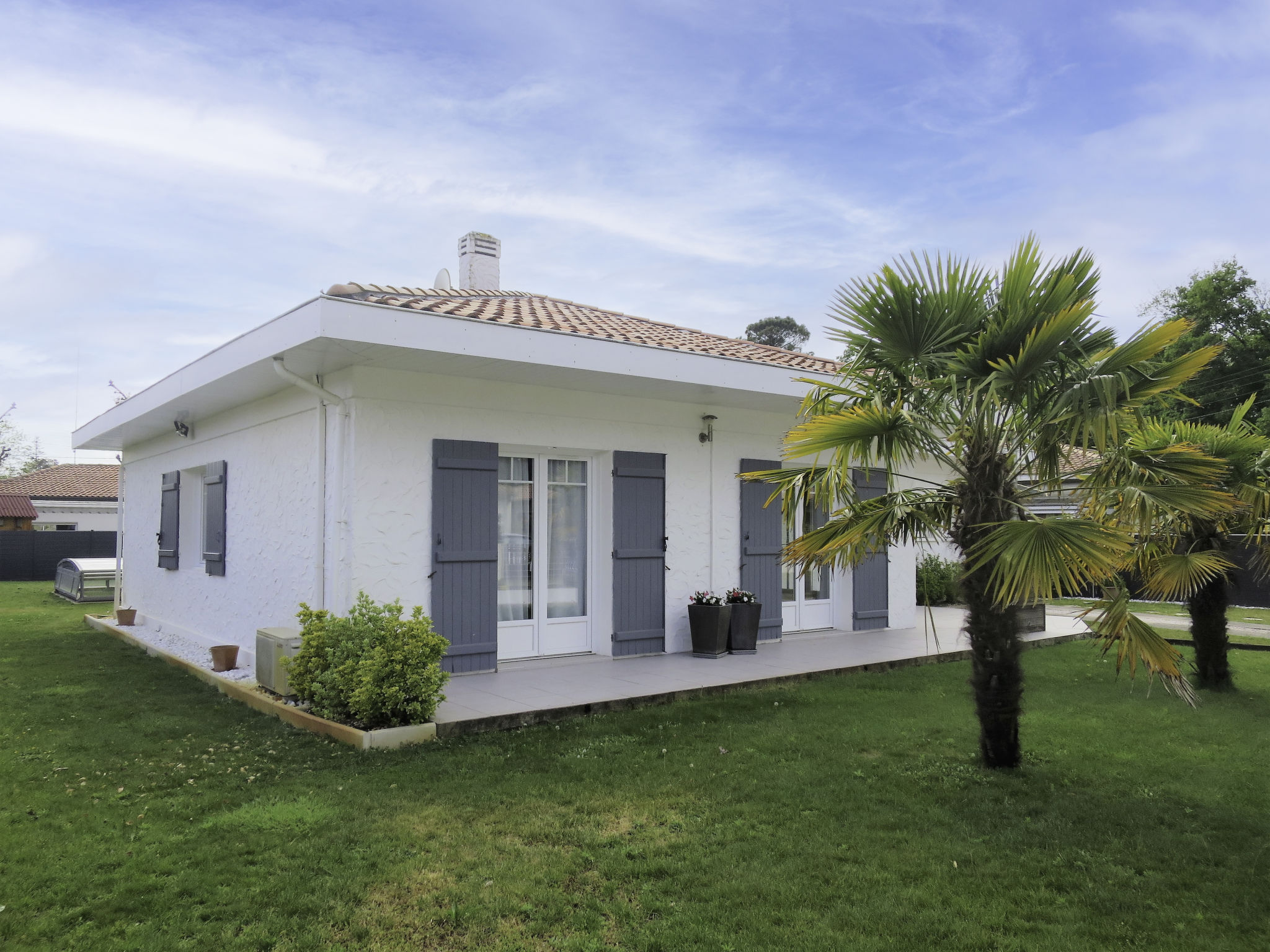 " Villa Camélia", 4-Zimmer-Haus 110 m2. Schön und modern eingerichtet: Wohn-/Esszimmer mit Esstisch und TV (Flachbildschirm), CD. Ausgang zur Terrasse. 1 Zimmer mit 1 franz. Bett (140 cm), Dusche/WC. 1 Zimmer mit 1 franz. Bett (140 cm). 1 Zimmer mit 1 franz. Bett (160 cm). Offene Küche (Backofen, Geschirrspüler, 4 Induktionskochplatten, Toaster, Wasserkocher, Mikrowelle, Tiefkühler, elektrische Kaffeemaschine) mit Bar. Ausgang zur Terrasse. Sep. WC. E-Heizung. Terrasse 30 m2 teilweise überdacht. Terrassenmöbel, Gartengrill (mobil), Liegestühle (6), Abstellkammer. Zur Verfügung: Waschmaschine, Wäschetrockner, Bügeleisen, Kinderhochstuhl. Internet (Wireless LAN, gratis). Bitte beachten: Nichtraucher-Haus. Rauchmelder. Inserat einer Privatperson nach Artikel 155, IV, CGI.