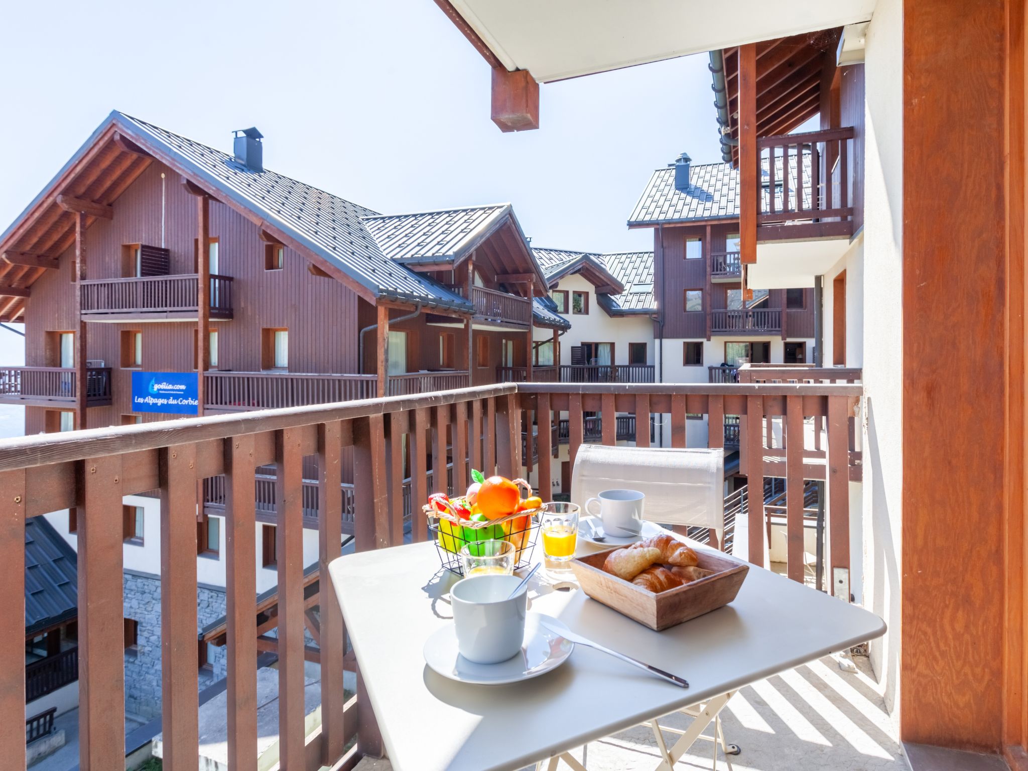 Schöne Residenz "LES ALPAGES DU CORBIER", auf 8 Stockwerken, Baujahr 2007. Unterhalb von la station du Corbier, 700 m vom Zentrum, 50 m vom Skigebiet. Zur Mitbenutzung: Schwimmbad eckig beheizt (5 x 10 m, 150 cm tief, saisonale Verfügbarkeit: 18.Dez.-16.Apr. und 04.Jul.-27.Aug. Öffnungszeiten Schwimmbad: 10:30-19:00). Dusche/WC im Poolbereich. In der Anlage: Restaurant, Bar, Frühstücksraum, Sauna, Fitnessraum, Fahrstuhl, Skiraum, Waschmaschine, Wäschetrockner (zur Mitbenutzung, extra). 50 m lange steile, schmale Zufahrt. Im Winter bitte Schneeketten mitbringen. Öffentliche Parkplätze 150 m. Einkaufsgeschäft 550 m, Lebensmittelgeschäft 100 m, Restaurant, Bar 600 m, Bushaltestelle "St Jean de Maurienne" 700 m. Skilift, Sessellift, Skisportanlagen, Skipisten 100 m, Skibushaltestelle 50 m, Skischule 600 m, Ski-Kindergarten 300 m, Schlittelbahn 600 m. Bitte beachten: Gratis Skibus. Bei guter Schneelage Zufahrt mit den Skiern bis zum Haus.