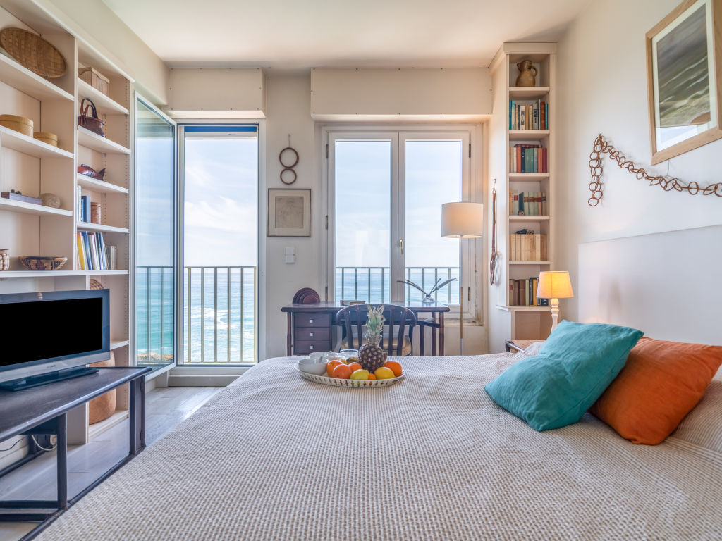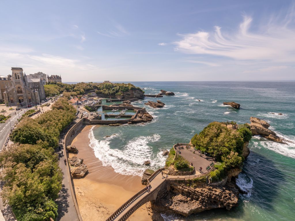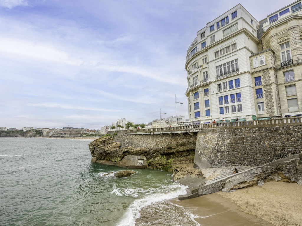 Historische Residenz "Bellevue Plage", auf 7 Stockwerken. Im Ortszentrum von Biarritz, zentrale, belebte Lage, 50 m vom Meer, 50 m vom Strand. In der Anlage: Fahrstuhl. Einkaufsgeschäft 100 m, Lebensmittelgeschäft 200 m, Supermarkt 5 km, Restaurant 100 m, Bäckerei 50 m, Bahnstation "Biarritz TGV" 4.1 km, Sandstrand "La Grande Plage" 100 m, Hallenbad 50 m. Golfplatz 4 km, Surfschule 100 m. Nahe gelegene Sehenswürdigkeiten: Casino 50 m, Port des Pêcheurs 350 m, Marché des Halles 400 m, Aquarium 700 m, Bayonne 7 km, Saint-Jean-de-Luz 15 km. Wandergebiete: Chemin du littoral 50 m, La Rhune 26 km.