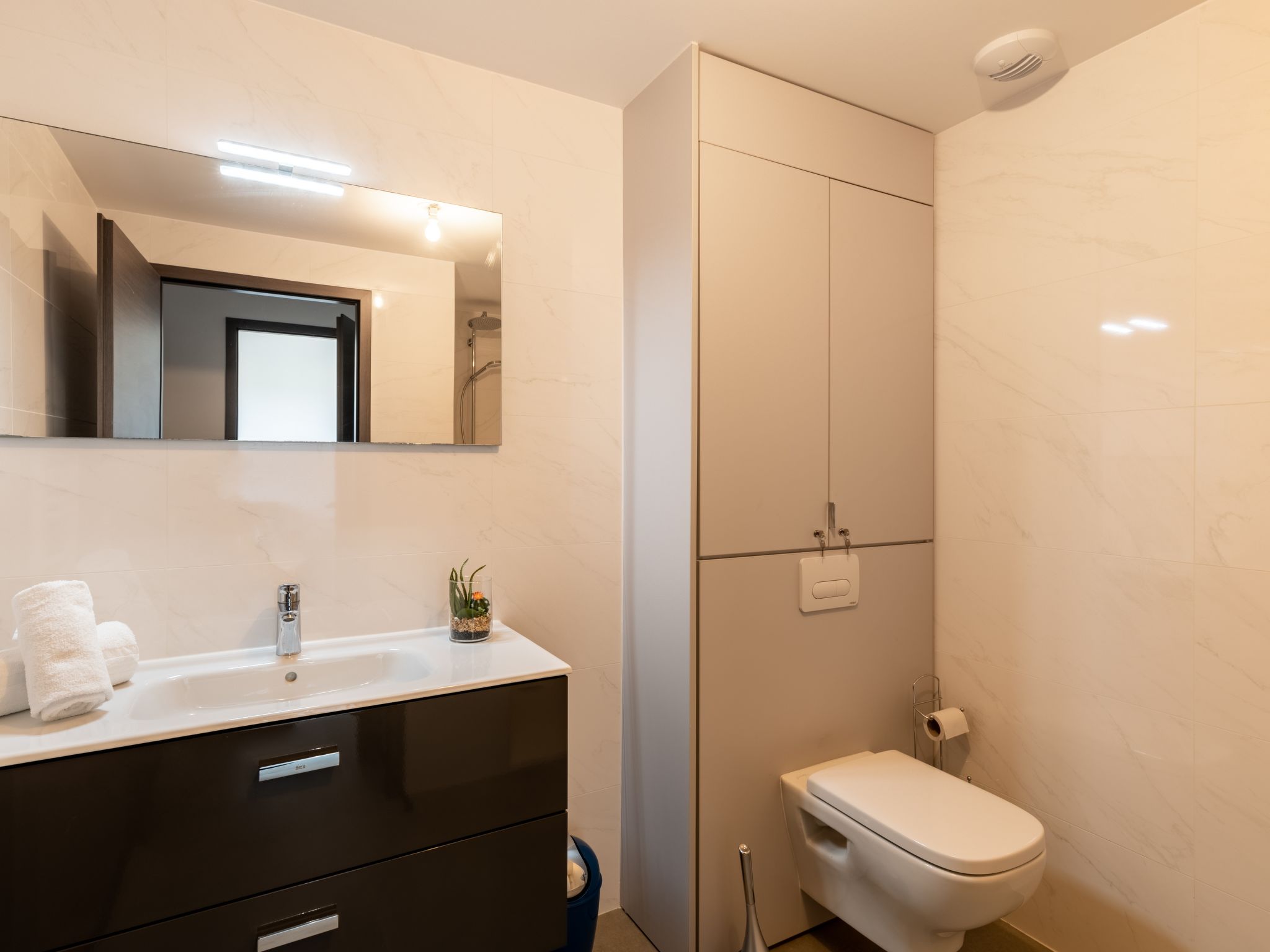 2-Zimmer-Wohnung 51 m2 im 2. Stock. Sehr schön und modern eingerichtet: Wohn-/Esszimmer mit 1 Doppeldiwanbett (140 cm, Länge 190 cm), TV (Flachbildschirm). Ausgang zur Terrasse. 1 Zimmer mit 1 franz. Bett (160 cm, Länge 200 cm). Offene Küche (4 Kochplatten, Backofen, Geschirrspüler, Toaster, Wasserkocher, Mikrowelle, Tiefkühler, elektrische Kaffeemaschine). Dusche/WC. Klimaanlage. Terrasse 9 m2. Terrassenmöbel. Zur Verfügung: Waschmaschine. Internet (Wireless LAN, gratis). Bitte beachten: geeignet für Familien. Nichtraucher-Unterkunft. Rauchmelder. Inserat einer Privatperson nach Artikel 155, IV, CGI.
